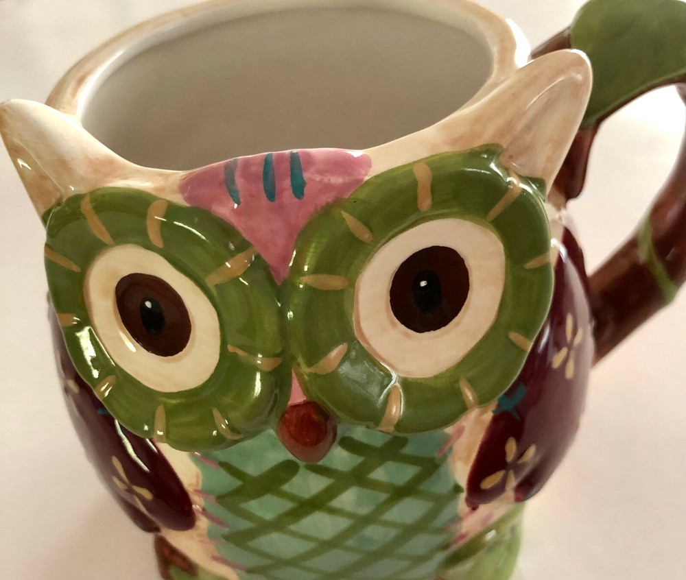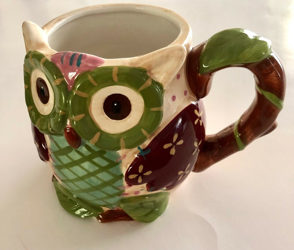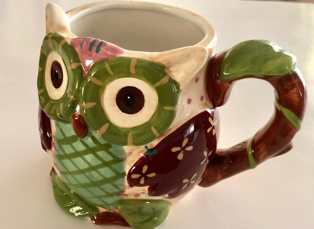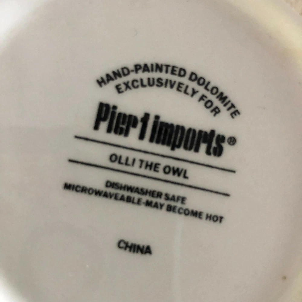 Pier 1 Imports Olli The Owl Large 3D Hand Painted 16 Oz Coffee Tea Mug. Good pre-owned condition. There are a few small chips on bottom of cup as shown in above picture. Smoke and pet free home. We are happy to ship internationally, first class international to save YOU money!