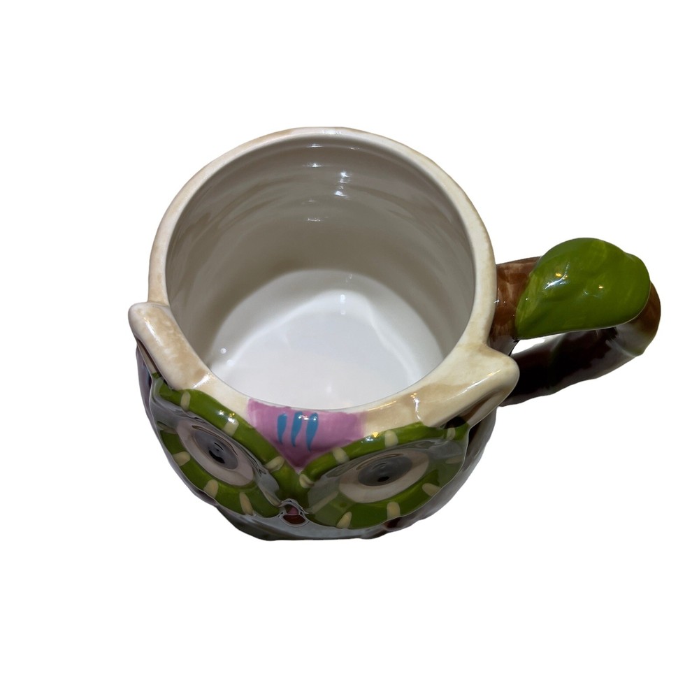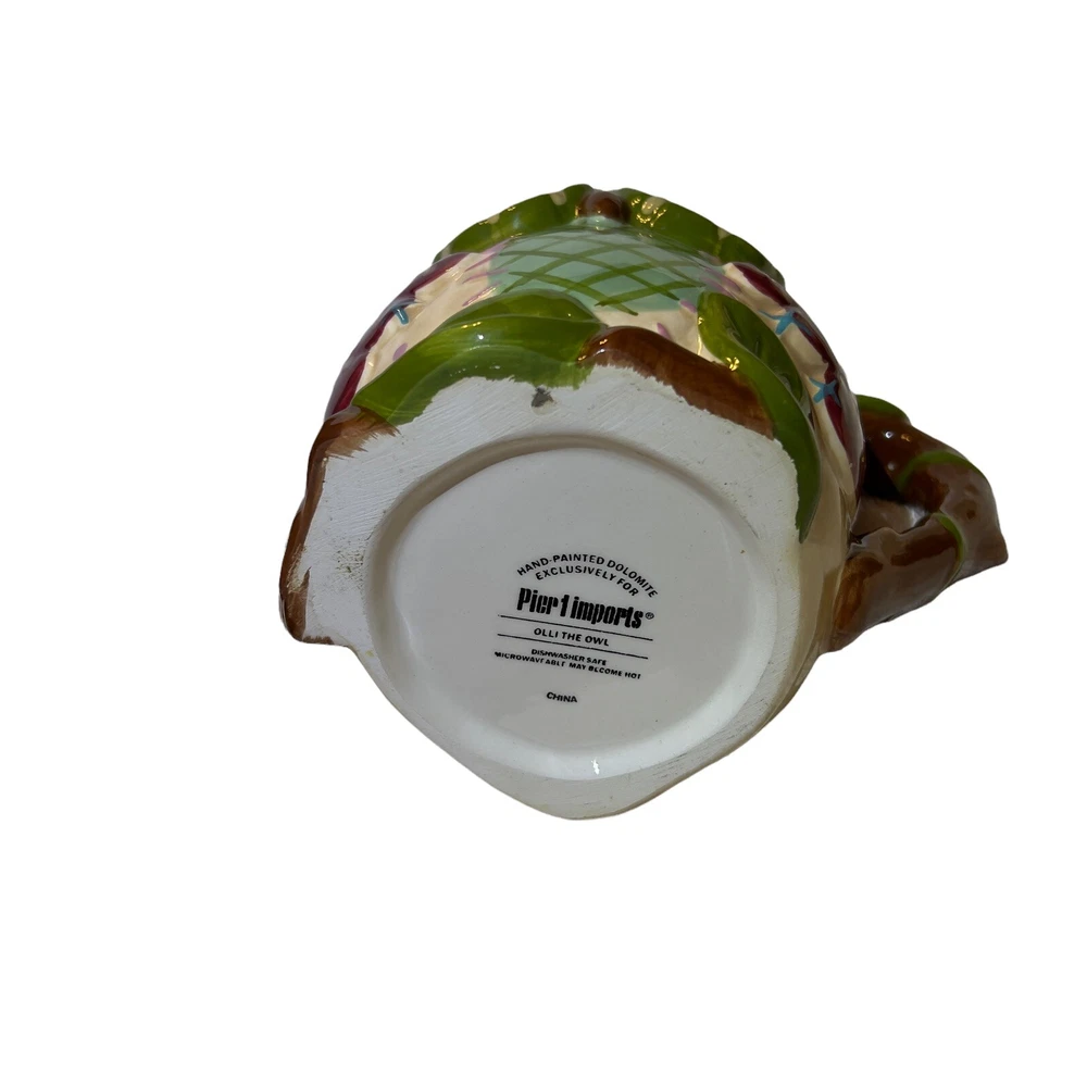 Pier 1 Imports “Olli The Owl” Large 3D Hand Painted 20 oz Coffee Mug Cup Decor.