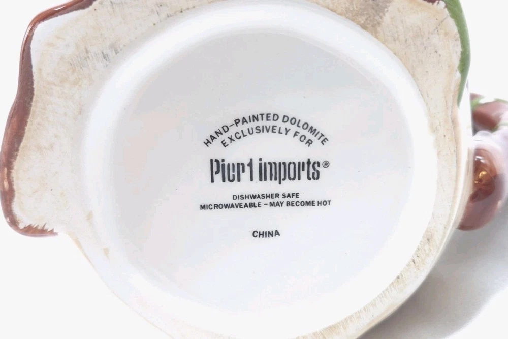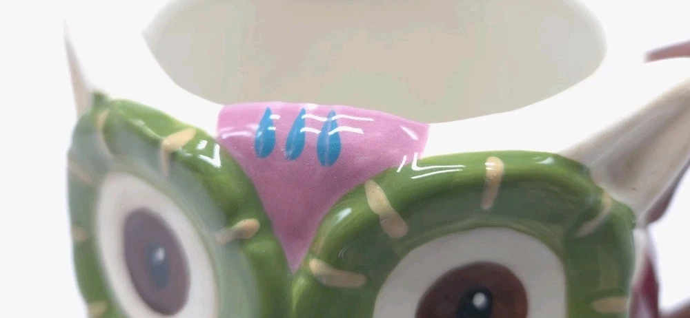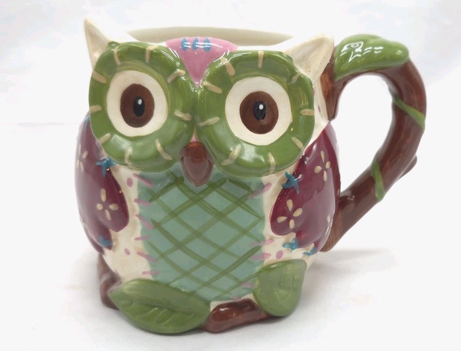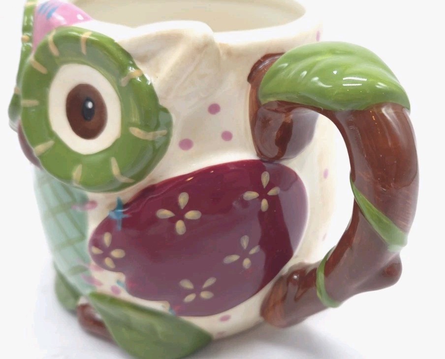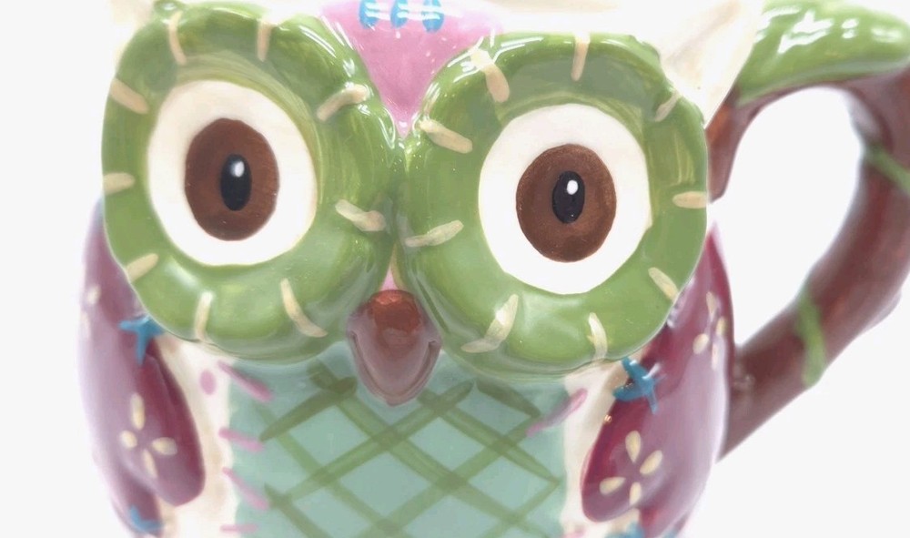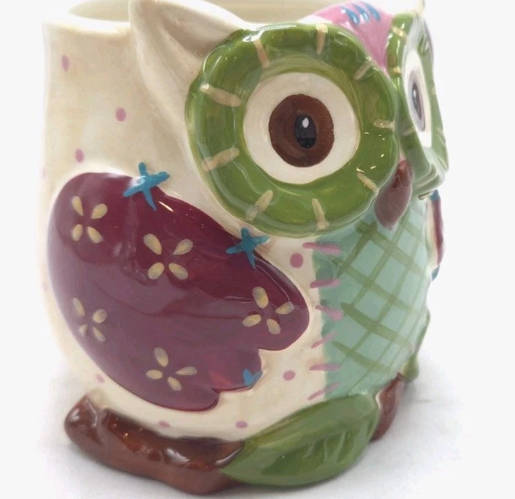 The Pier 1 Imports Olli, the Owl 3D Coffee Mug, is a large 25 oz ceramic mug hand-painted with a colorful animal print design featuring an owl. This contemporary figural mug is suitable for both hot and cold beverages and is machine washable for easy care. With its unique design and character, this mug is perfect for all occasions and is a charming addition to any kitchen or home decor. Made in China in the 2010s by Pier 1 Imports, this original coffee mug is a collectible item that appeals to both teens and unisex adults who appreciate animal-themed dinnerware. It is preowned, in very good condition. Shipped without USPS mail. 30-day money back guarantee. Please take a look at my other items in my eBay store.