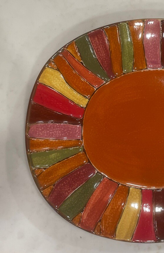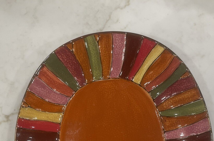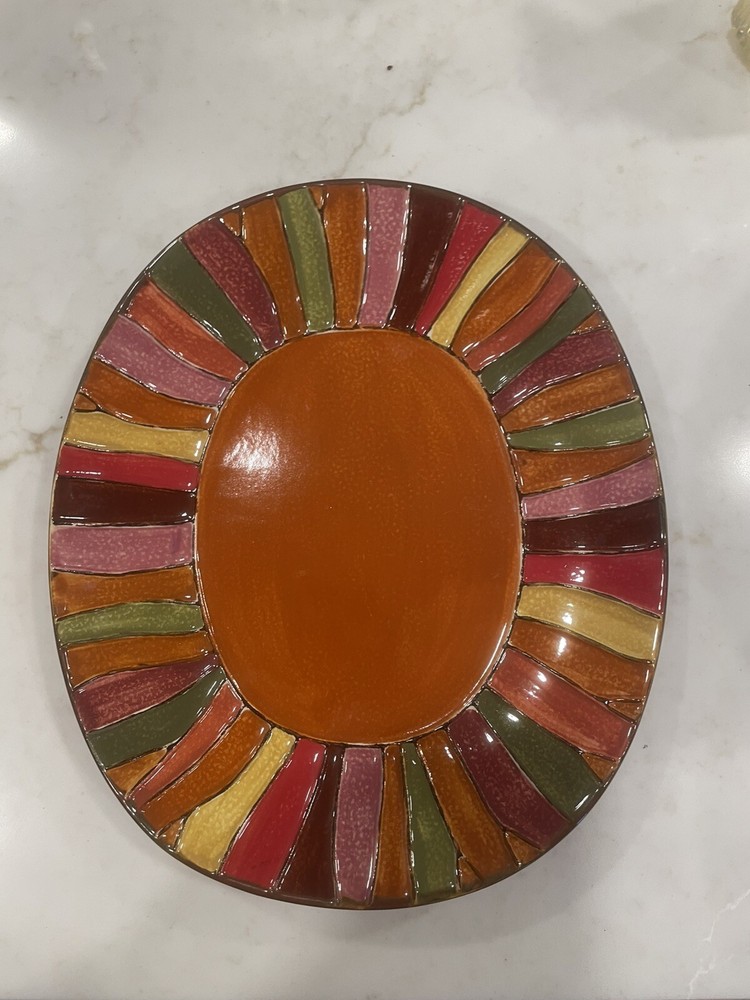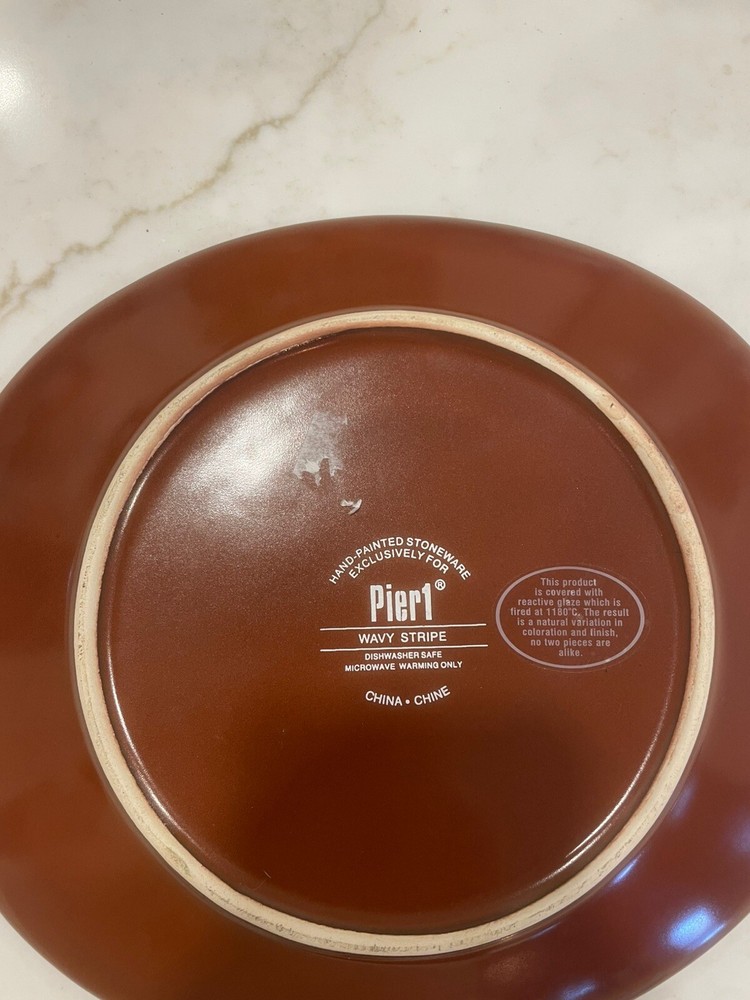 Pier 1 Imports Orange Fall Wavy Stripe Oval Dinner Plate 10" x 8" Stoneware New. Condition is New. Shipped with USPS Ground Advantage.