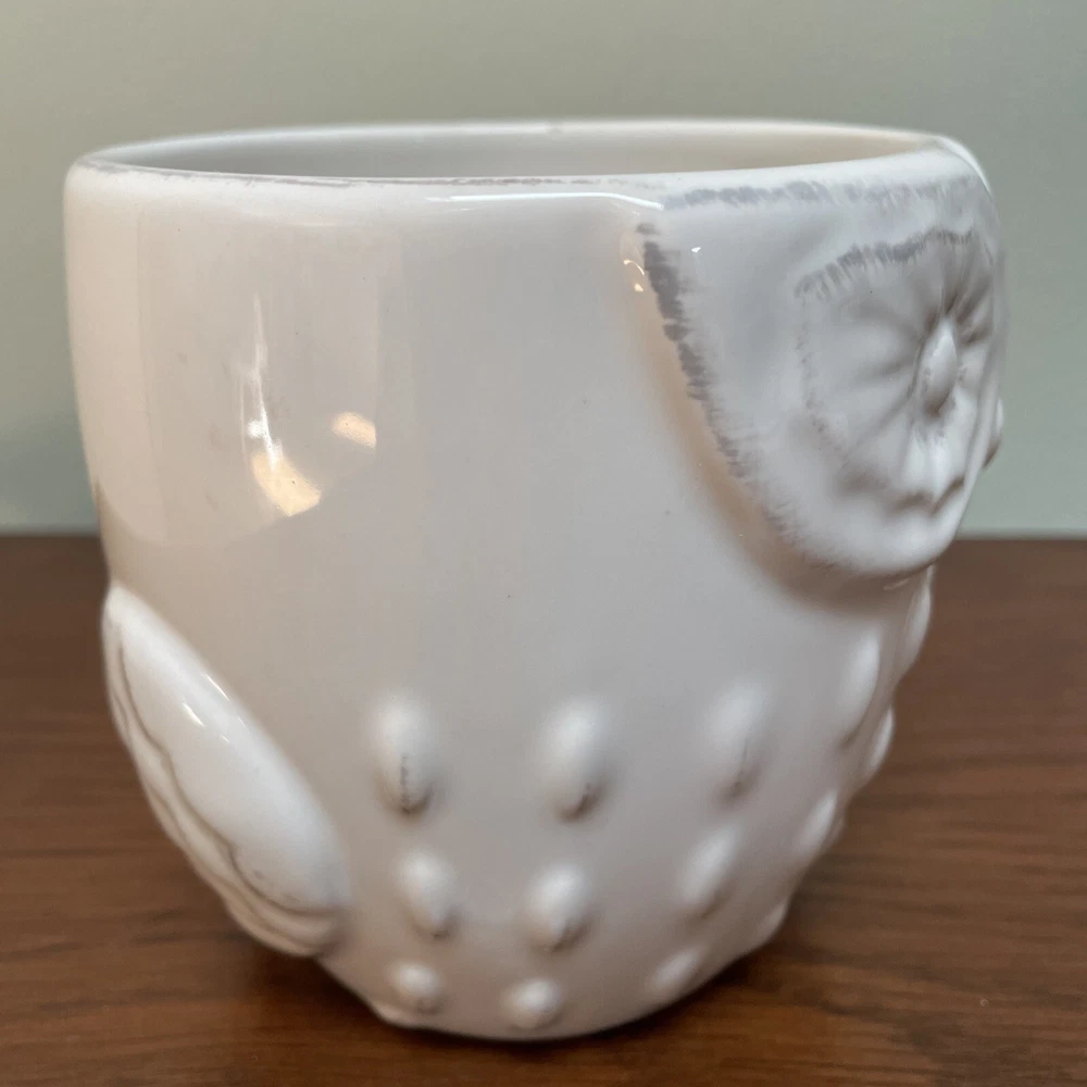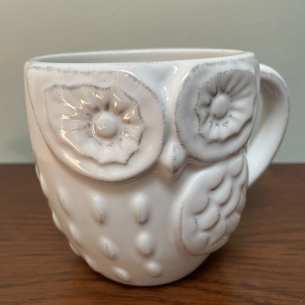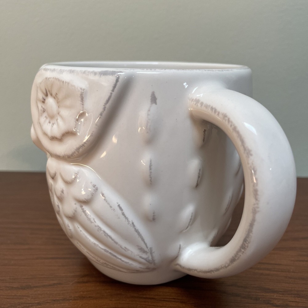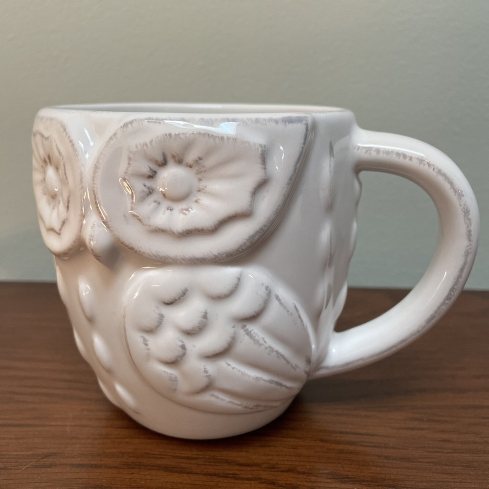 Pier 1 Imports Owl Ceramic White Embossed Floral Design Coffee Tea Mug. Great looking owl mug. Excellent condition. My items do not come from a pet free home but are clean and in described condition. I am human and might miss some thing though I try to be very thorough. I will accept returns only if there is an error on my part. I do charge a small handling fee of .50 per item to cover packing material. This is only on items I feel need wrapping. If item is larger or will require more care when packing, that fee may go up. Please contact me with questions or for more pictures before bidding/purchase. Also check out my other auctions as I generally list a lot at one time and will combine shipping! Box D