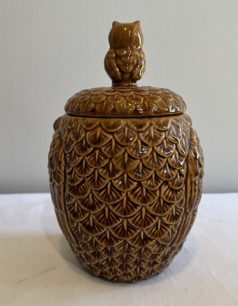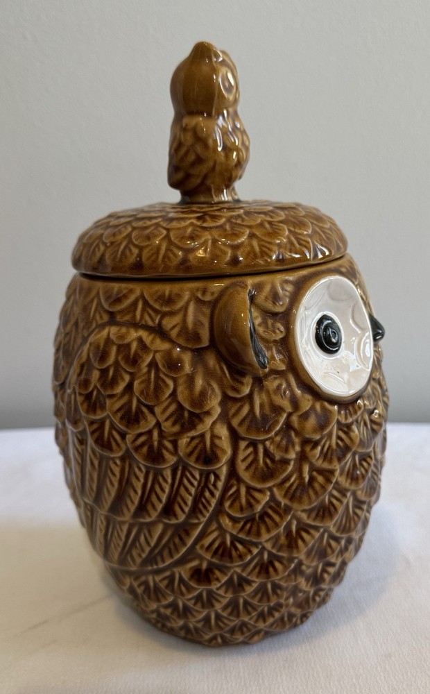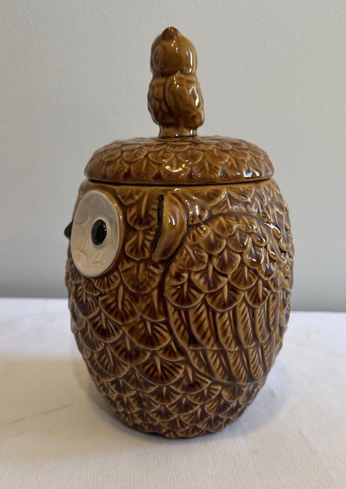 Pier 1 Imports Owl Canister Cookie Jar 10.5” Tall Brown Wide Eyed Stoneware. Excellent condition. Item will be fragile packed and shipped within 3 business days of payment. Thank you for looking!