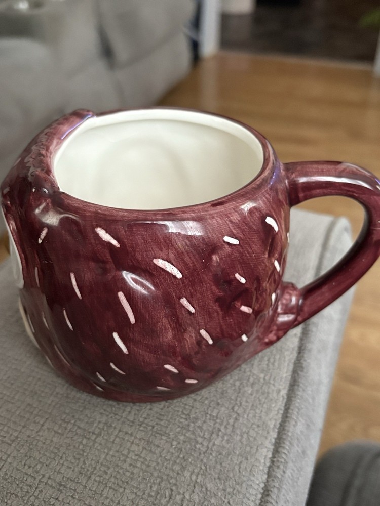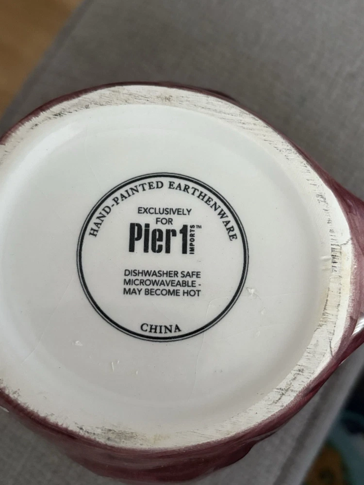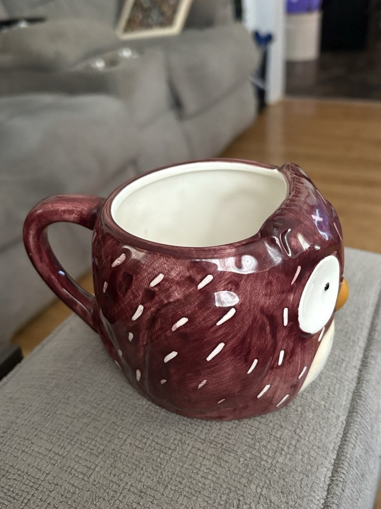 The Pier 1 Imports Owl Mug features a charming 3D design, making it a unique addition to any kitchen or dining set. This round earthenware mug in brown color is perfect for both hot and cold beverages, and is microwave and dishwasher safe for easy cleaning. Hand painted with detailed features, this coffee mug from Pier 1 Imports stands at 4 inches tall and 4 inches wide, making it a versatile and stylish choice for all occasions.