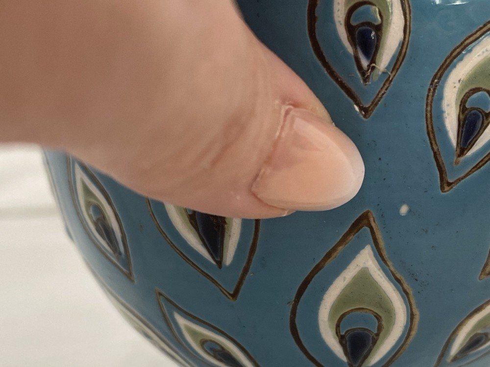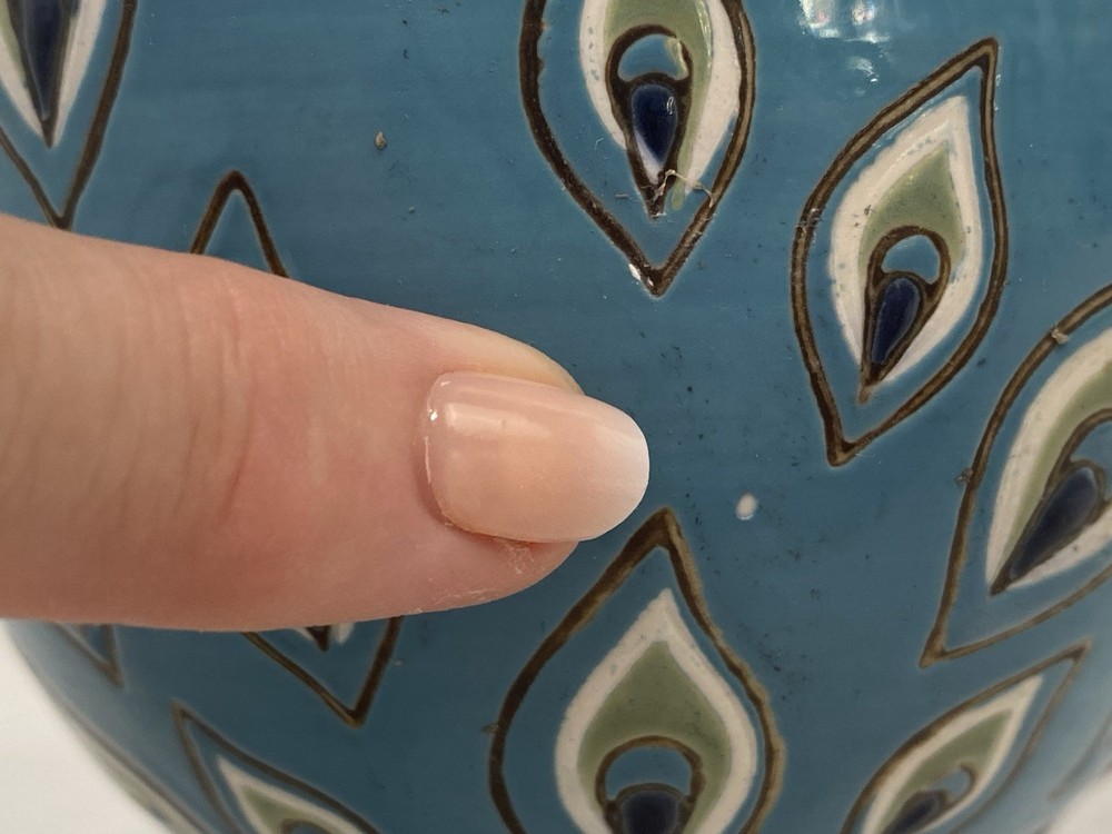 Imperfections in paint in several areas as this is a hand painted piece....