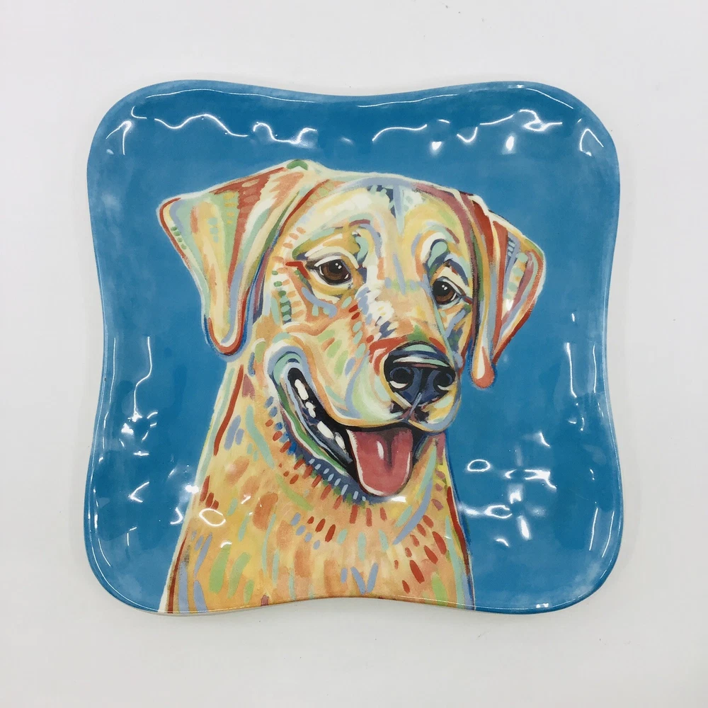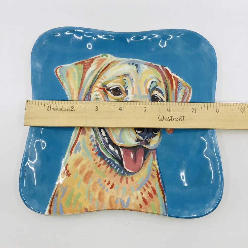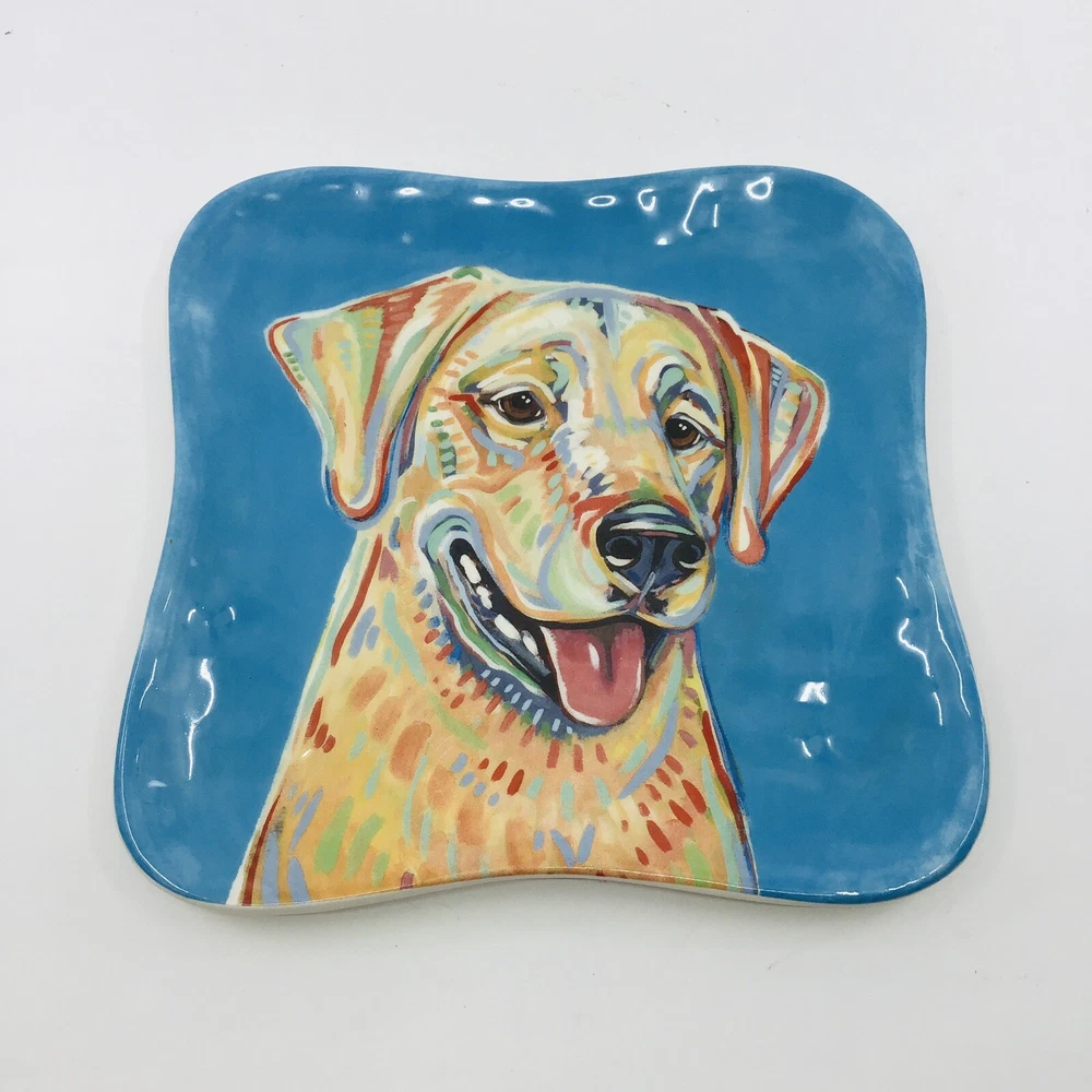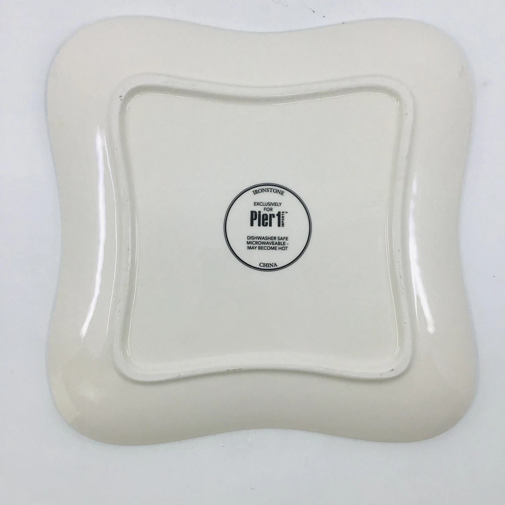 Add some canine charm to your dining experience with this Pier 1 Imports 8-inch square salad plate featuring adorable portrait puppies. The plate is made of ceramic and finished with a glossy surface, making it perfect for all occasions. The blue color and printed backstamp add to the contemporary original design. This plate is ideal for dog lovers and collectors alike, and would make a great addition to any collection. It was manufactured in China during the 2010-2019 time period and is in excellent condition. Don't miss out on the opportunity to add this unique piece to your home decor.