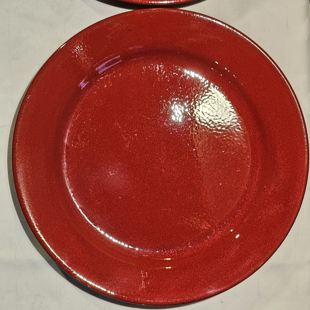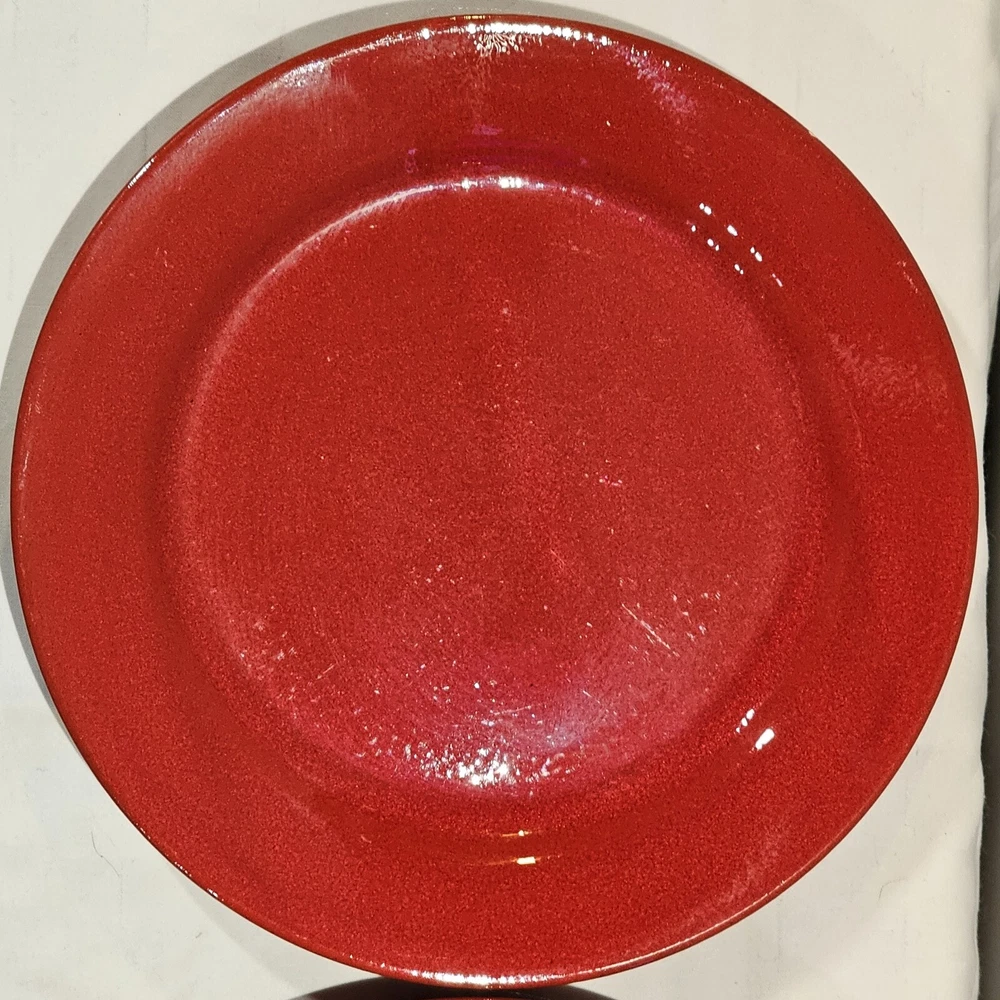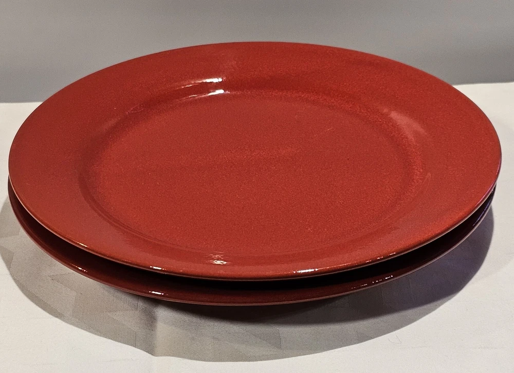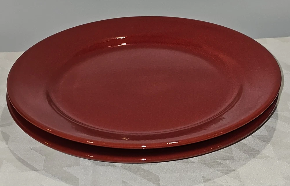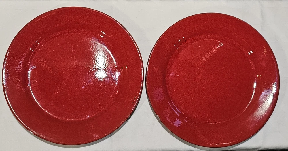 Pier 1 Imports "Pattern" RED Earthenware Salad Plate Spain Pier [Set Of 2] Add a pop of color to your table setting with this set of two round Pier 1 Imports Salad Plates. The plates are made of sturdy stoneware material with a contemporary red pattern that is perfect for all occasions. The 8" diameter plates are perfect for serving salads, desserts, and other small dishes.