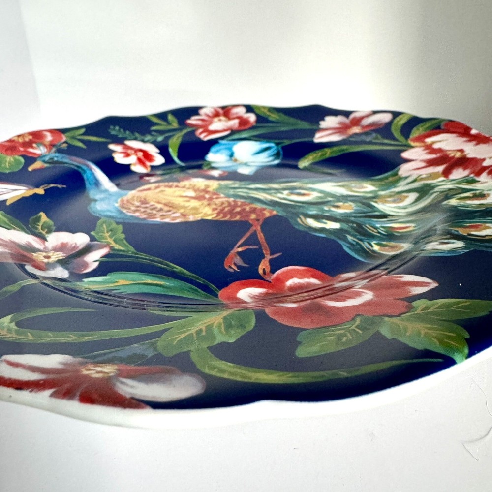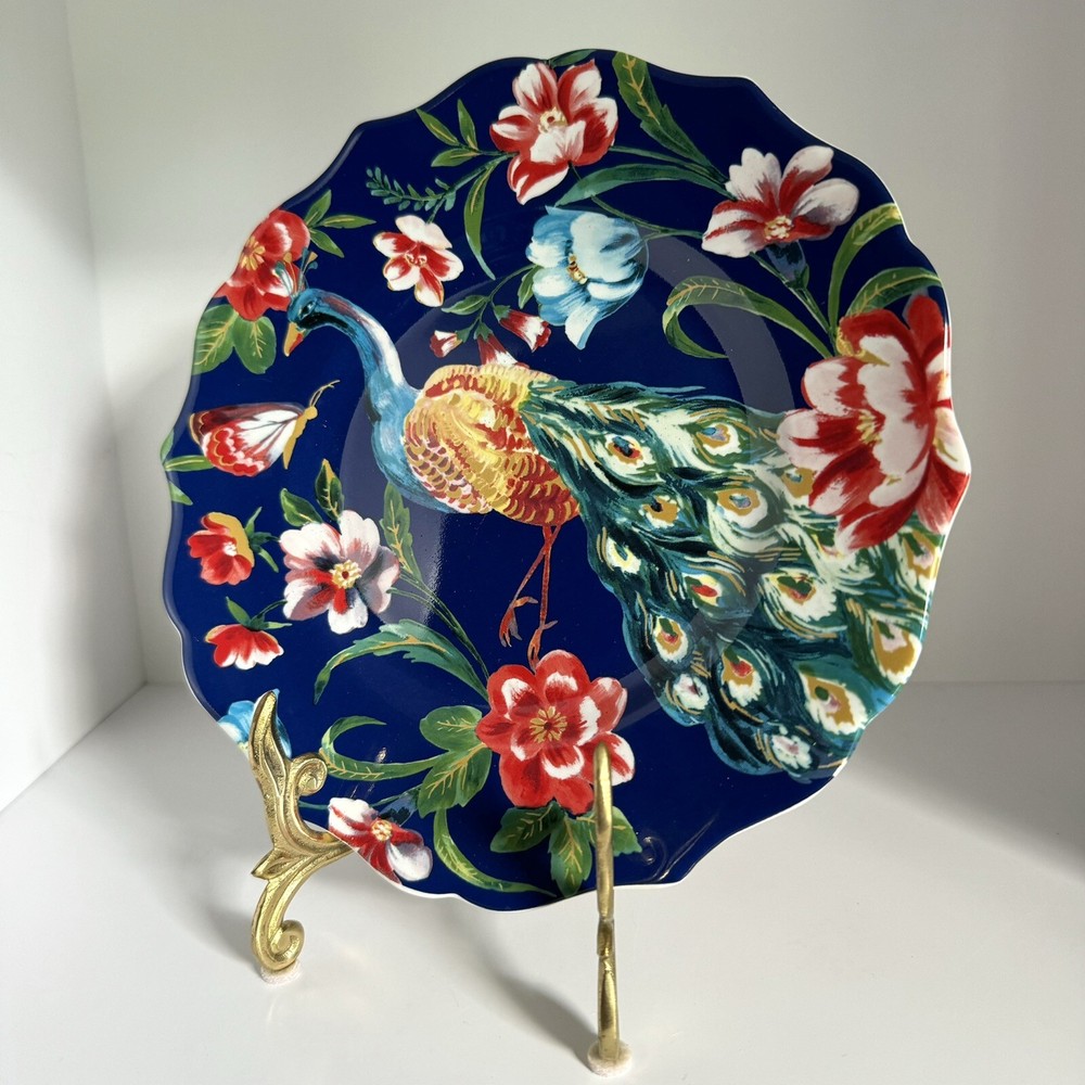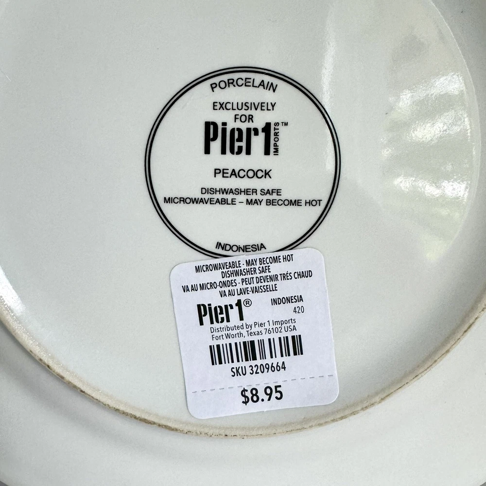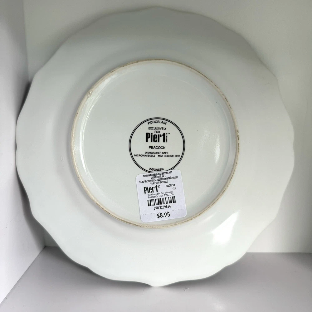 Pier 1 Imports Pattern: Peacock Porcelain Lunch Salad Plate Blue Floral Scalloped Edge Heavy: 1.2 pounds Approximately: 8.5” Diameter Brand New - Sticker attached Ships Same or Next Day! Professionally packaged (Bubble wrap/Air pillows) and shipped in a sturdy box with USPS Ground Advantage or Priority Mail Top Ranked Seller - 100% Positive Feedback