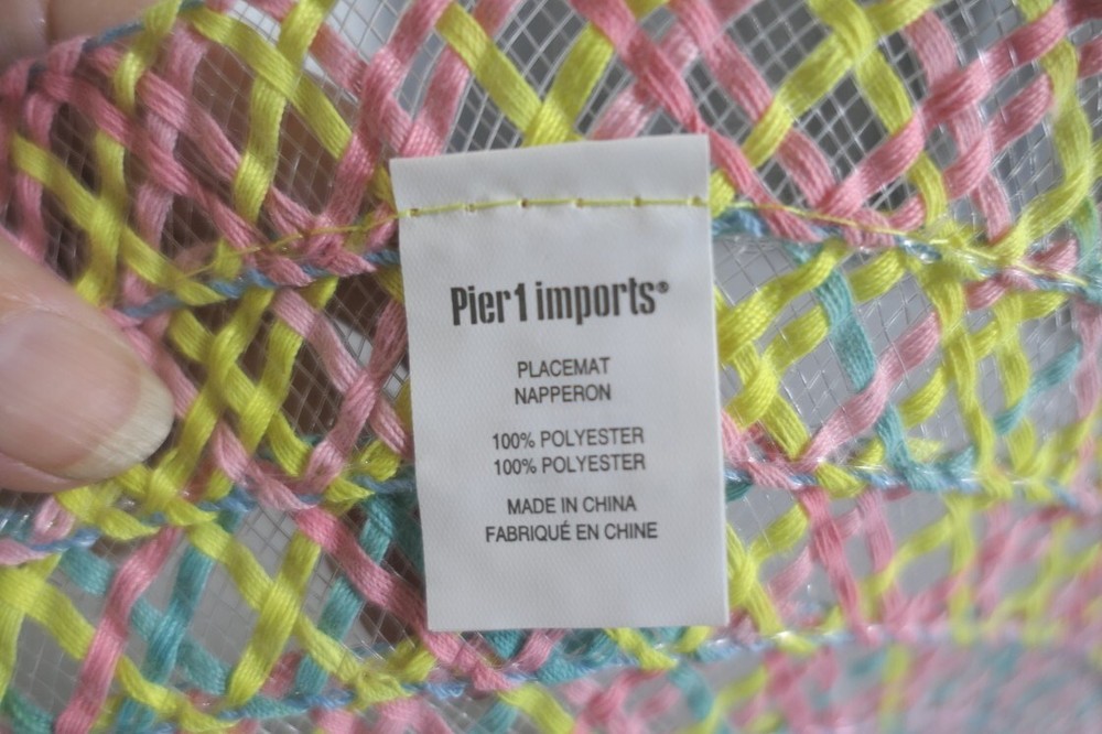 Pier 1 Imports Pink, Green & Yellow Woven 15.25" Round Table Display Placemat Pier 1 Imports Pink, Green & Yellow Woven 15.25" Round Table Display Placemat Pier 1 Imports Pink, Green & Yellow Woven 15.25" Round Table Display Placemat The place mat is a really pretty woven pink, green and yellow colour. The mat measures approx. 15.25". The material content is 100% Polyester. In excellent condition with no stains, holes or tears with original tag. Pier 1 Imports brand. Made in China. Payment Policy For your convenience, we accept PayPal All Sales are final Payment must be received within 3 business days after the close of the auction Texas buyers are subject to 8.25% sales tax REMEMBER YOUR BID IS A BINDING CONTRACT. ANY ITEM NOT PAID FOR WITHIN THREE DAYS WILL AUTOMATICALLY BE RELISTED Shipping Policy Buy 2 or more items and shipping will always be combined and the cost adjusted accordingly Shipping within the 48 Contiguous United States Delivery to Alaska or Hawaii Available - Email for Shipping Quote Paypal Confirmed Addresses Only Most items will be shipped by UPS Ground, FedEx or USPS within 1 Business day of receiving full payment Please note that while I strive to ship within 1 Business day, that there are some items that require special packing or handling and may be shipped later than 1 Business day. USPS, FedEx and UPS Tracking Number will be provided In the event of a damaged insured shipment please contact shipping carrier immediately. Buyer is responsible to file a claim with the carrier. Do not discard original packaging. Losing your original packaging will void your claim. Returns Policy Actual Images of item are shown above We want you to be happy and satisfied. If you have a question, concern or problem with your purchase, please contact me personally so that we can resolve your concerns before you open a case. If you think that we have mis-represented our items, Buyer can return the item within 14 days at the Buyers expense and your money will be fully refunded Feedback is important to Sellers, please contact me before leaving negative feedback so that we can resolve any concerns you may have. Terms We reserve the right to cancel any bid for reasons like, but not limited to: Bidder does not comply with the terms and conditions Bidder has a poor feedback Suspicious bidder Listing and template services provided by inkFrog