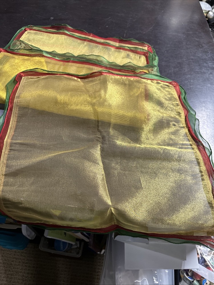 Pier 1 Imports Placemats Set Of 4 Red Gold Green Shimmer Sheer Square...
