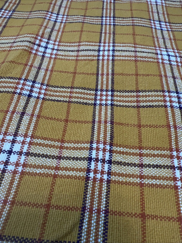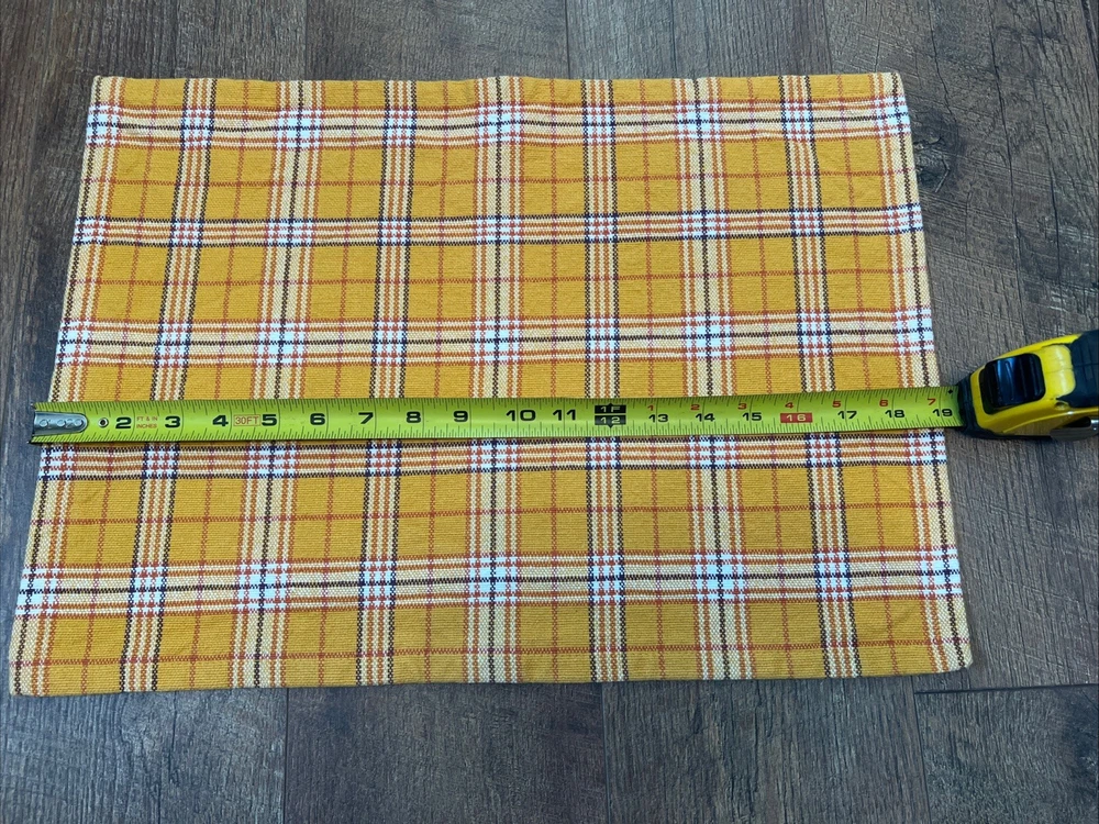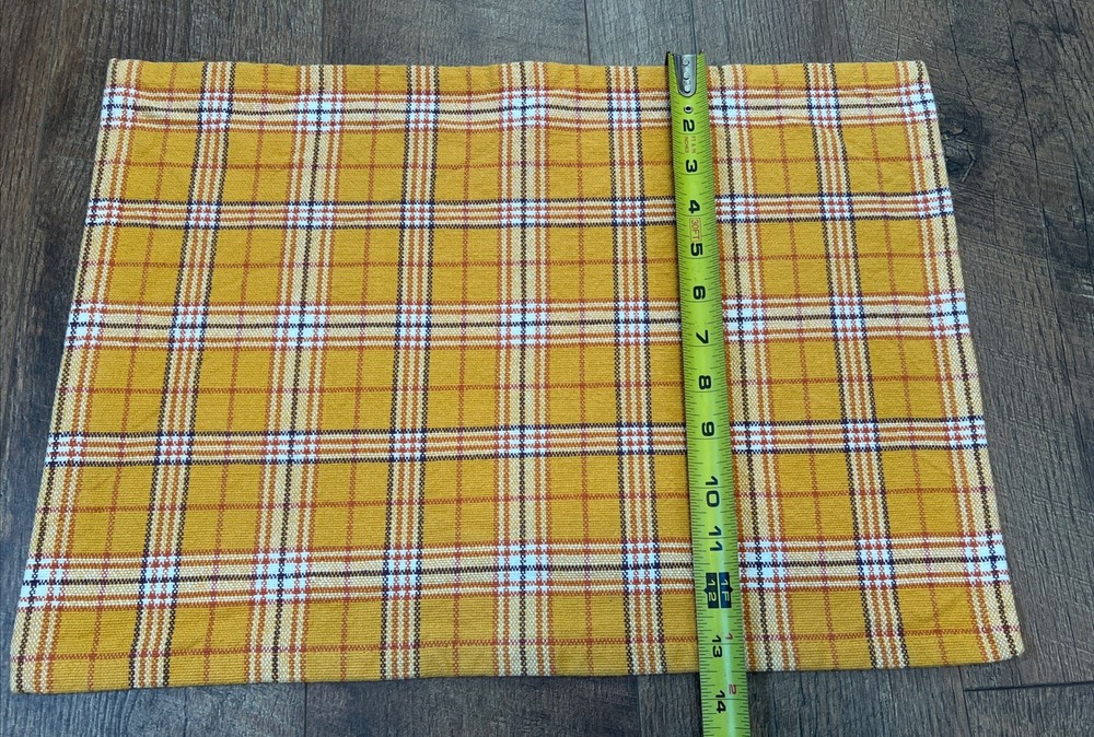 Set a four pier one yellow gold plaid placemat. Previously used. Very good condition clean no stains. Perfect for fall or farmhouse decor. Measurements are in the photos. 100% cotton....