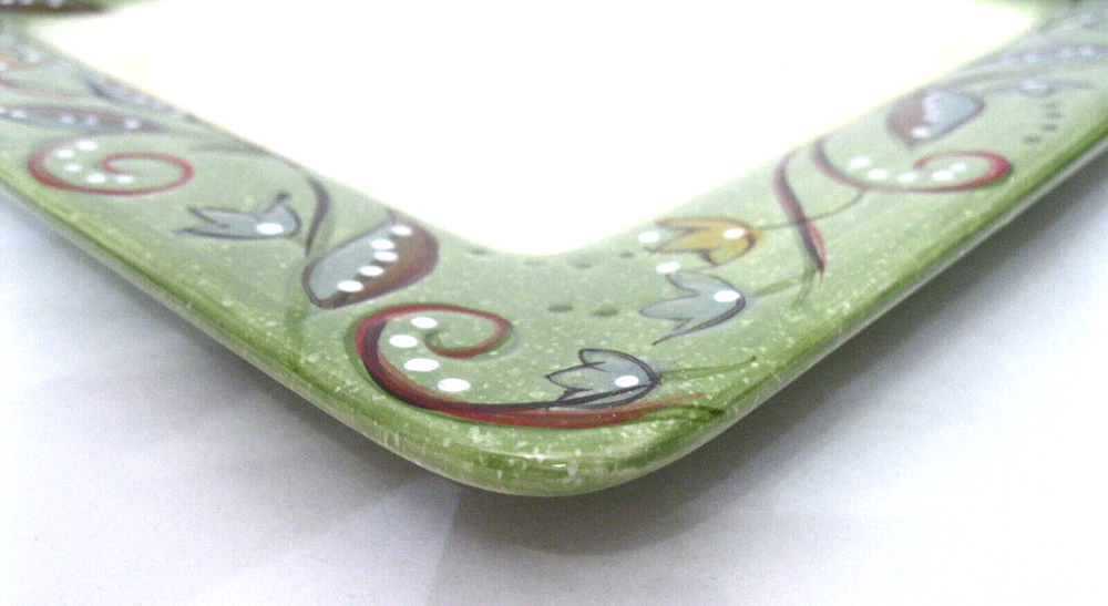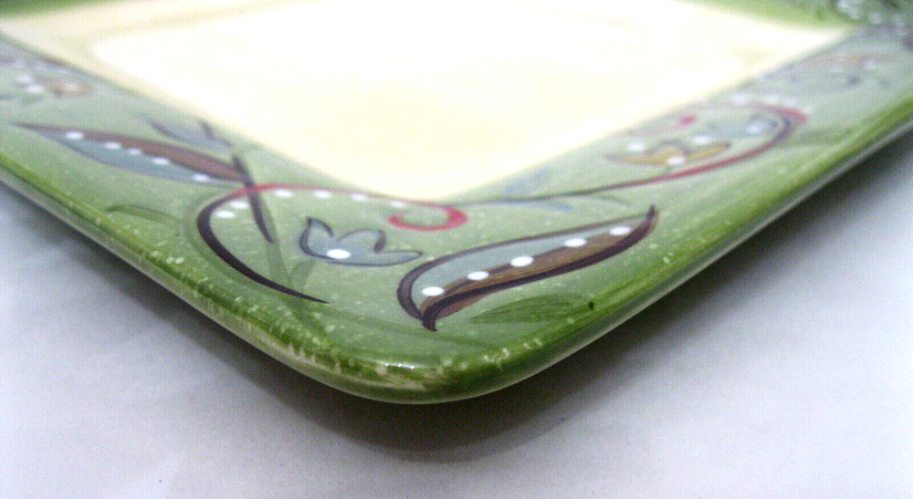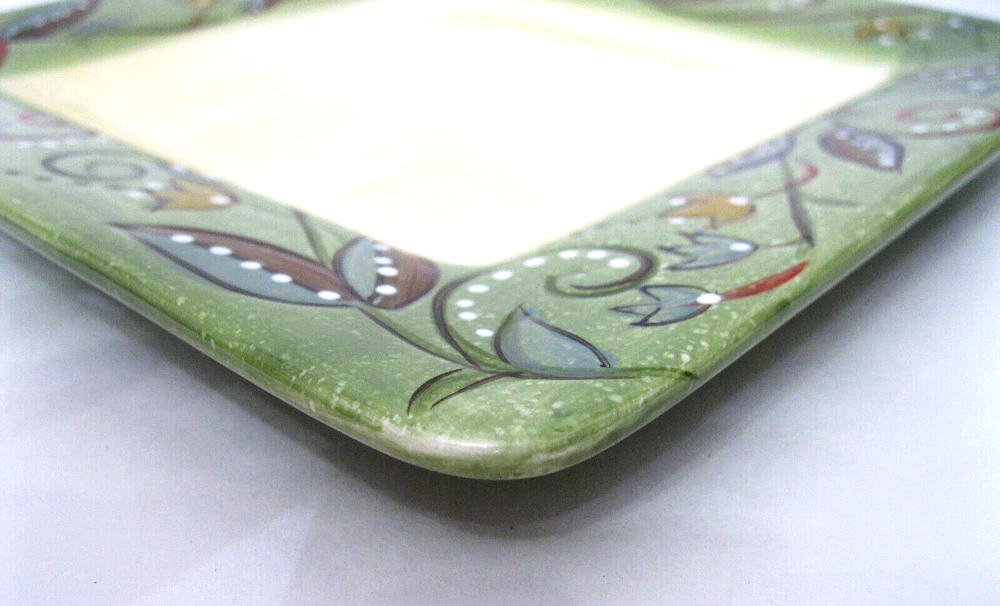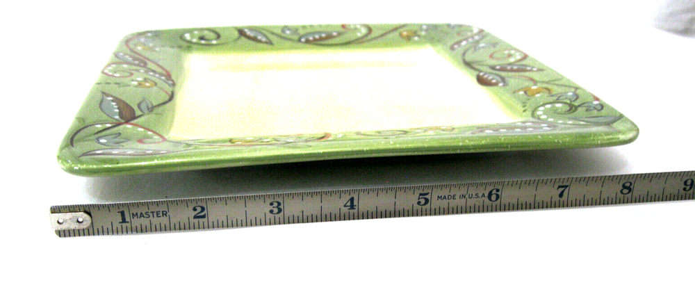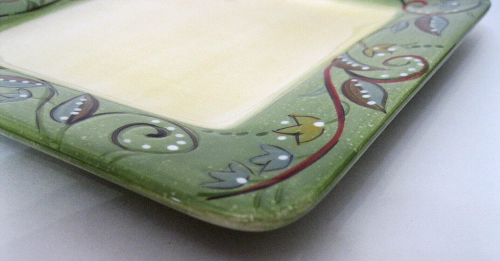 Absolutely love this plate! The hand-painted green rim and textured design give it such a unique, elegant look. The light tan center is perfect for both salads and desserts, making it super versatile. It’s in flawless condition—no chips or scratches—and knowing it’s discontinued makes it even more special. Great addition to my collection!