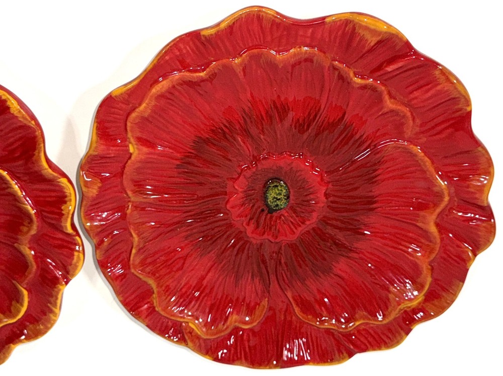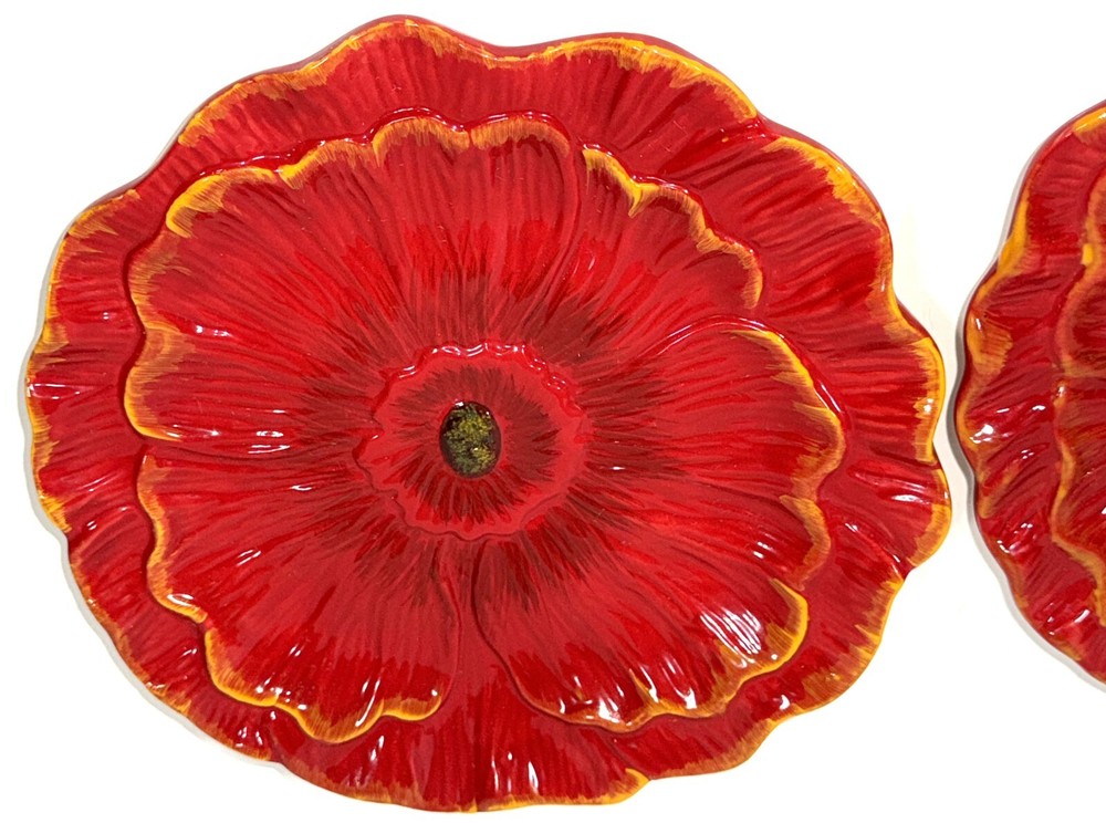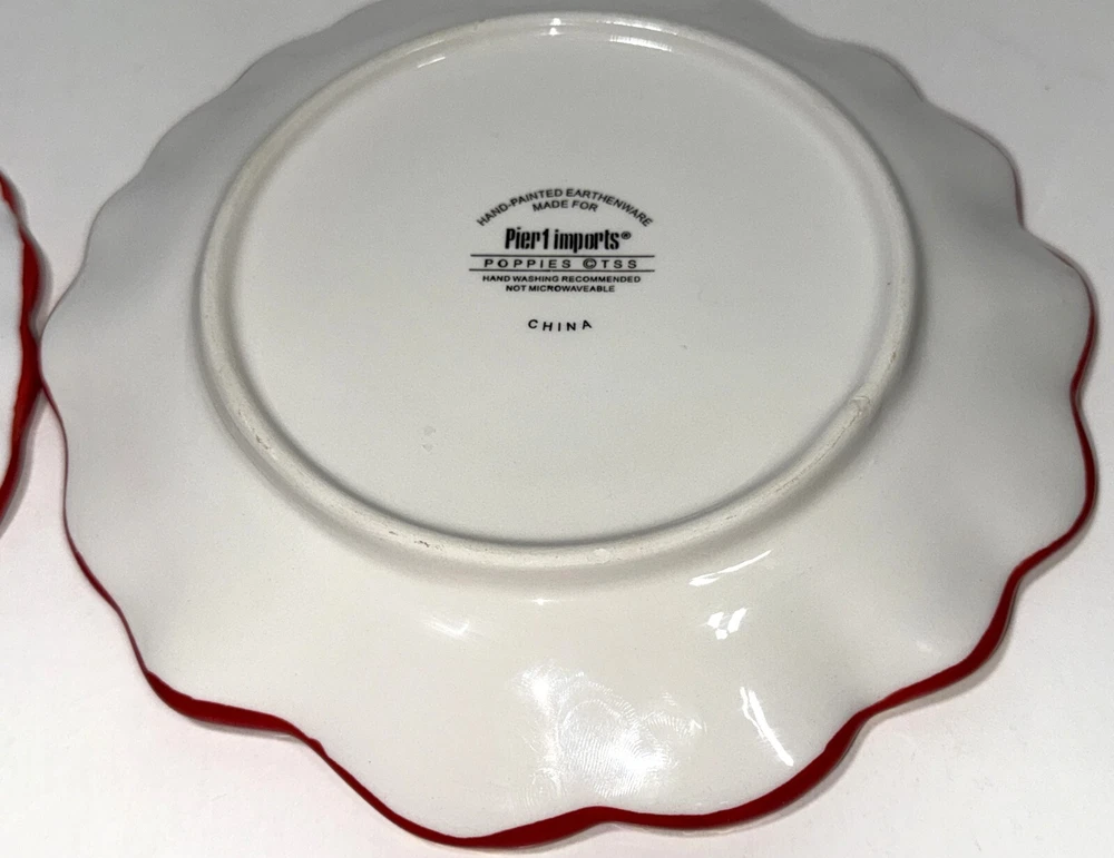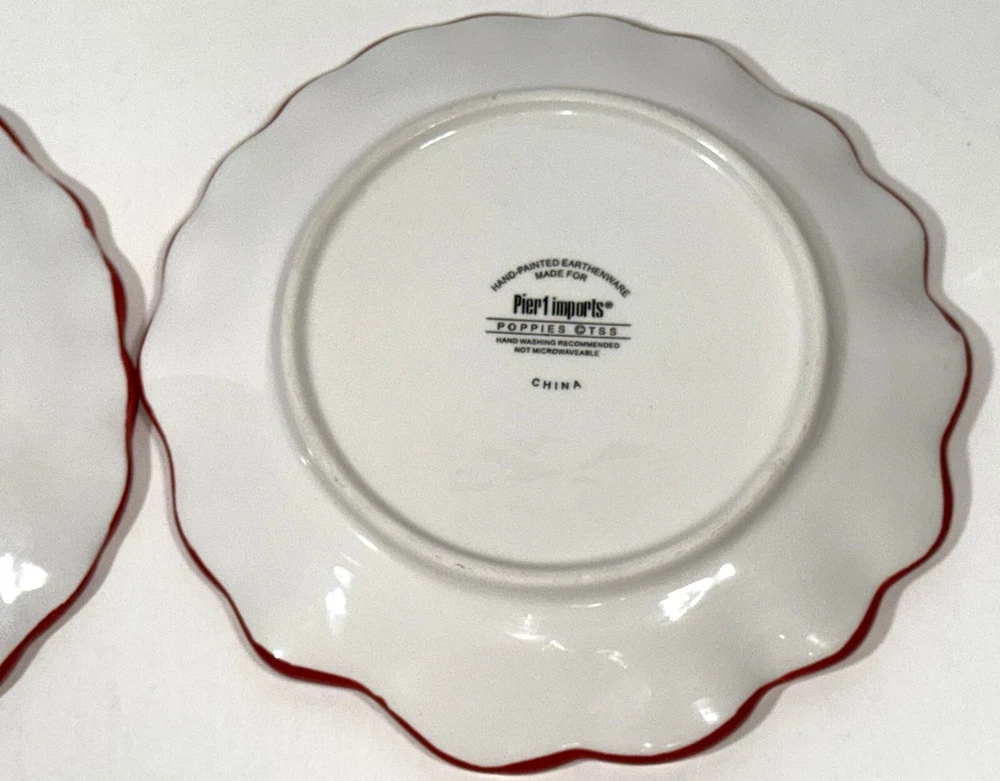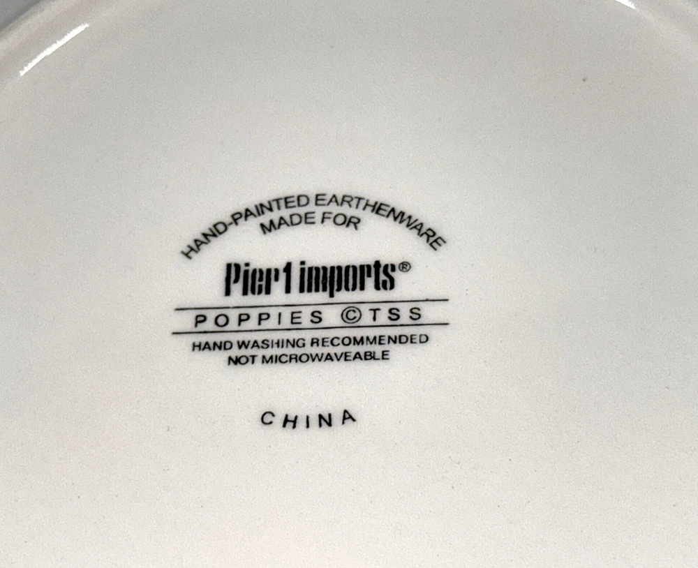 Pier 1 Imports Poppies Poppy 8” Red Flower Salad Plate Hand Painted Earthenware Great gently used condition minor light chip wear to the bottom rim edge, see pics.