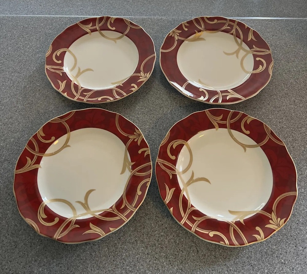 Pier 1 Imports Porcelain Crimson Chic Round Dinner Plates Set of 4 Please note these plates have been used but are in very good condition