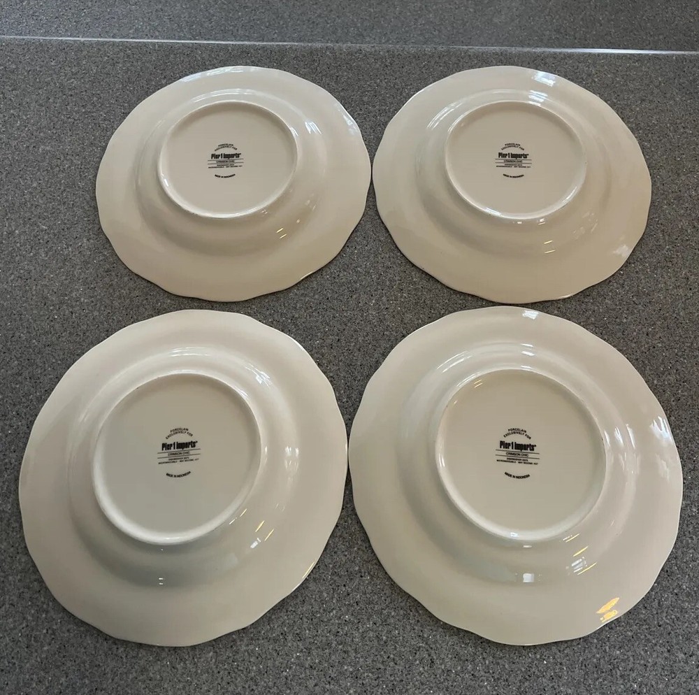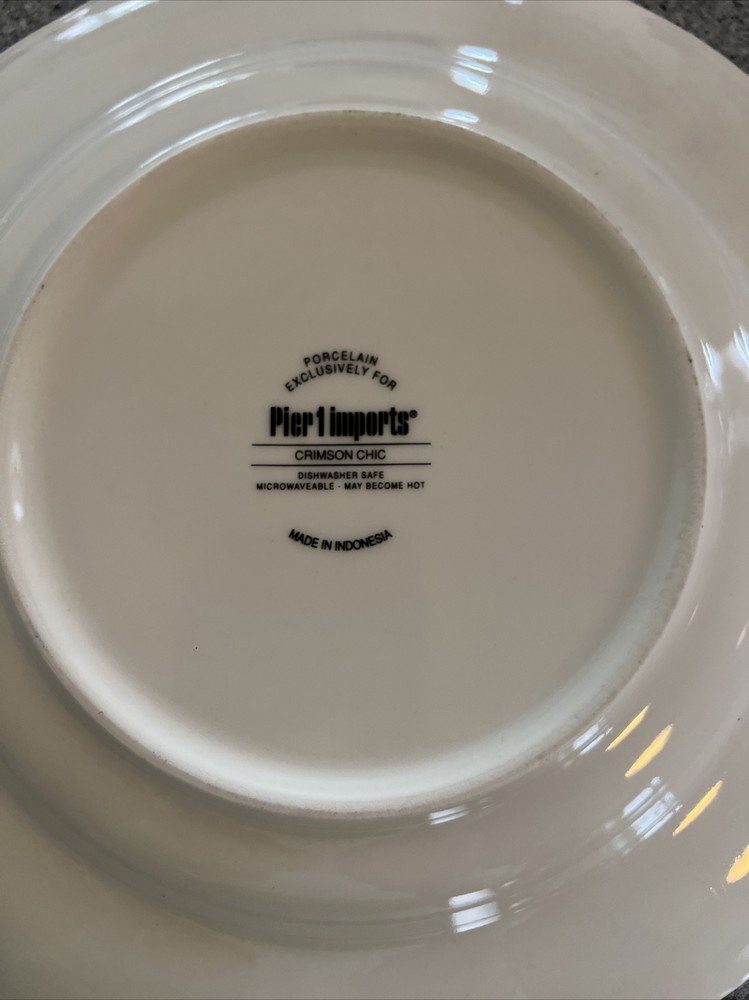 Pier 1 Imports Porcelain Crimson Chic Round Dinner Plates Set of 4 Please note these plates have been used but are in very good condition...