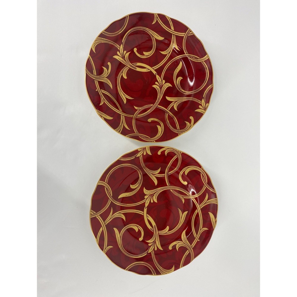 Pier 1 Importa Porcelain Crimson Chic Salad Plates Set of 2.