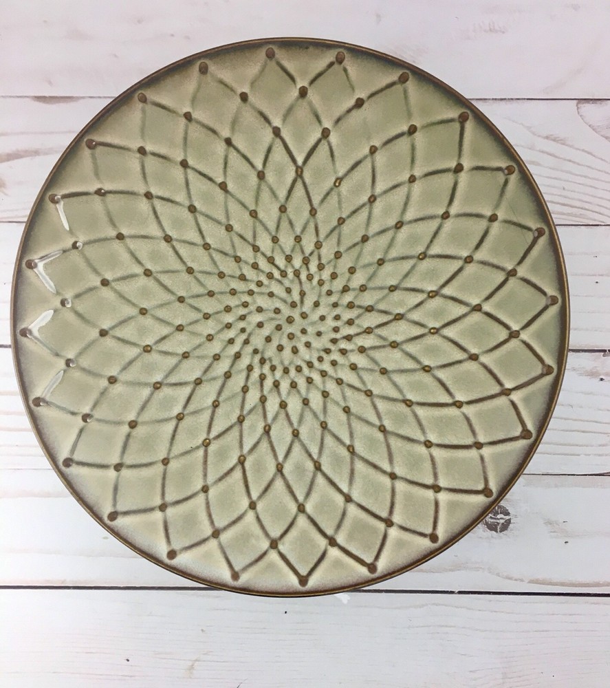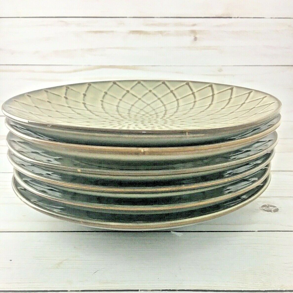 Pier 1 Imports Reactive Tan with Brown Geometric Design 8 1/2" Salad Plates Set of 6. Plates are all in excellent condition. No chips, cracks or stains....