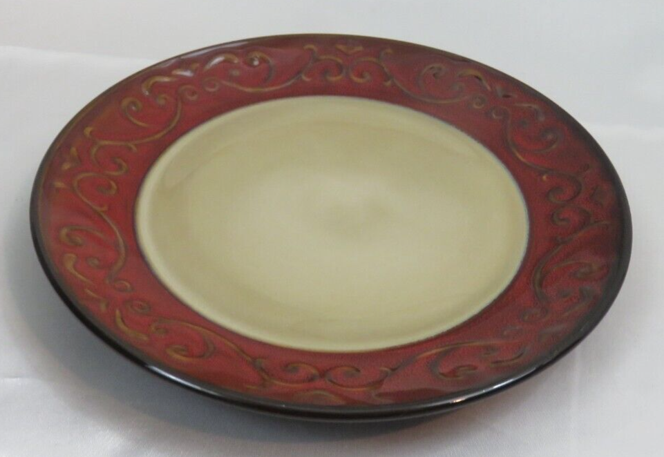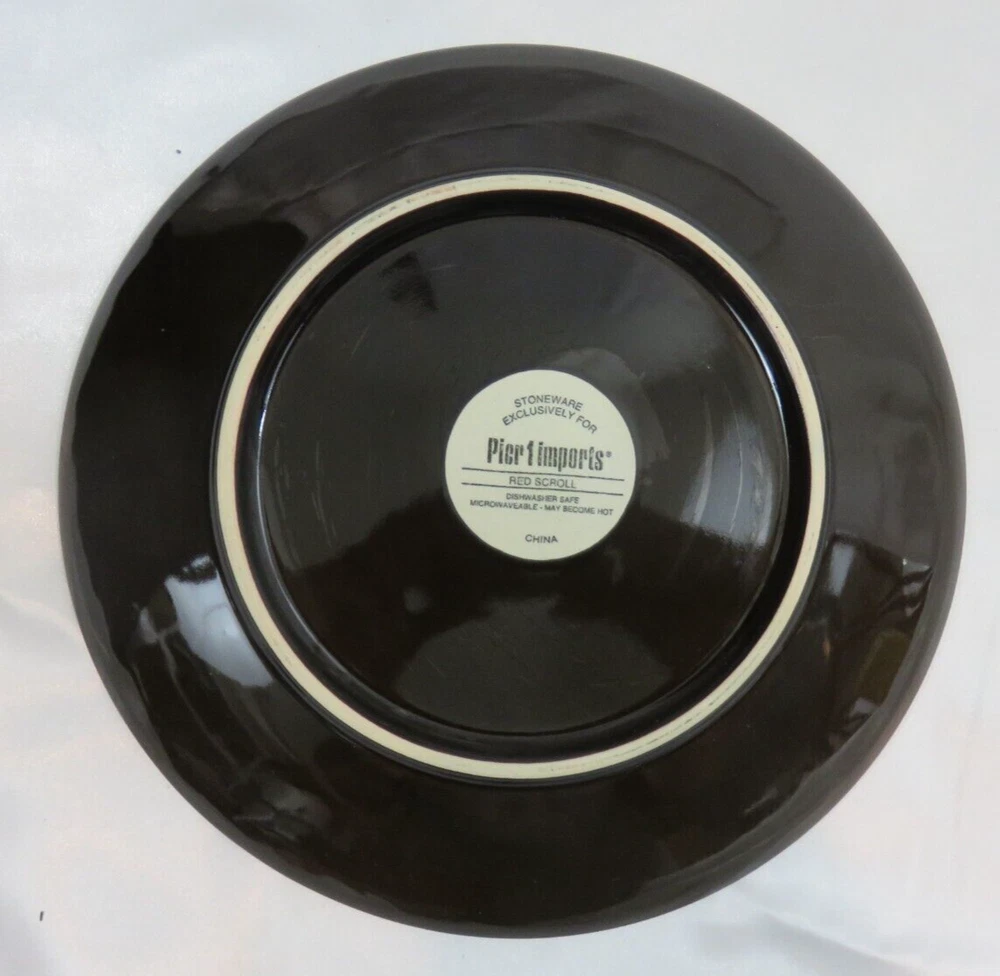 Today I have up for consideration a Pier 1 Imports Salad - Luncheon Plate. This piece is 1" Tall and 8-1/4" in Diameter at the Rim. This piece is in the Red Scroll Pattern. This piece is Brown and Red with a Red Scroll Pattern. . To see similar items like this, check out our Store at the bottom of the page or Click "Visit Store" below our name on the right side of the page. Not all items show up in the E-Bay search! At DemiQ-Dishes-N-More we believe that our buyers deserve quality merchandise at a reasonable price, with all the information needed in order to make an inform decision! DemiQ-Dishes-N-More Offers next day shipping, Hassle Free returns & 100% satisfaction guarantee, so you can buy with confidence! We provide Replacement China, Dinnerware, Stoneware, Glass Ware, Collectibles & a wide Variety of other items. We hope you enjoy what you see & we hope to see you again soon! If you like what you see please add us to your list of favorite sellers. Thank you for your business! Package weight: 2 - lbs. Weight includes item(s). box, bubble wrap & packing materials. NOTE: I DO NOT set the shipping rate That is done By The USPS! Shipping cost is based on Location & weight of the package! PLEASE review the shipping cost BEFORE you buy!!!! I pack all fragile pieces well, however some pieces are VERY FRAGILE & I have no control on how packages are handled after they leave my possession, if something does break during delivery, I will request pictures of the broken item (s) before I will offer a refund. Positive feedback is sent as soon as positive feedback is received! Thank you for your time & Purchase!