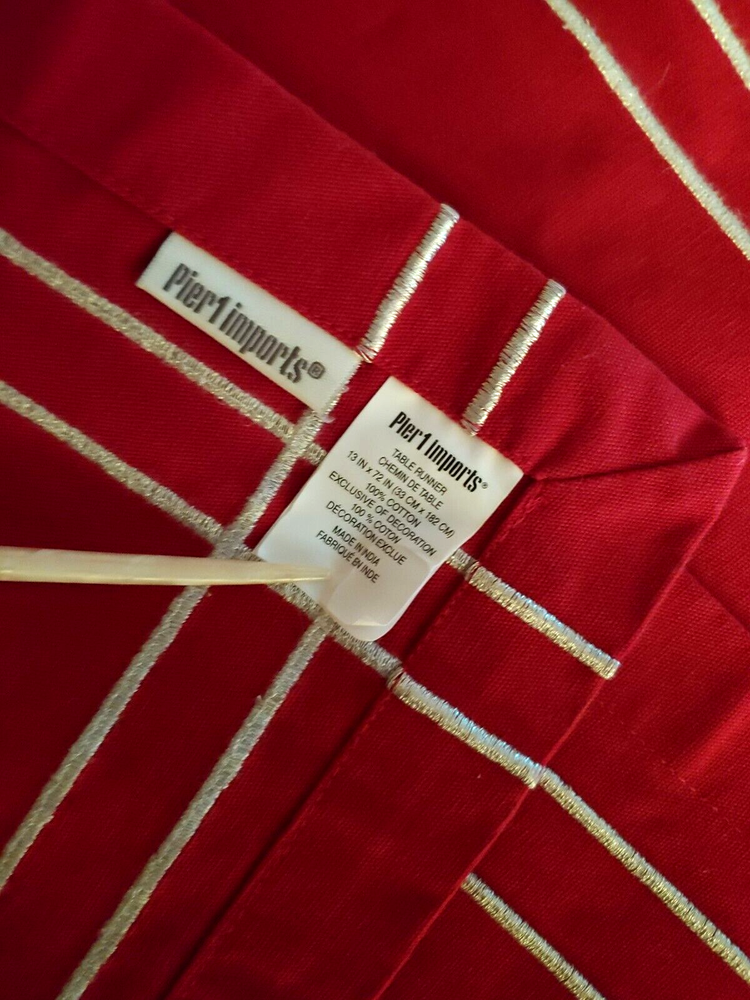 Pre-owned Runner. Nice condition. No issues. Measures 13x69" Cotton. Has a sturdy structured look and feel. Hemmed all around. 9oz. Check out my store for more Pier 1 Imports!!