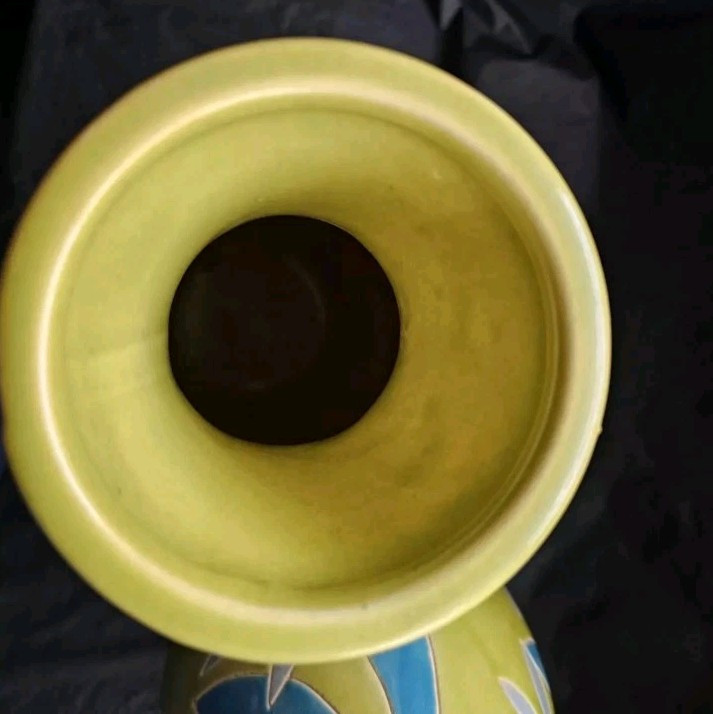 Pier 1 Imports Retro Vase Turquoise Lime Flowers Abstract Design 13 1/2". Condition is Used. Shipped with USPS Ground Advantage....