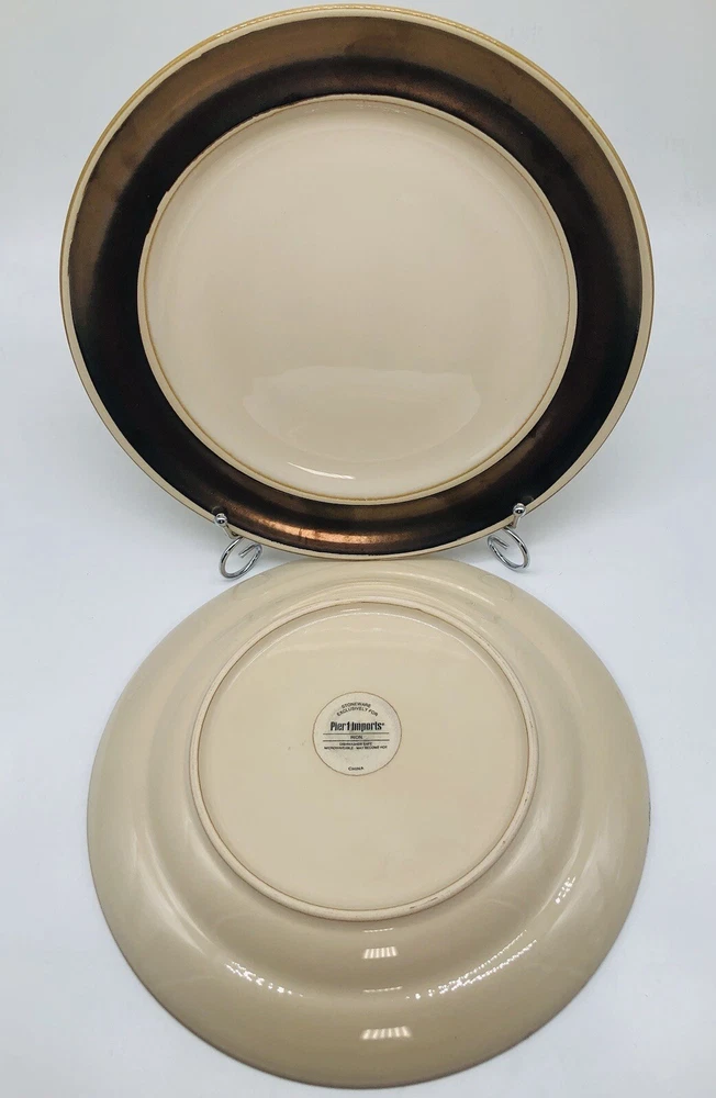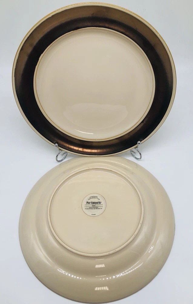 ~Set of 2 ~ Pier 1 Imports Rion Bronze/Brown 11” Dinner Plates-Serving Platter- Condition - Like New Brand - Pier 1 Imports Size - 11” **Shipping** Items are usually shipped out the next day via USPS. ***Returns*** I accept returns for any reason. I want you to be 100% satisfied with your purchase. Items must be returned within the stated time frame (30 days) and in the same condition it was received. We have a proven track record of accurate descriptions and timely shipping. ***THANK YOU FOR TRUSTING DETAILRESALE WITH YOUR PURCHASE***