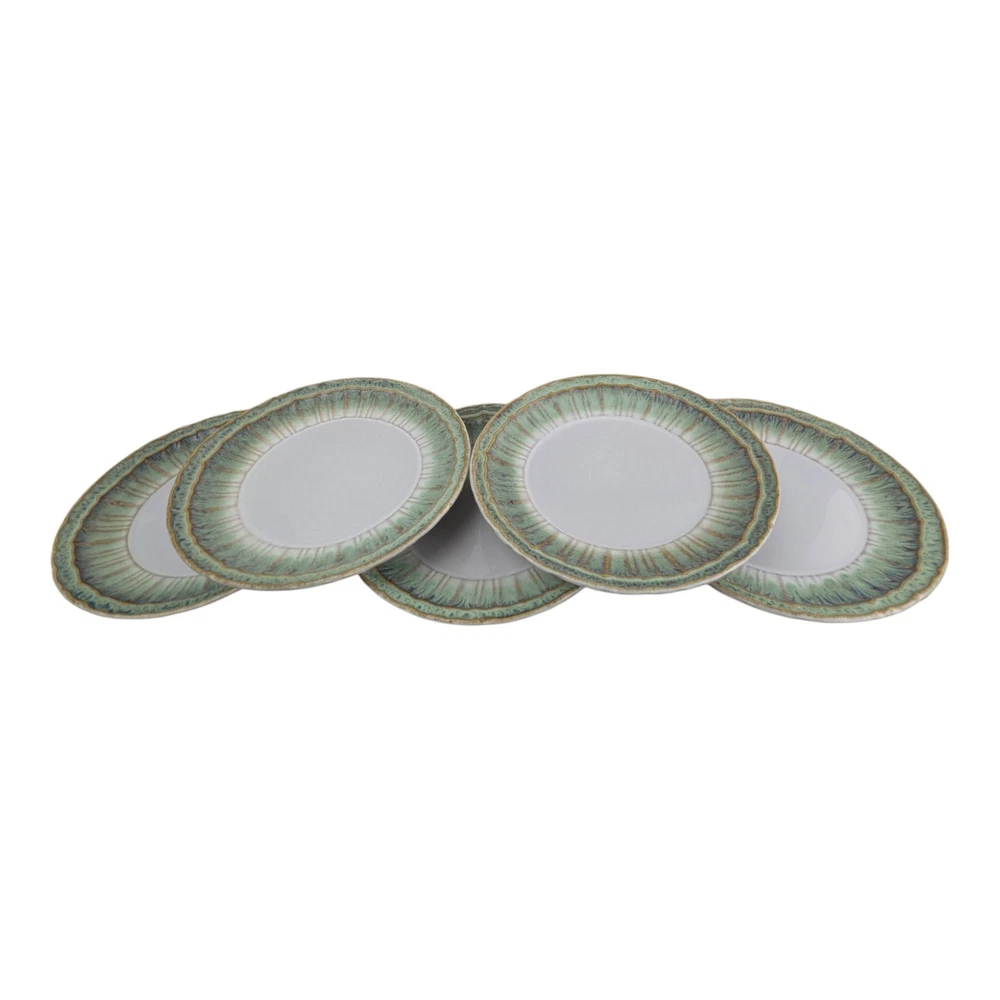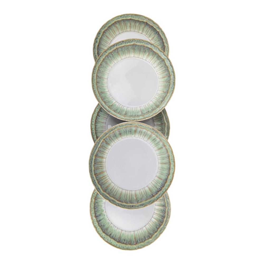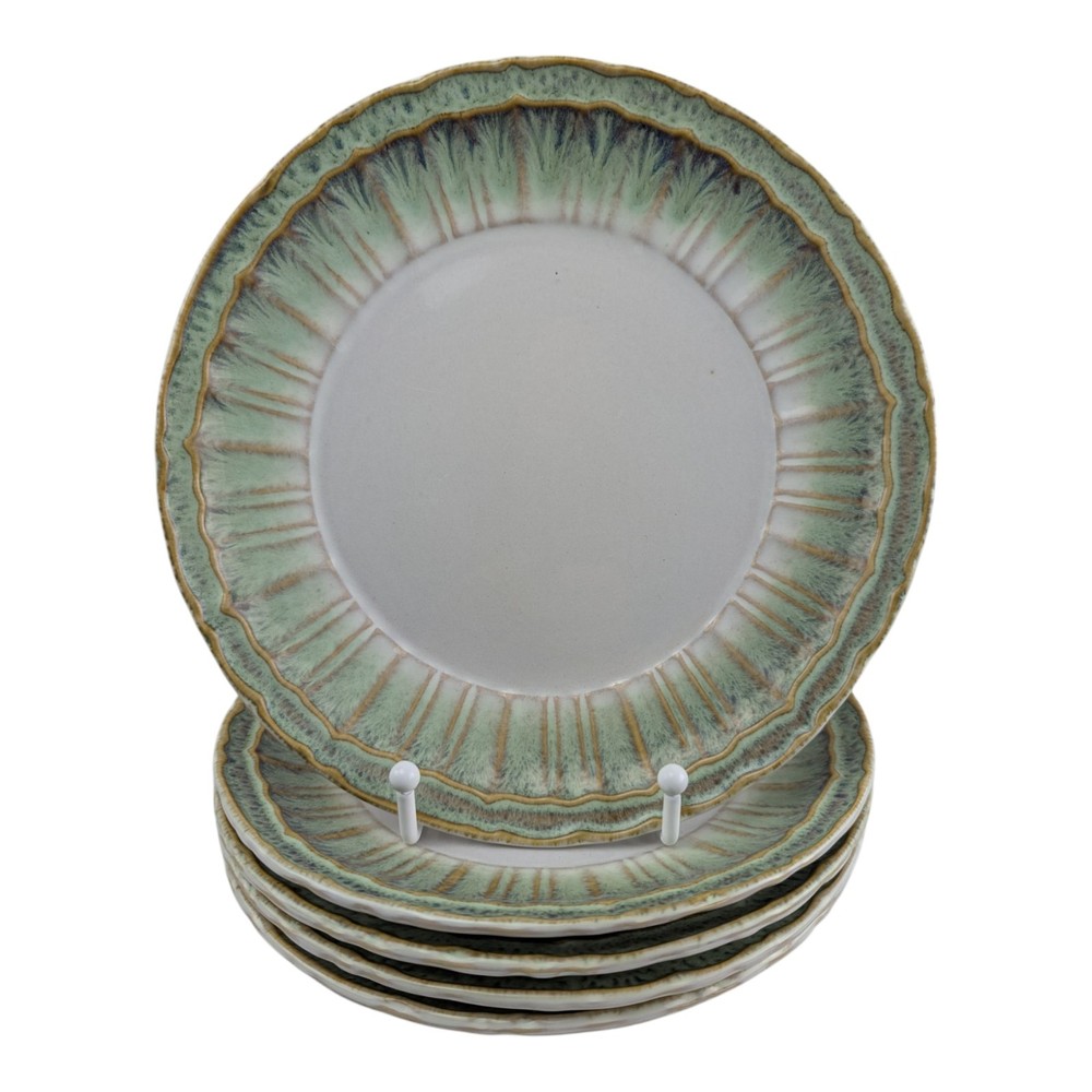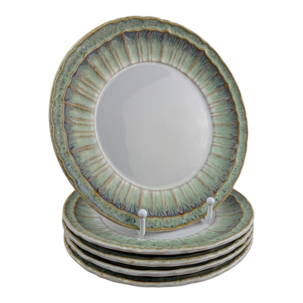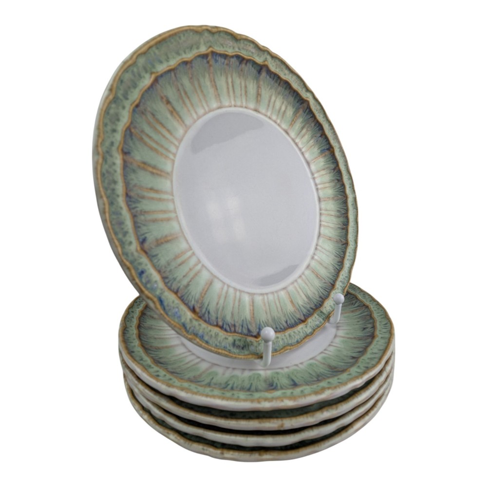 Set of 5 Pier 1 Imports SEASIDE salad plates featuring a contemporary scalloped edge in green with a cream-colored center . Perfect for all occasions, these round salad plates are ideal for serving salads, desserts or lunch in a stylish and elegant manner. Made in China, these plates are a great addition to any adult's kitchen or dining room, adding a touch of sophistication to the table setting. The plates are in great used condition with light utensil marks visible. We use ground shipping to maximize the value of your purchase. Rest assured that your items will still be packed with care. Please visit our eBay store for more Pier 1 Imports items and other unique finds including collectibles, vintage cookware, MCM tabletop, retro sporting gear, and cool barware! https://www.ebay.com/str/irvandolive Thank you, Irv & Olive