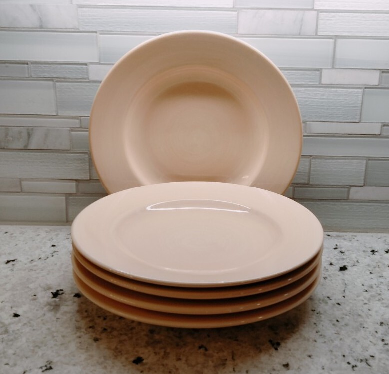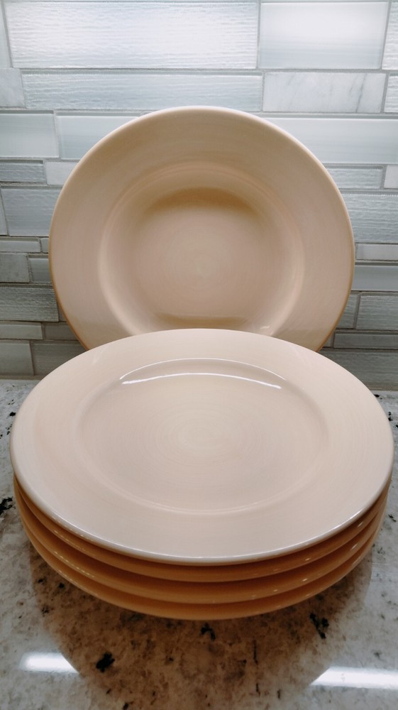 Enhance your dining experience with this set of five round dinner plates from Pier 1 Imports. These 11-inch plates feature a solid swirl pattern in a cream color, and are made of high-quality stoneware. Perfect for all occasions, this contemporary set is hand-painted and dishwasher and microwave safe. This set is part of the Essential Colours product line and is perfect for anyone looking to add a touch of elegance to their dinnerware collection. (F2) When You Buy From Triad Goods As resellers, we do our best to research all our items and authenticate them as best we are able, but please know we are human and not experts in all the various products we sell, as we source and process a high volume and diversity of items. We hope you can see from our exceptional review ratings that we care about the products we sell, strive to provide excellent customer service, communicate clearly with you our customer, pack our products well for shipping, and ultimately care that you are happy and satisfied with the product. To that end, while we do our best to provide an accurate description, its always best to message us directly with any questions or concerns before buying an item(s). We are happy to answer any questions or concerns you may have. We usually respond to any messages within an hour or less. We do also encourage and recommend that if you are buying an item you should always do your own research about that item before making a purchase with us or any online vendor. For all orders within the United States, we provide next business day shipping, and when you receive the item if you are unhappy with it for any reason you can send it back to us within 30 days for a full refund - and we pay for the return shipping. For international orders Ebay's international return policy applies. We have hundreds of positive reviews from very satisfied customers! Our goal is for our customers to always be happy with their purchase! So please let us know if you are not satisfied. We ask that you send us a message first versus leaving a review about the issue. Would love to work through the problem and resolve the issue to your satisfaction. Thank you in advance for making a purchase with Triad Goods!