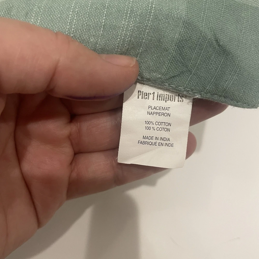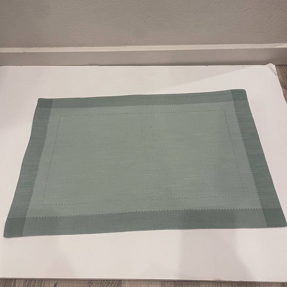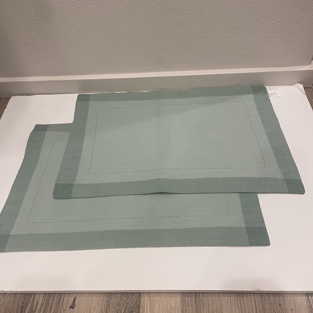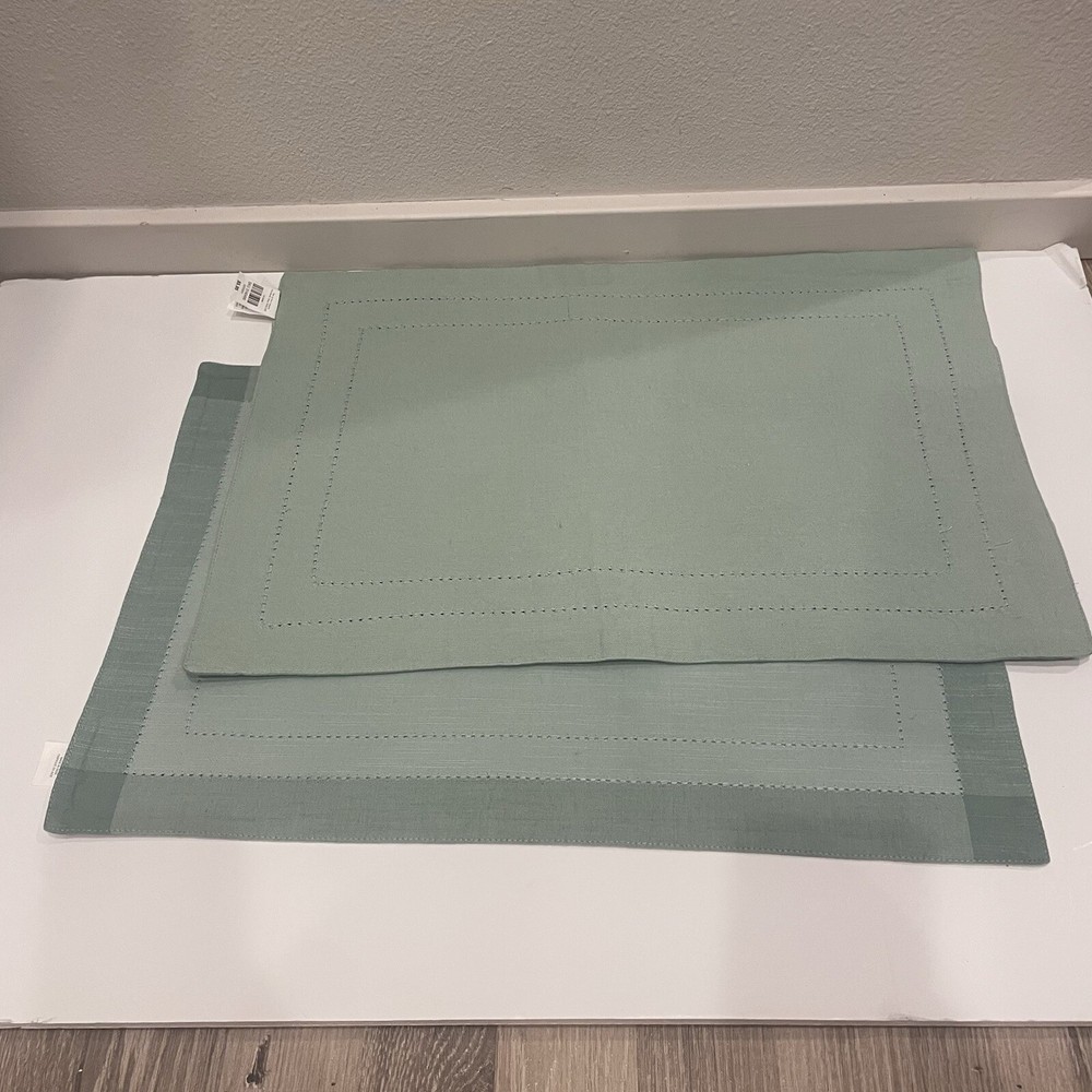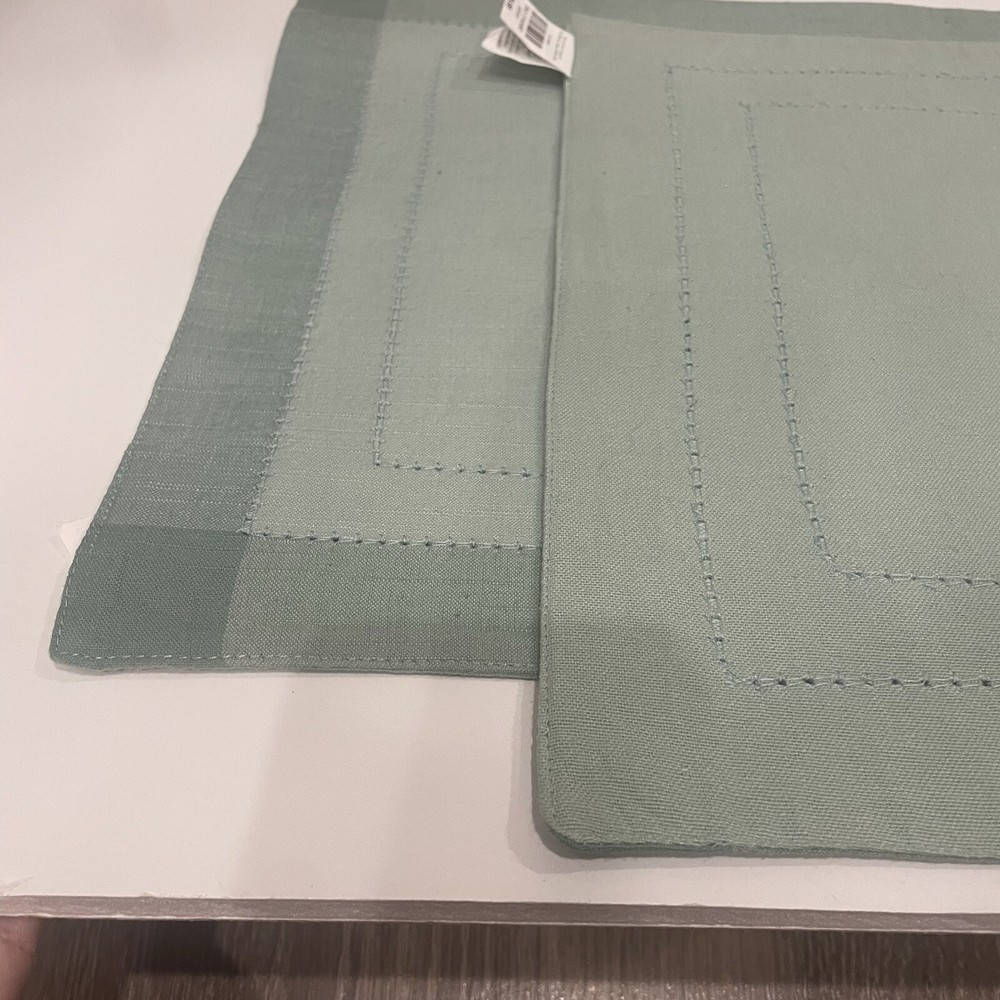 Pier 1 Imports Sage Mint Blue Stitched Border Cotton Placemats Set of 2 India 100% cotton Made in India Decorative stitched border pattern Set of 2...
