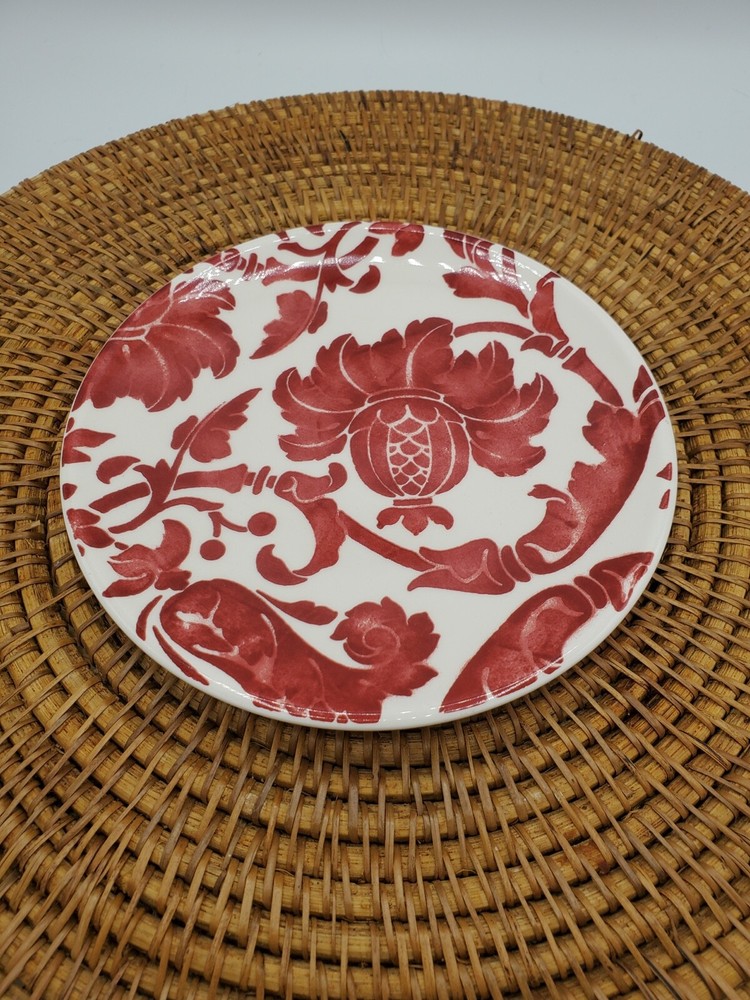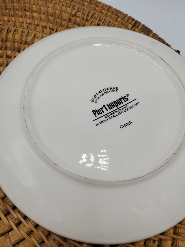 Pier 1 Imports Appetizer Plates Earthenware Red Green Floral Replacement Set 2 Set of 2 Appetizer Plates Perfect for replacement from the original set of 4 Brand- Pier 1 Imports Earthenware Theme- Floral and Christmas Colors- Red and green Condition- Great lightly used condition Dishwasher and microwave Safe Diameter- 7.25" Shipped with care