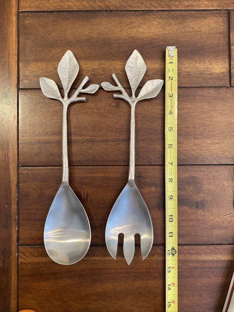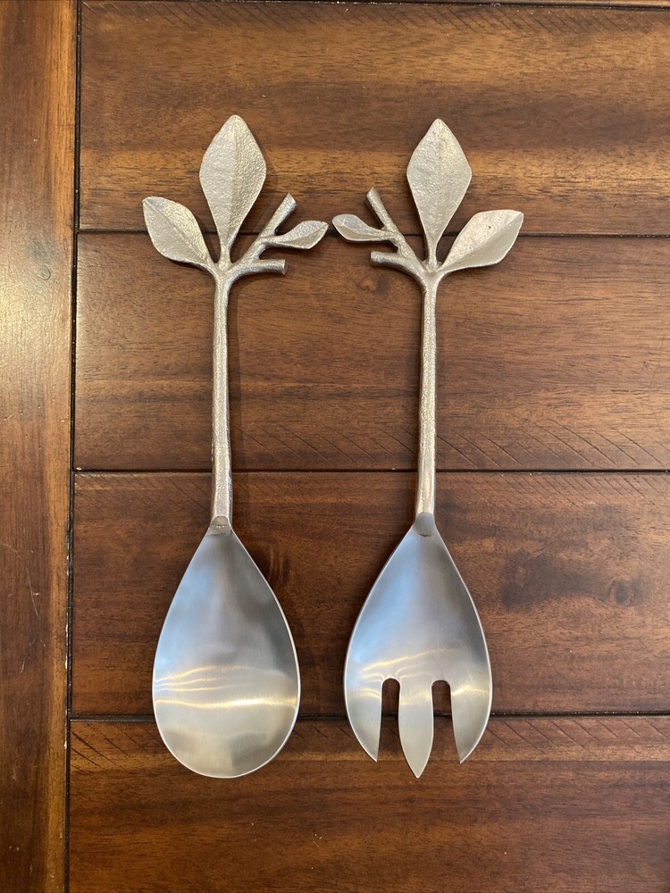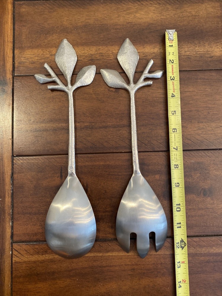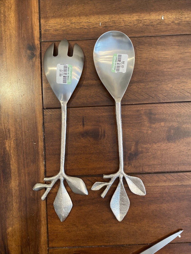This Pier 1 Imports Salad Serving Set includes 2 silver colored salad server utensils. The set is made beautifully and should be hand washed. It is designed for kitchen use and would be a beautiful addition to any gathering family or friends. Please see all photos for great condition and sizing Ask all questions or request more photos prior to purchase