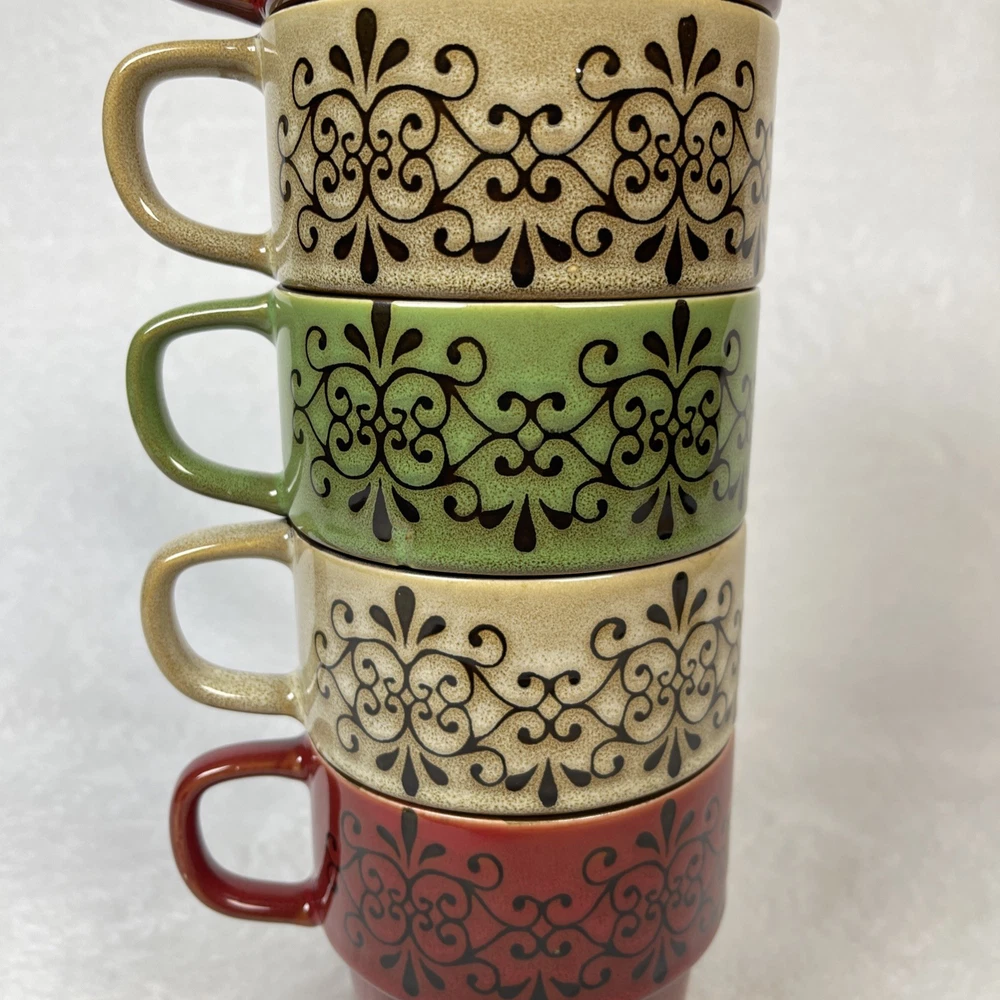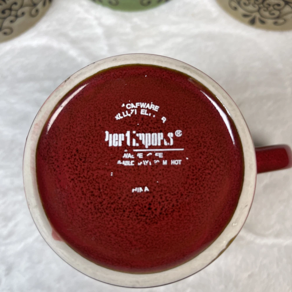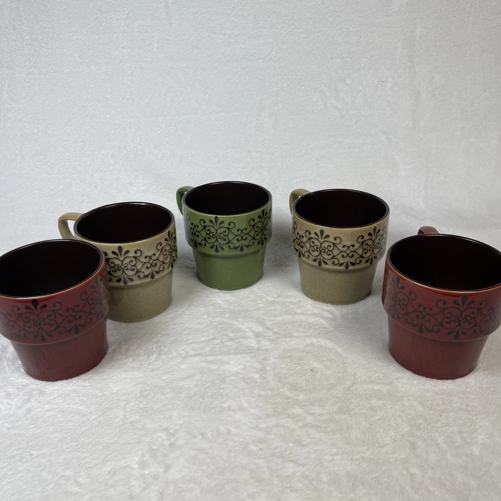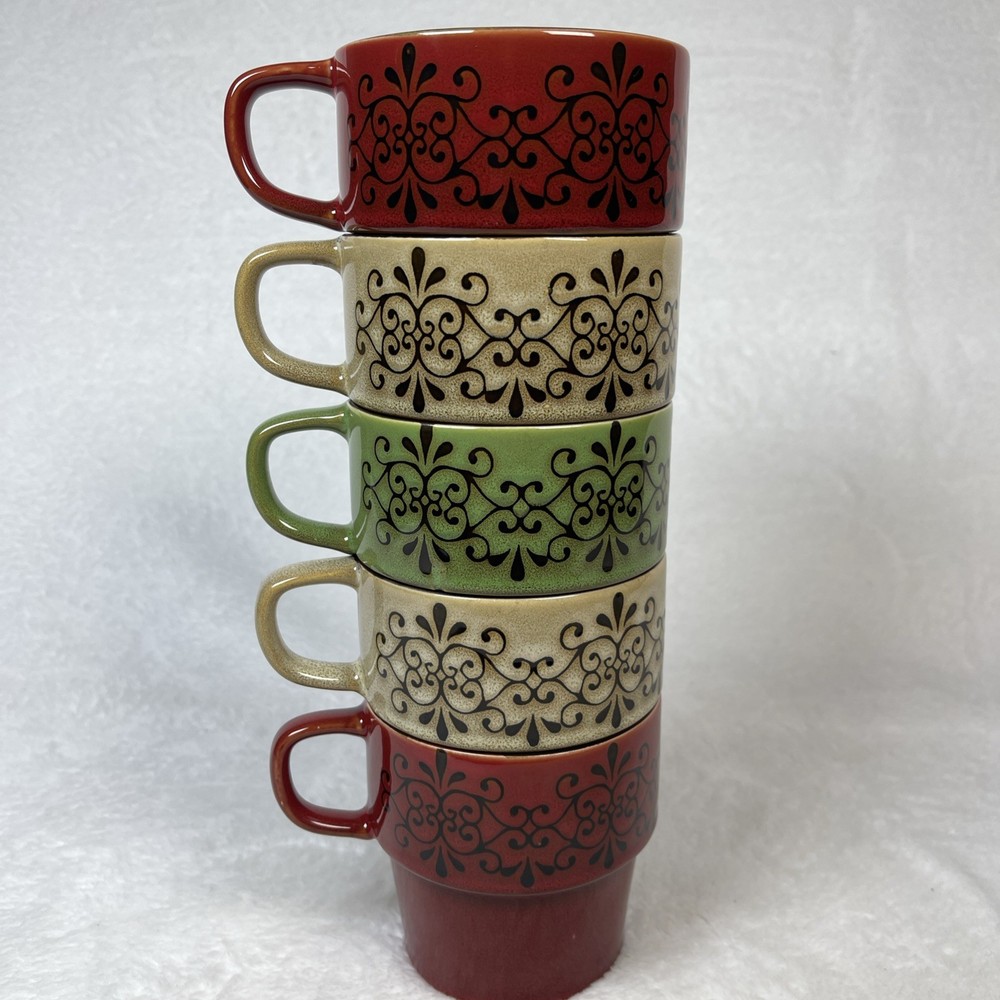 Pier 1 Imports Set/ 5 Stacking Stoneware Coffee Mug Cups 2 Red 2 Tan 1 Green Excellent pre-owned condition. No defects noted. Back stamp is worn off on 4 out of 5 mugs. Thank you for your interest. This is a pre-loved item and sold as is . See photos for additi onal details as they are part of the description. Item is photographed and described to best of my ability and any omissions or errors are unintentional. If you are unsure, please contact me with questions or for additional photos before purchasing. Tape measure only for reference and is not included. Items will be securely packaged to assure you receive the item undamaged. If there is any damage during transmit, keep the packaging/packages, take photos and contact me and the carrier (USPS, UPS, etc ) immediately for assistance. All packages will be sent using eBay's shipping labels and tracking software. I am not an authorized dealer or distributor for the manufacturer and therefore do not offer any warranties, expressed or implied for any items sold. By purchasing this item, buyer agrees that seller is not responsible for any damages or injuries caused by the use, misuse or failure of the product. Buyer assumes all liability for use including any damage to personal property or injury to children and animals. RETURN POLICY: Returns are refunded at full selling price (not including additional shipping) once I receive the item back in its original condition. Buyer pays return shipping. Returns must be done through eBay and adhere to eBay policies . Please contact me with any concerns before initiating a return.