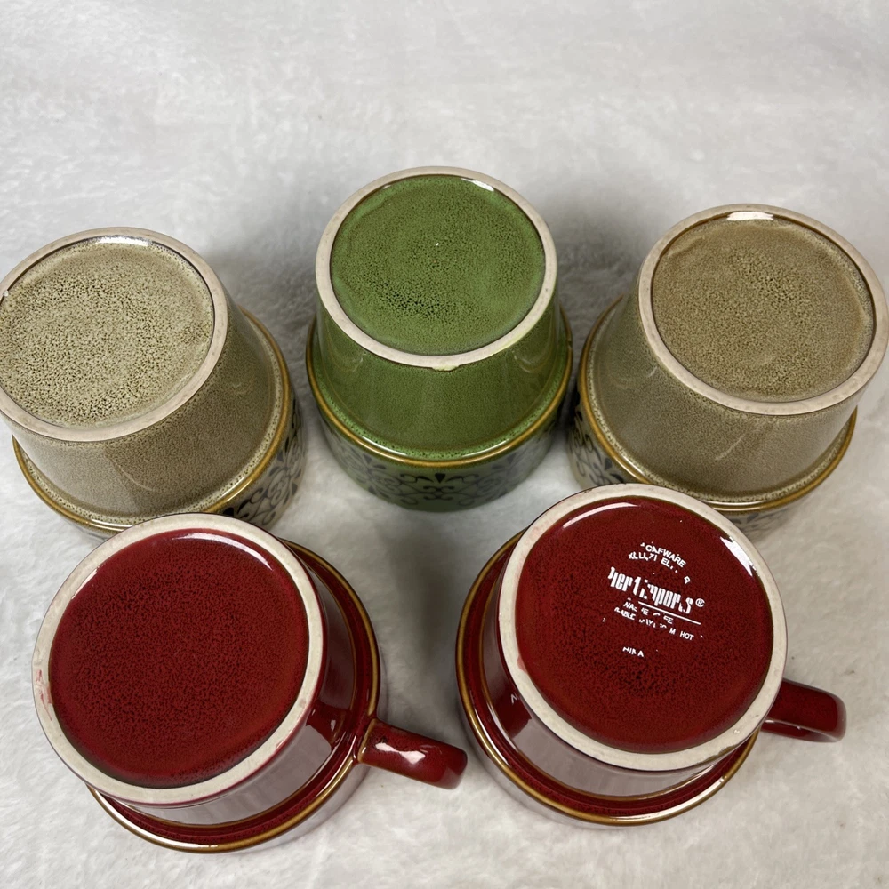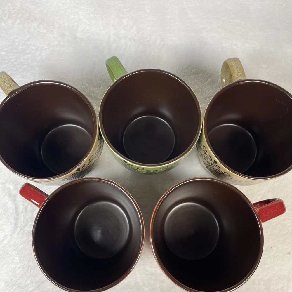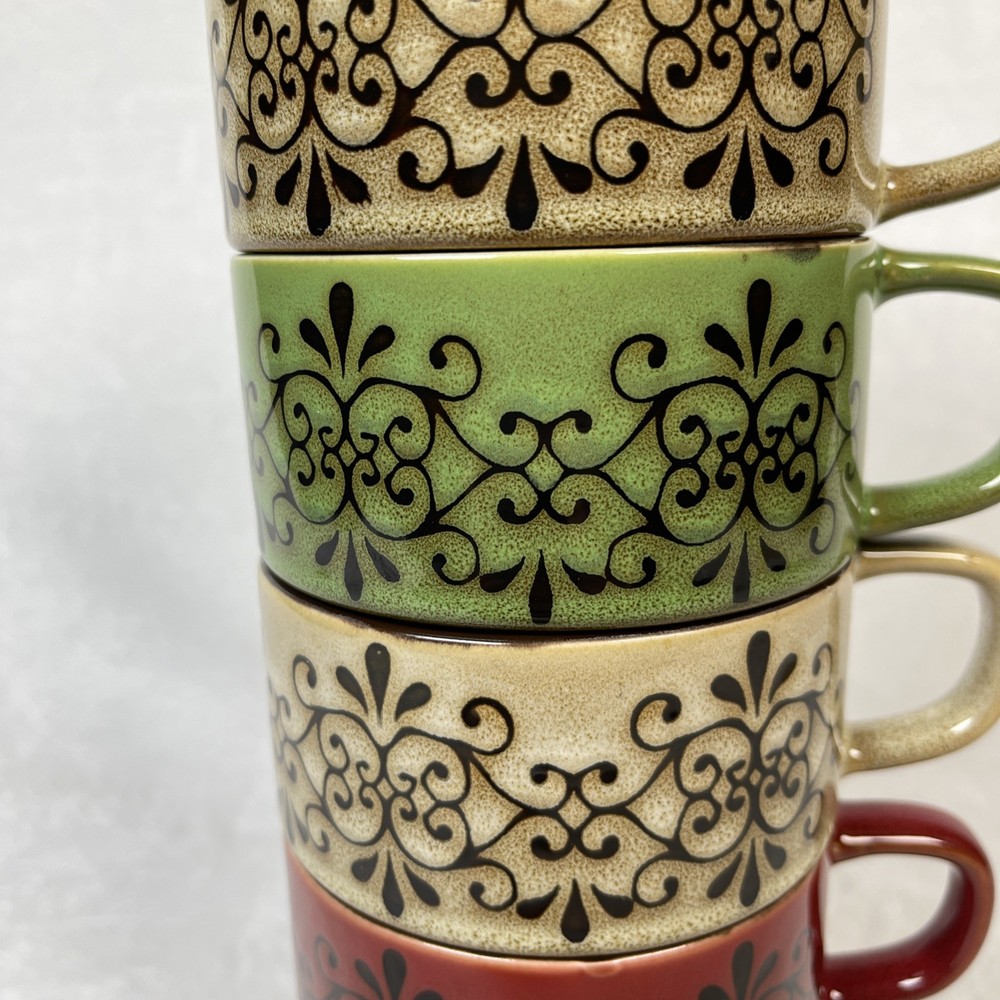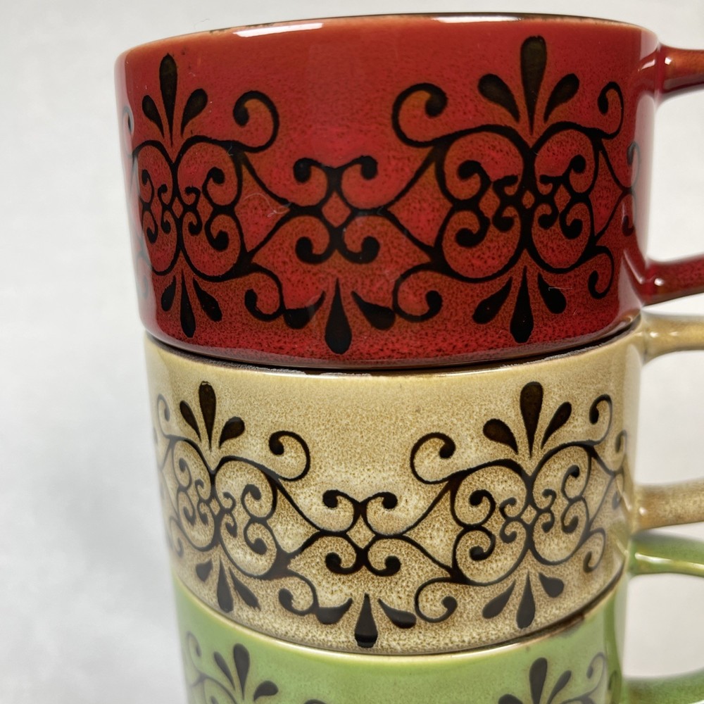Pier 1 Imports Set/ 5 Stacking Stoneware Coffee Mug Cups 2 Red 2 Tan 1 Green Excellent pre-owned condition. No defects noted. Back stamp is worn off on 4 out of 5 mugs. Thank you for your interest. This is a pre-loved item and sold as is . See photos for additi onal details as they are part of the description. Item is photographed and described to best of my ability and any omissions or errors are unintentional. If you are unsure, please contact me with questions or for additional photos before purchasing. Tape measure only for reference and is not included. Items will be securely packaged to assure you receive the item undamaged. If there is any damage during transmit, keep the packaging/packages, take photos and contact me and the carrier (USPS, UPS, etc ) immediately for assistance. All packages will be sent using eBay's shipping labels and tracking software. I am not an authorized dealer or distributor for the manufacturer and therefore do not offer any warranties, expressed or implied for any items sold. By purchasing this item, buyer agrees that seller is not responsible for any damages or injuries caused by the use, misuse or failure of the product. Buyer assumes all liability for use including any damage to personal property or injury to children and animals. RETURN POLICY: Returns are refunded at full selling price (not including additional shipping) once I receive the item back in its original condition. Buyer pays return shipping. Returns must be done through eBay and adhere to eBay policies . Please contact me with any concerns before initiating a return.
