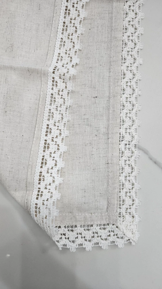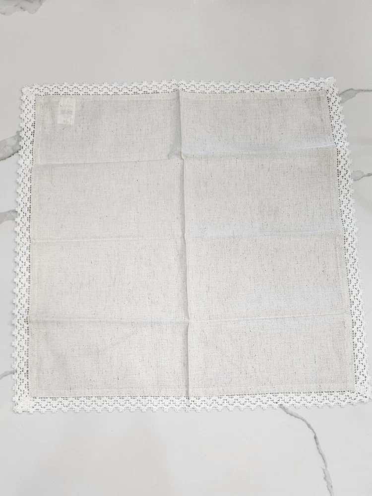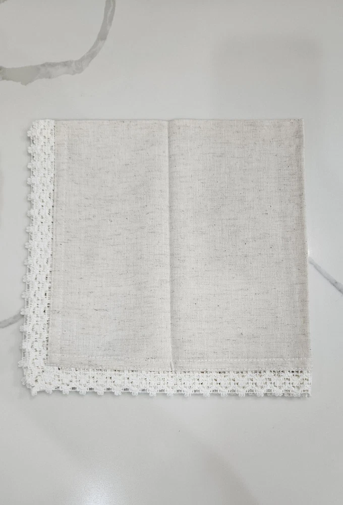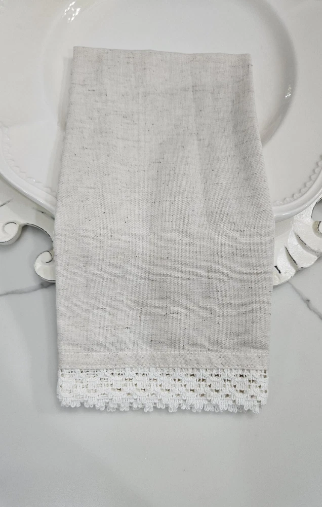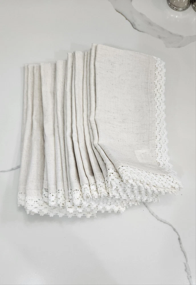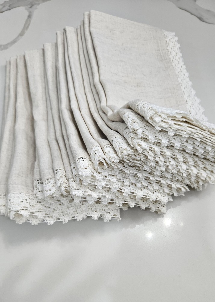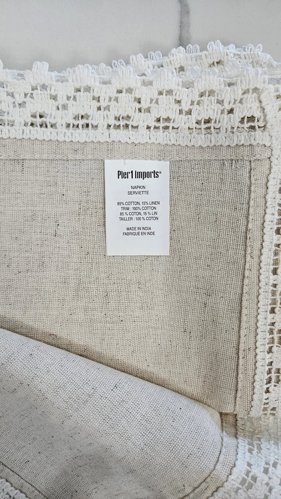 New, never used. Pier 1 Imports Cloth Napkins Set Of 11 Crochet Lace Trim Off White, Cream, Ivory, Beige 85% Cotton, 15% Linen Set Of 9 Silver Hammered Rings Discontinued Perfect for Easter Dinner plates and charger plates are not included.