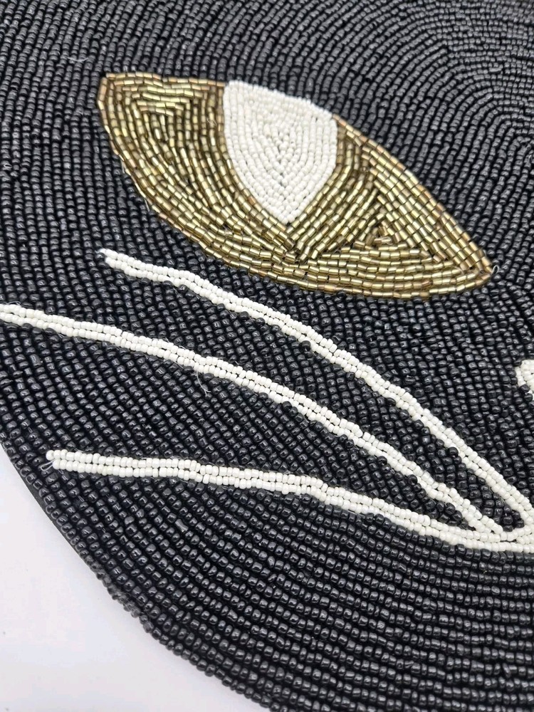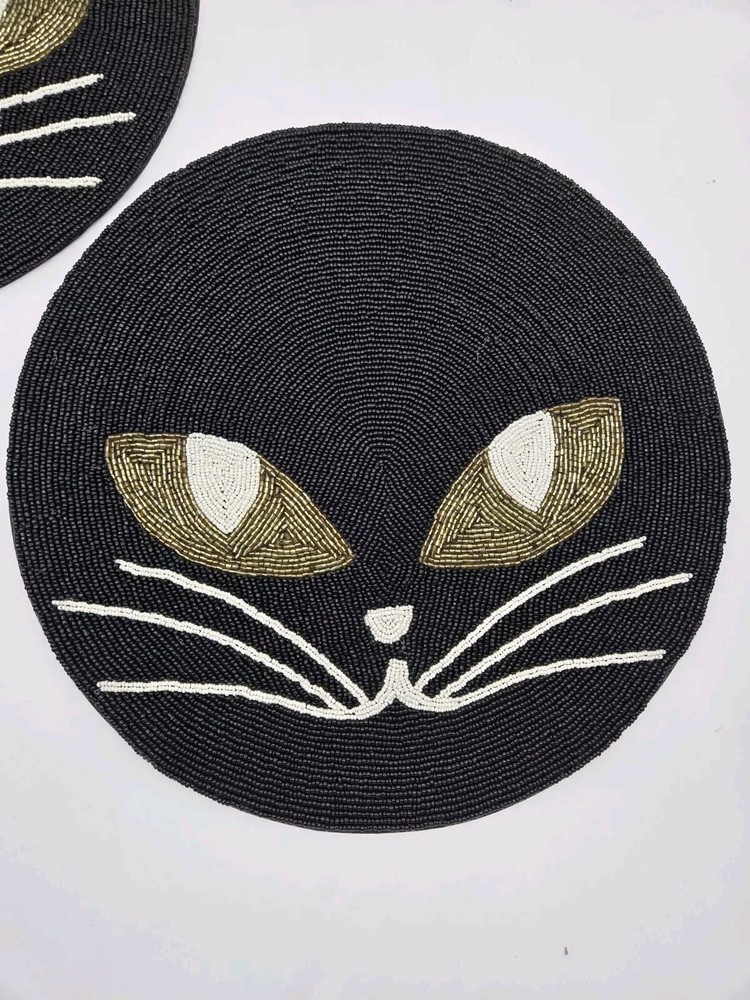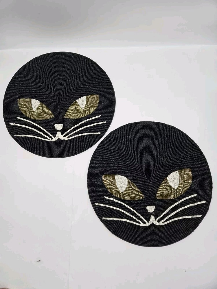 Pier 1 Imports Set Of 2 Beaded Halloween Black Cat Placemats . Condition is Pre-owned. Shipped with USPS Ground Advantage.