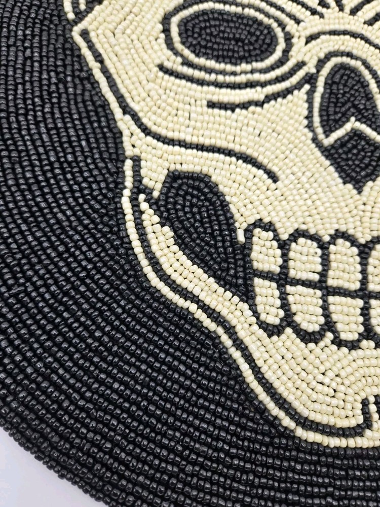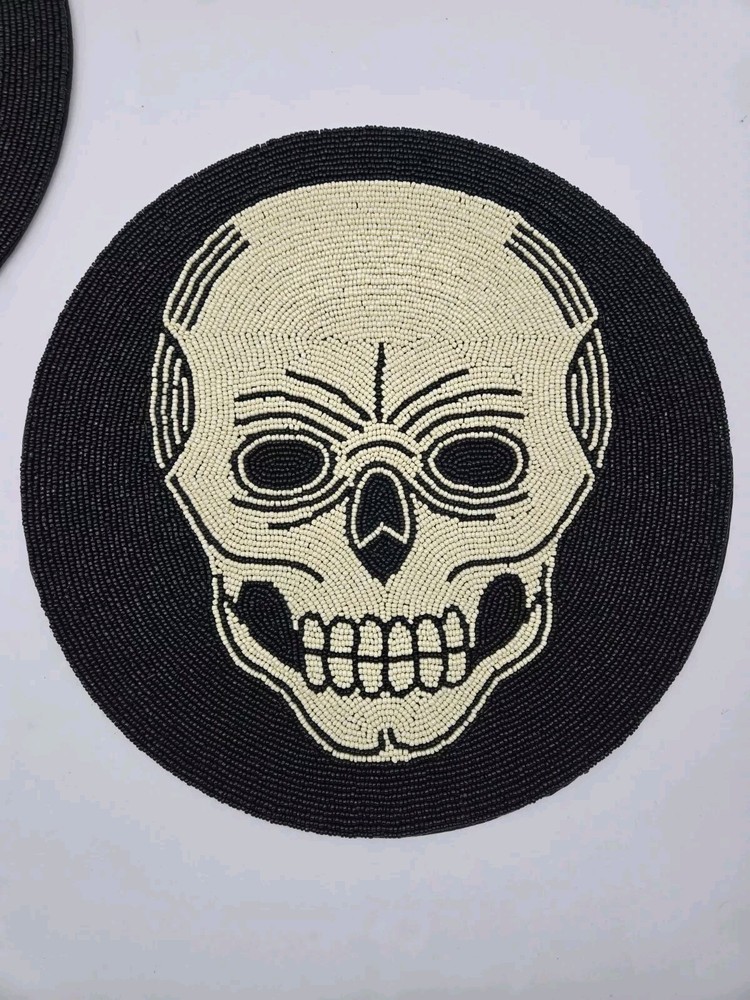 Pier 1 Imports Set Of 2 Halloween Beaded Skull Skeleton Placemats 15". Condition is Pre-owned. Shipped with USPS Ground Advantage....