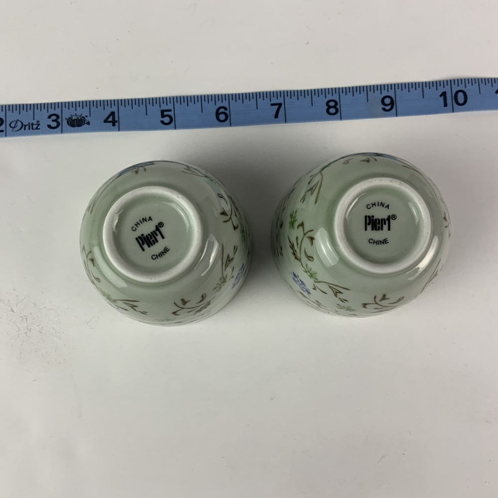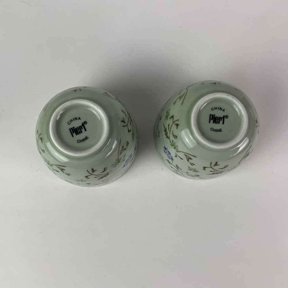 Pier 1 Import - Set Of 2 Small Handless Tea Cups - Floral Design - China. Great condition! Please see photos for condition and size. No chips or cracks. Condition is "Used". Shipped with USPS Priority Mail.