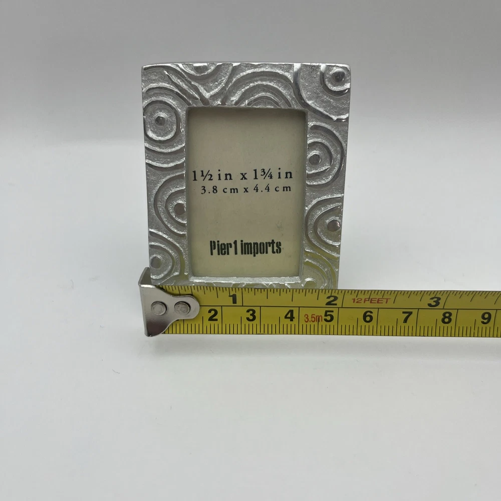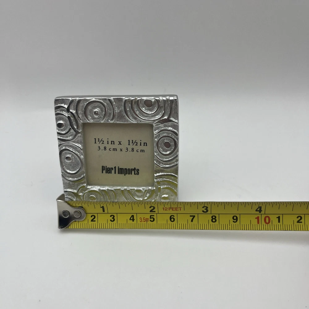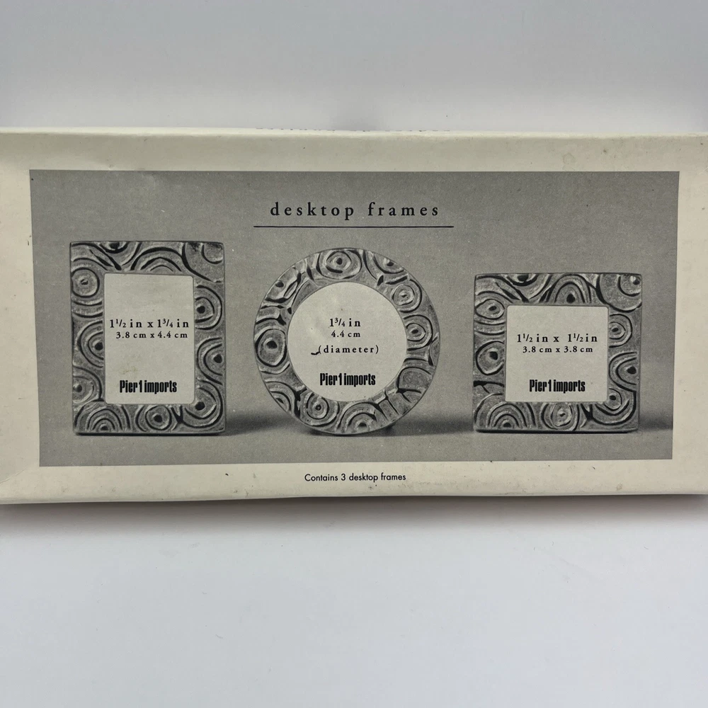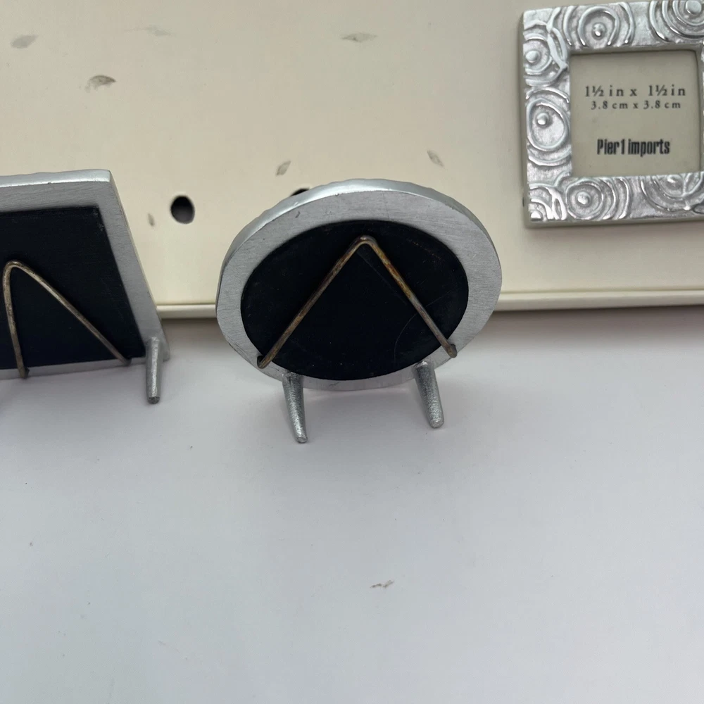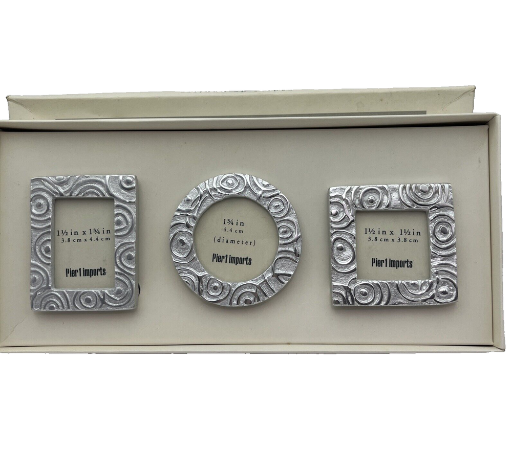 Pretty set of 3 small, silver desktop frames. Swirl design and lightweight. Perfect accent for your desk or would look cute in a window sill or nightstand. Holds small 1 1/2-1 3/4 photos. They are preloved but are in perfect condition. Ship to you from a smoke free home.