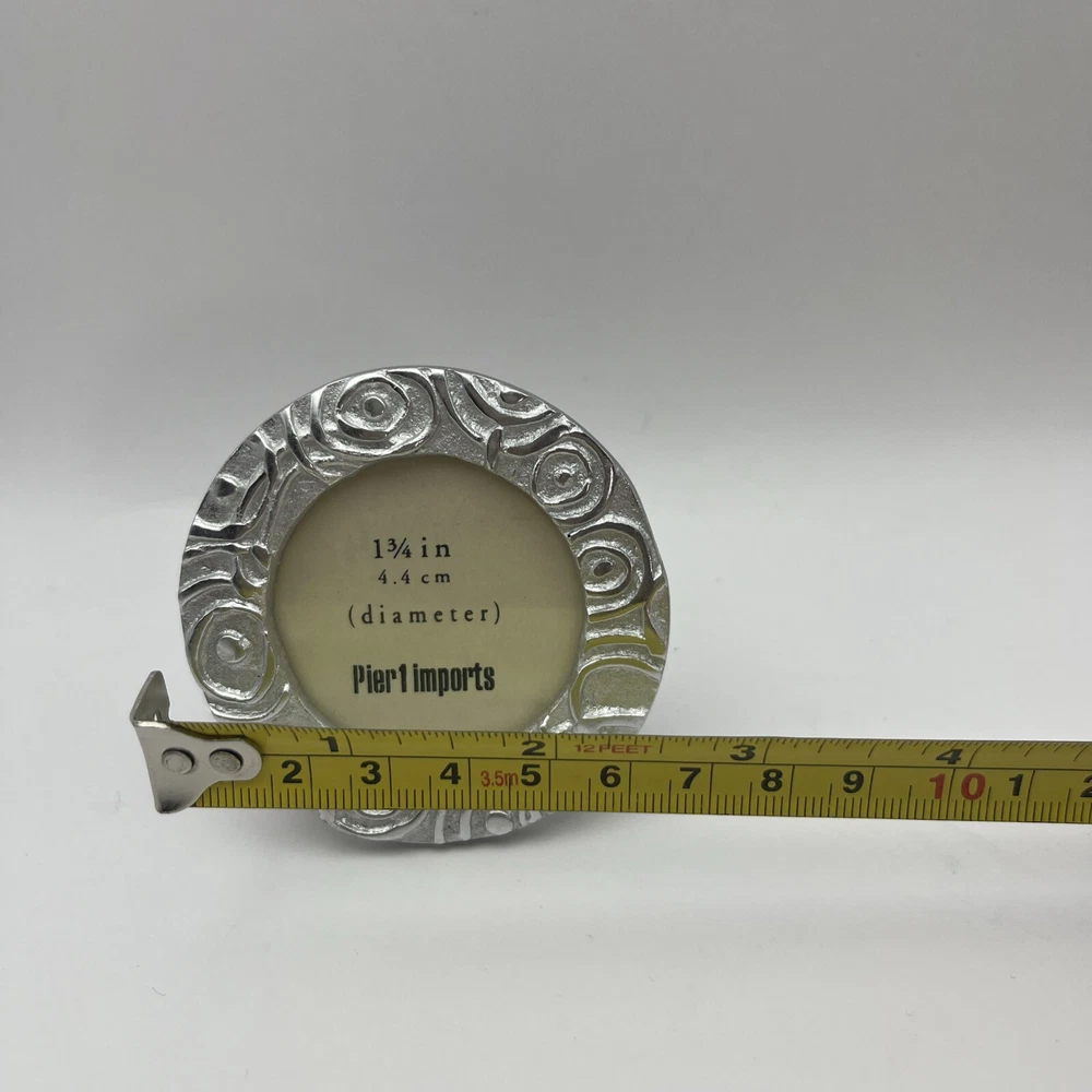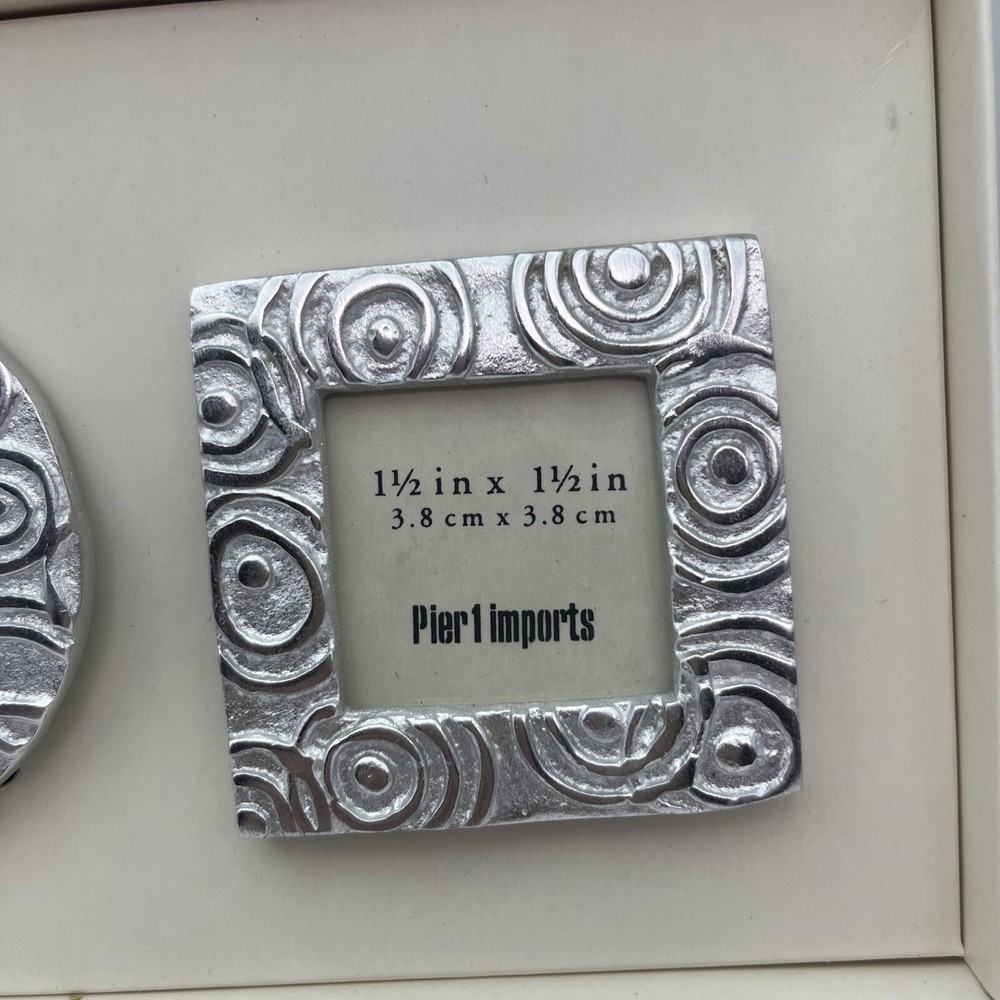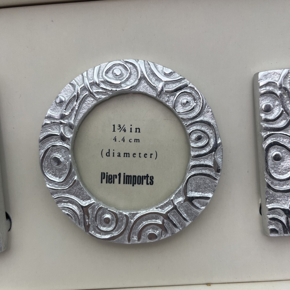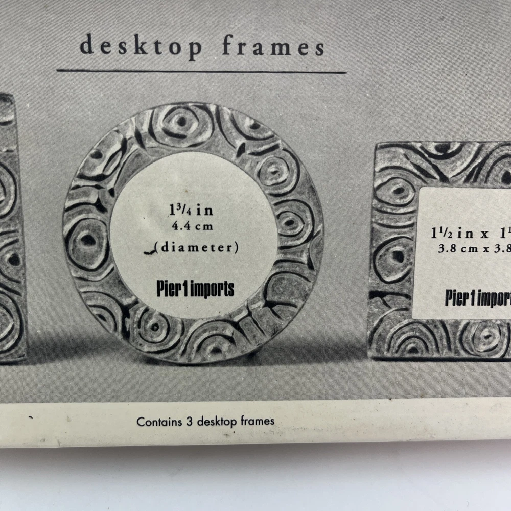 Pretty set of 3 small, silver desktop frames. Swirl design and lightweight. Perfect accent for your desk or would look cute in a window sill or nightstand. Holds small 1 1/2-1 3/4 photos. They are preloved but are in perfect condition. Ship to you from a smoke free home.