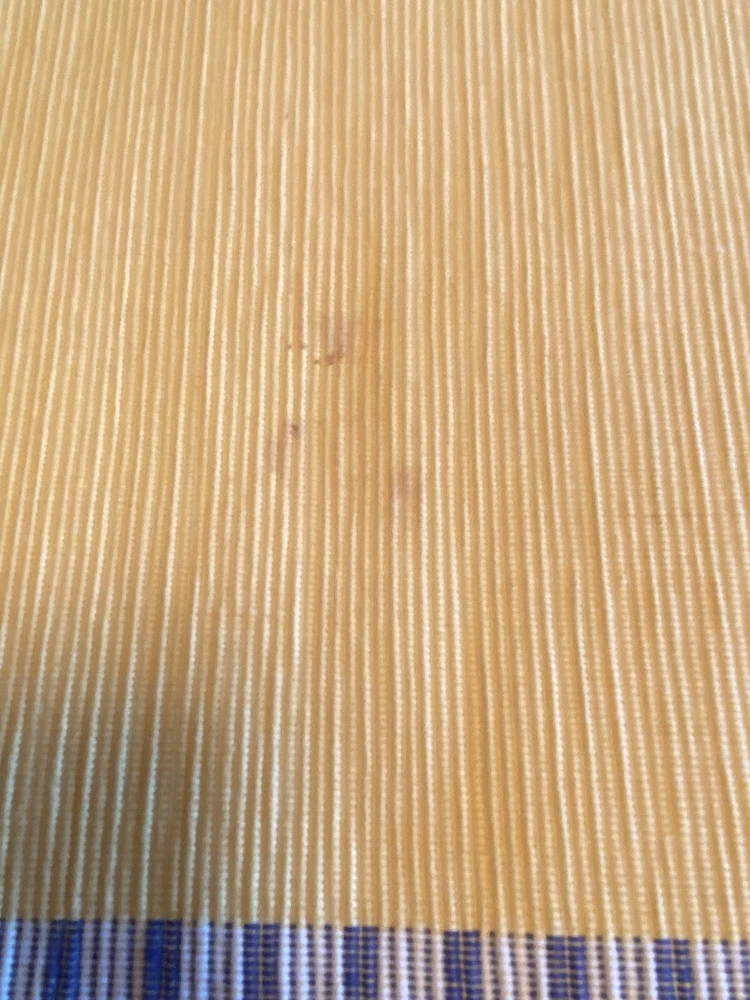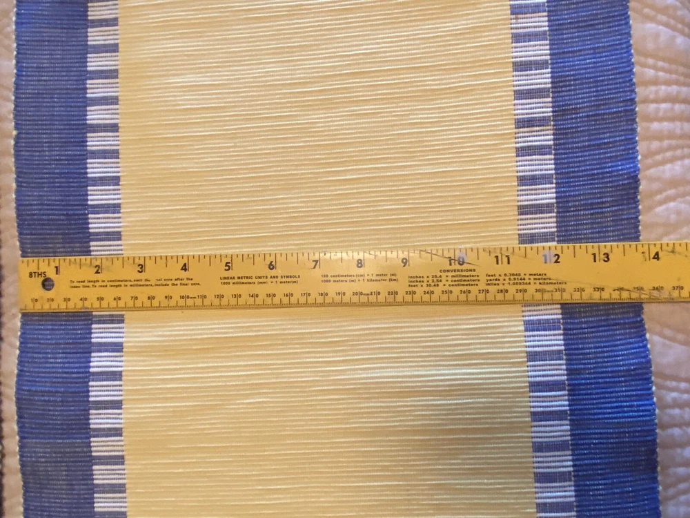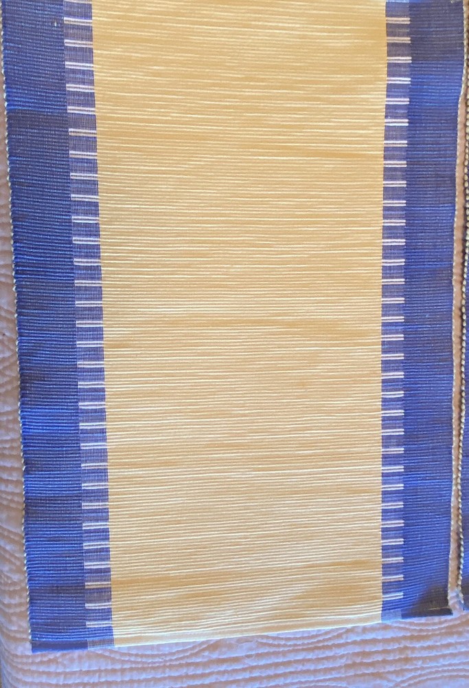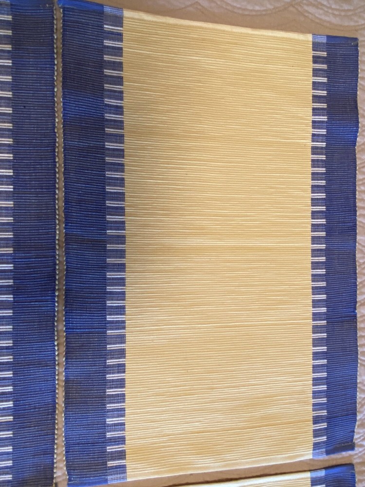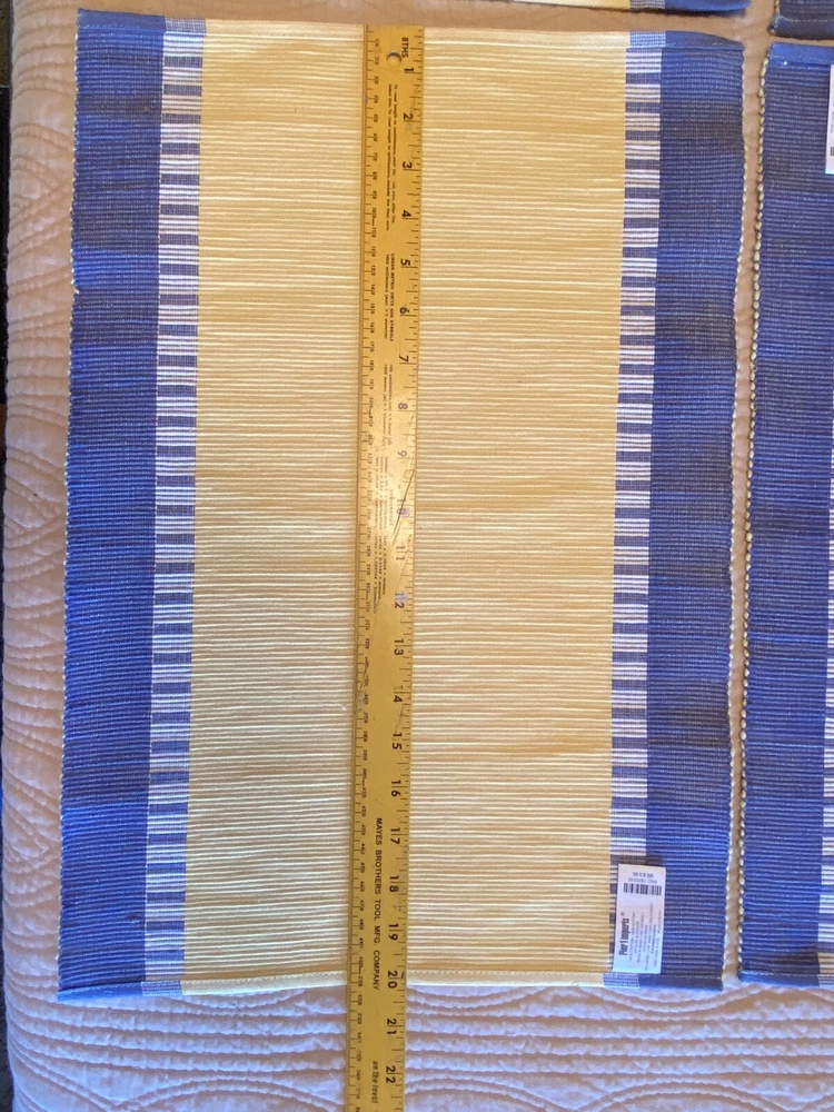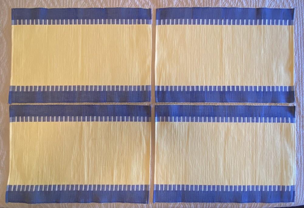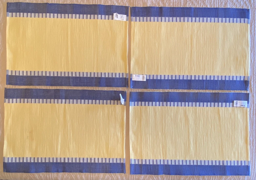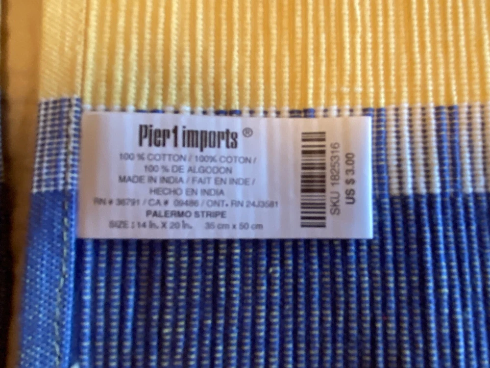 Pier 1 Imports Set Of 4 Palermo Stripe Placemats 100% Cotton Blue Yellow Small mark on the back of one placemat (see photo), otherwise in Very good used condition