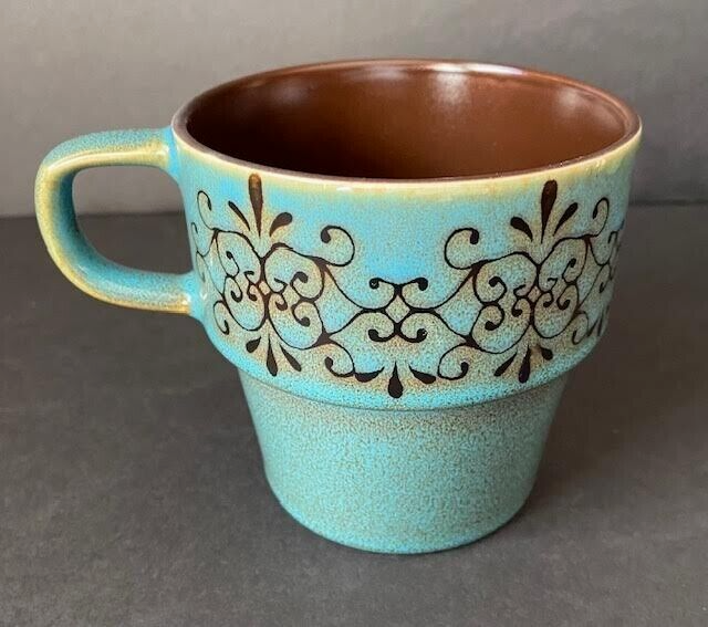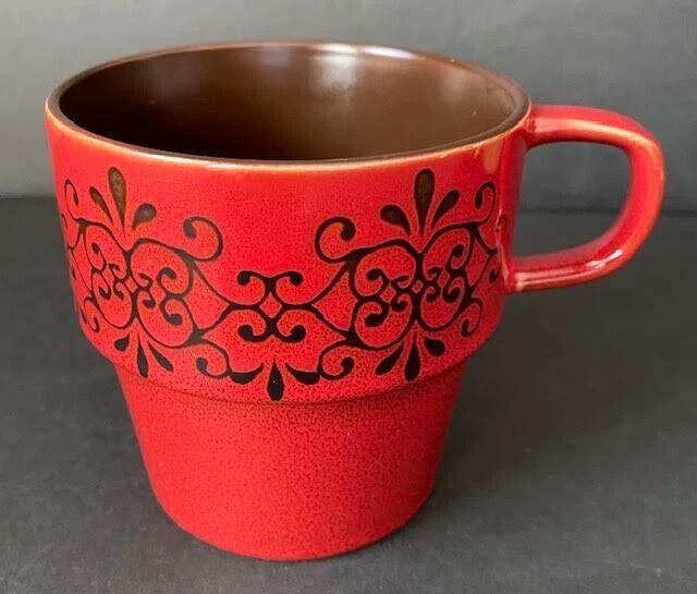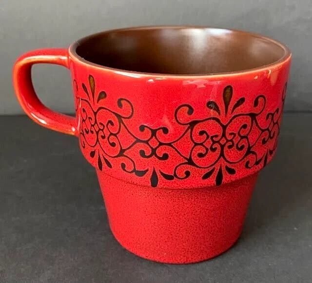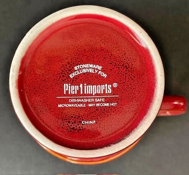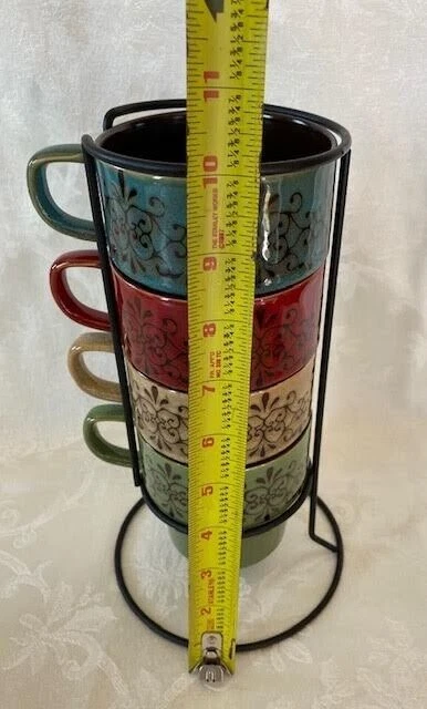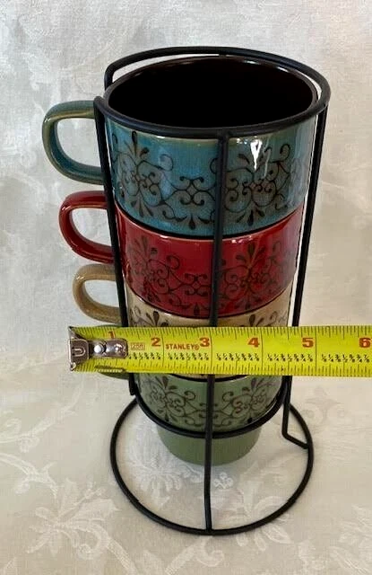 Pier 1 Imports Set of 4 Stacking Stoneware Coffee Mug Cups Red Yellow Blue Green See Photos For Dimensions No Chips Cracks Or Crazing Shipped USPS Priority Mail...