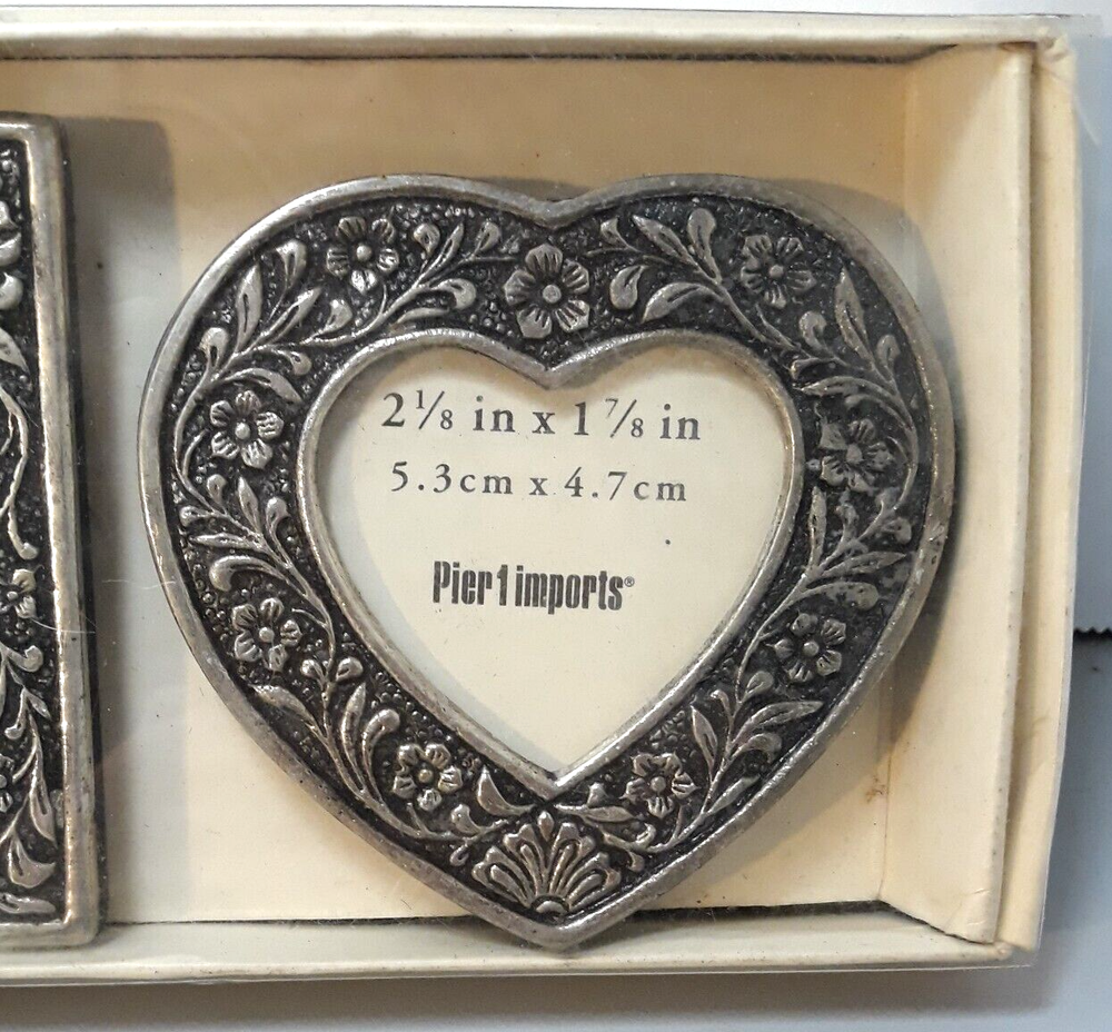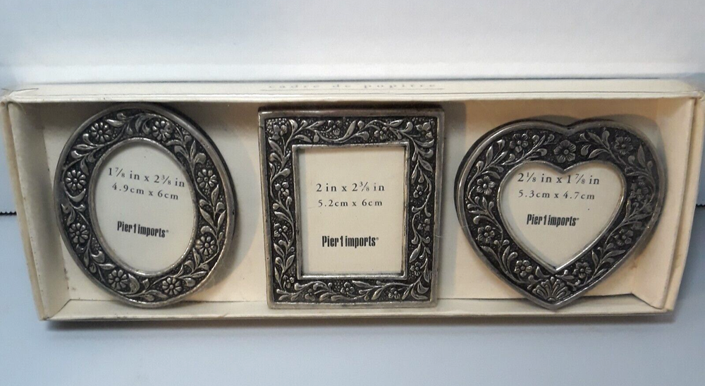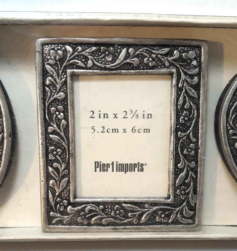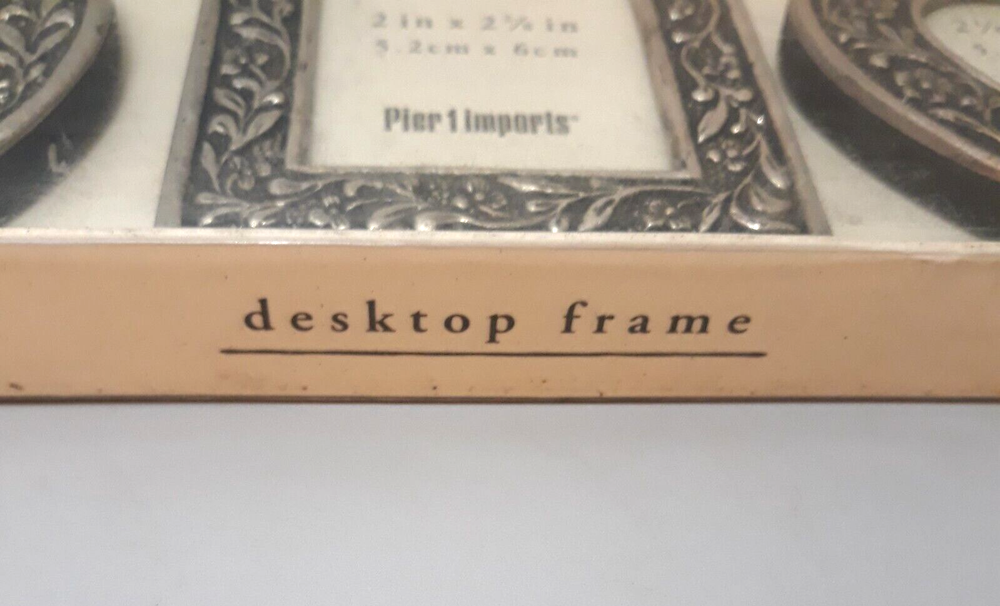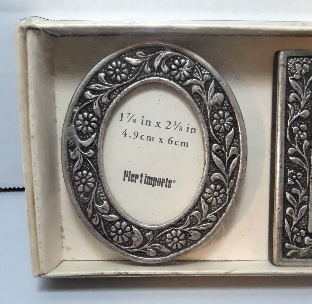 Pier 1 Imports Small Desktop Frames Silver Flowers Design with Box Set of 3 Never used. The pictures are part of the description. Please enlarge and carefully review all the photos so you can decide if the condition is acceptable to you. Any questions, please ask! Thanks for looking!
