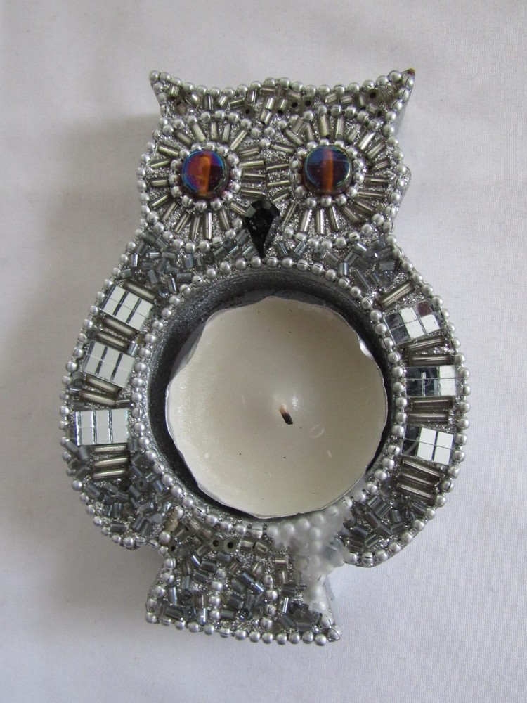 Pier 1 Imports Small Silver Mirrored & Beaded Owl Tea Light Candle Holder 4-inches tall Check our other listings for more great items. We will gladly combine shipping