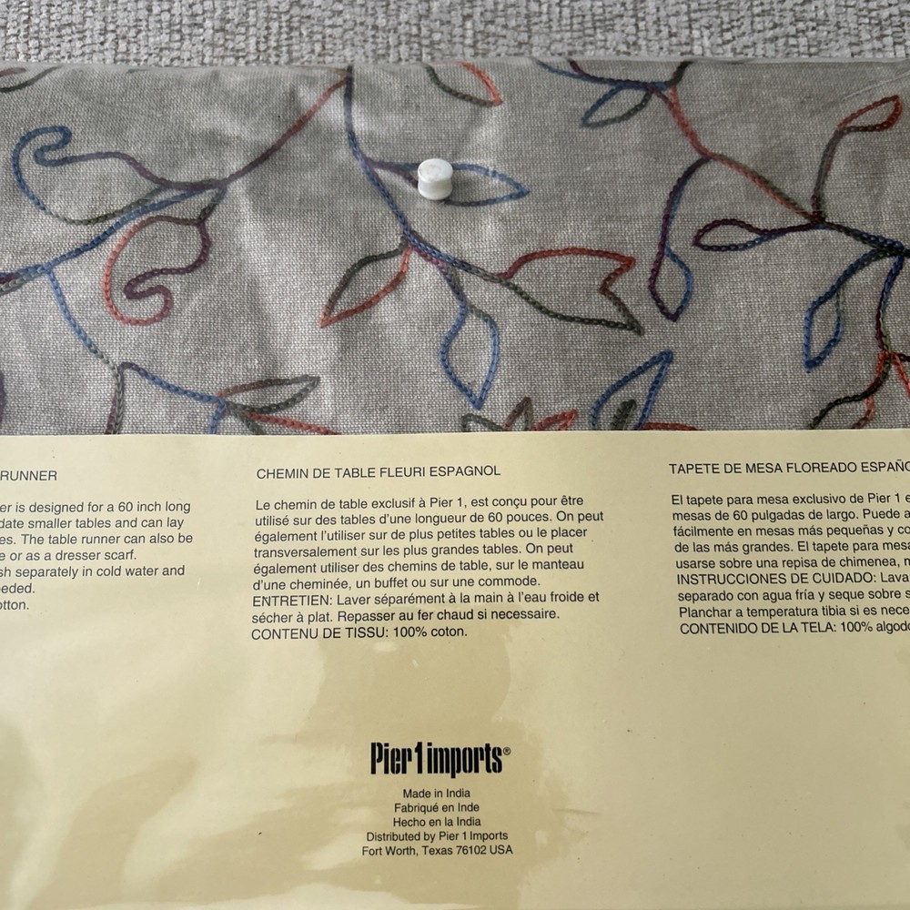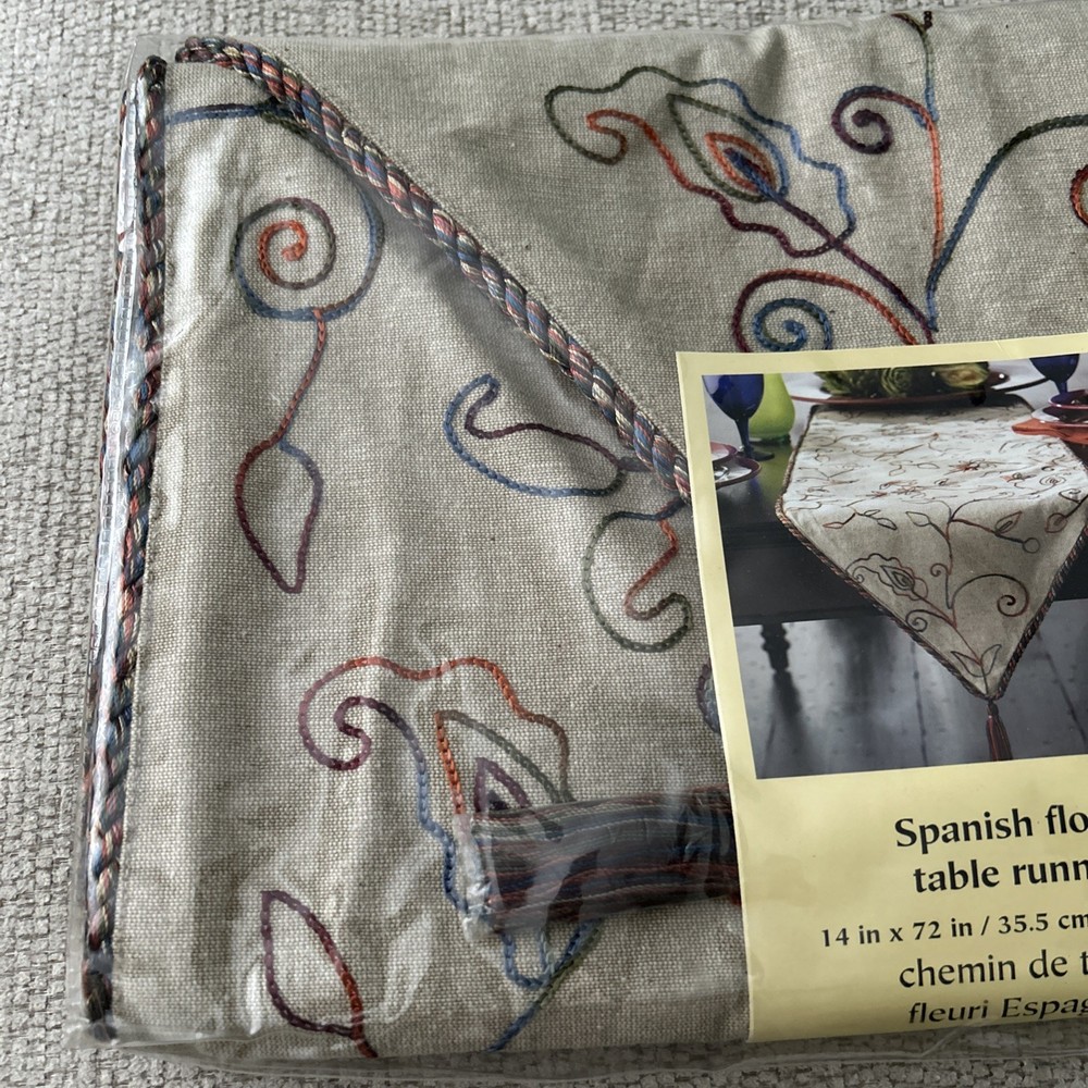Add a touch of Spanish style to your table with this beautiful table runner from Pier 1 Imports. Featuring a vibrant floral pattern, this 100% cotton table runner is perfect for any occasion, whether you're hosting a party or just using it for everyday dining. Measuring 14'' x 72'', it's designed for up to a 60” table