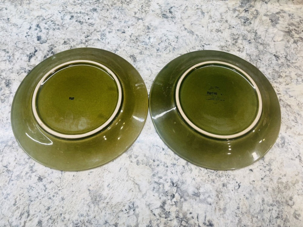 Add a touch of elegance to your dining experience with this set of two Pier 1 Imports Spice Route Clove Round 8.5 Inch Salad/Dessert Plates. These stoneware plates feature a beautiful Spice Route pattern and are perfect for any occasion. The plates are part of a two-piece set and have a round shape, beaded rim and a printed backstamp. Please see photos!!! Back stamp is off on one plate and mostly off on the second plate. Both plates have manufacture bubbles in the plate and there does seem to be some fading of both plates. One plate also has a manufacture fade of some sort in the kilts. See photos! These plates are not only stylish but also functional, making them a great addition to your kitchen. They are perfect for serving salads, desserts, or any other dish you desire. The plates are manufactured in China using a pottery production technique and are part of the Spice Route product line. Get your hands on these amazing plates today and give your dining experience a makeover!