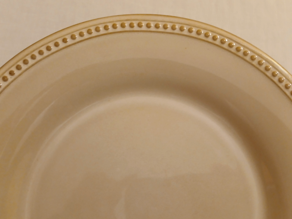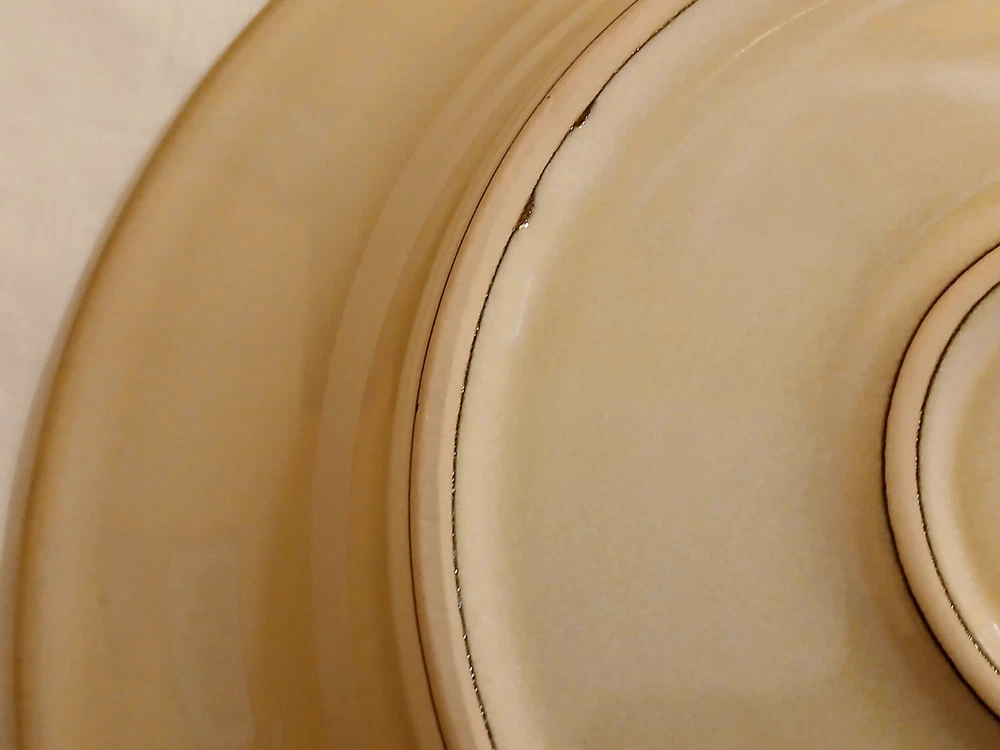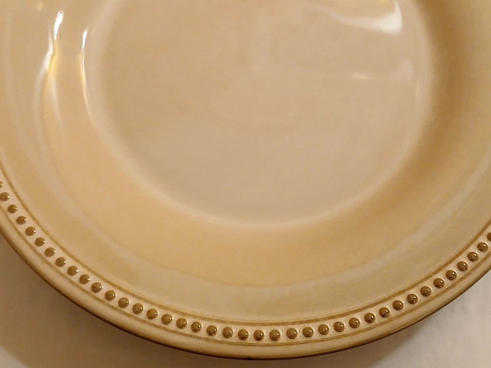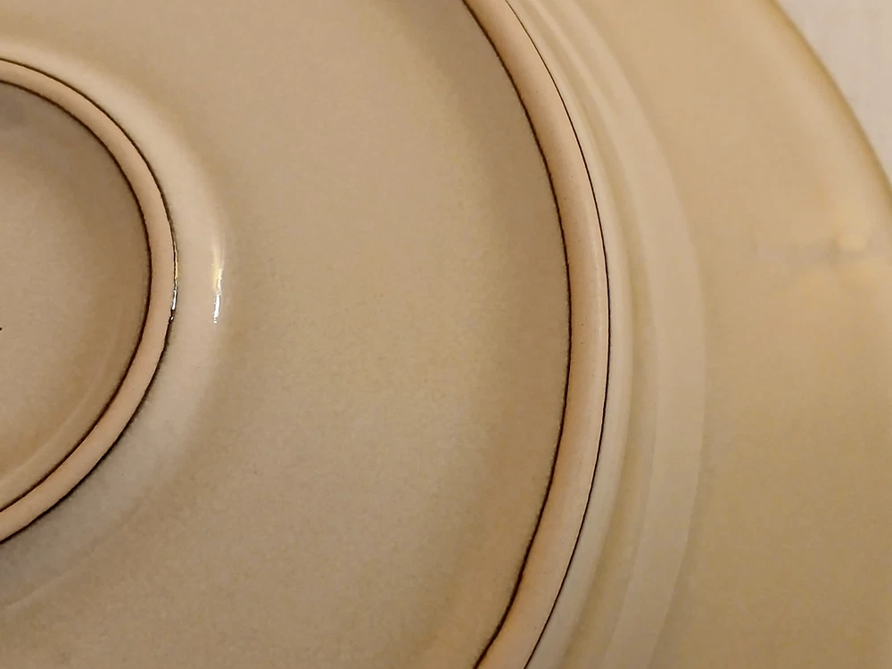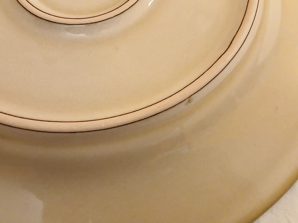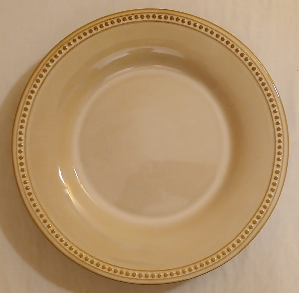Pier 1 Imports Spice Route Sesame dinner plate set of 2 10 1/2"diameter 1 1/4"tall. Utensil marks on inside and stains on outside. Refer to pictures for condition. Made in China. Will consider all offers. Combine Shipping - will automatically be adjusted when items are placed in shopping cart.