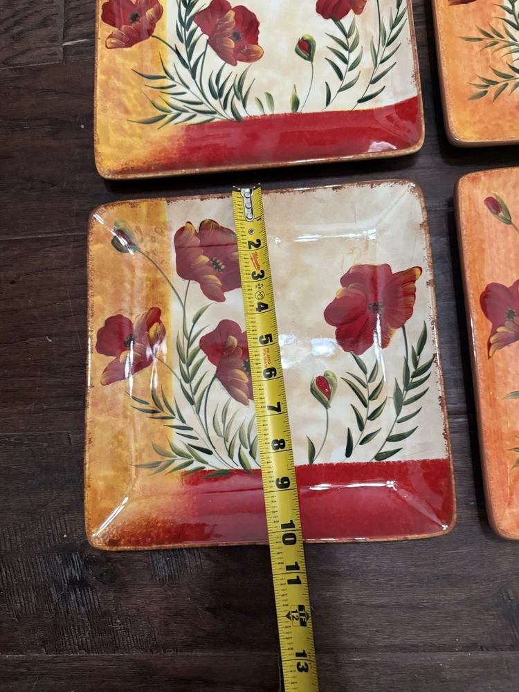 Absolutely love these vibrant Poppies plates! The bold design adds a pop of color to any table setting, and the square shape gives a modern twist. Perfect size for meals, sturdy quality, and the retired Pier 1 style makes them feel unique. A great find for any home!