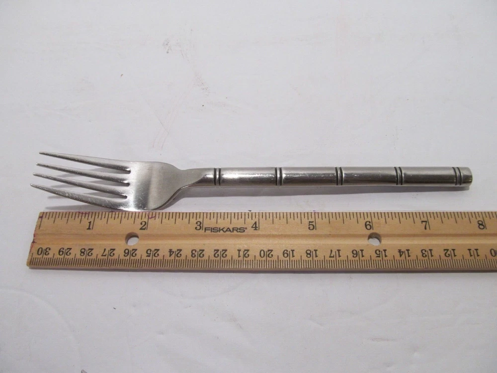 You are bidding on a Pier 1 Imports Stainless Steel 18/8 Bamboo Handle Design Dinner Fork. The 18/8 stainless steel dinner fork is in good condition. See pictures of the item you are bidding on Great addition for your collection! *** I DO NOT make changes to addresses. If you want something shipped to a different address change the address prior to purchasing an item. *** ~ ~ ~ COMBINED S/H OFFERED ON MULTIPLE PURCHASES - PLEASE INQUIRE ~ ~ ~ ~ DO NOT ACCEPT RETURNS FOR OPENED DVD's, CD's or Sealed/Packaged Printer Ink or Electronic Items ~ Please ask all questions before buying. Payment is expected by end of the 3rd day after successfully bidding on item(s). If payment is not made by the end of the 3rd day an unpaid case will be opened with EBay, unless the buyer has contacted me prior and arrangements have been made. This language has been added due to delayed and non-payment from prior buyers. The huge majority of buyers are great! Thank you for your business