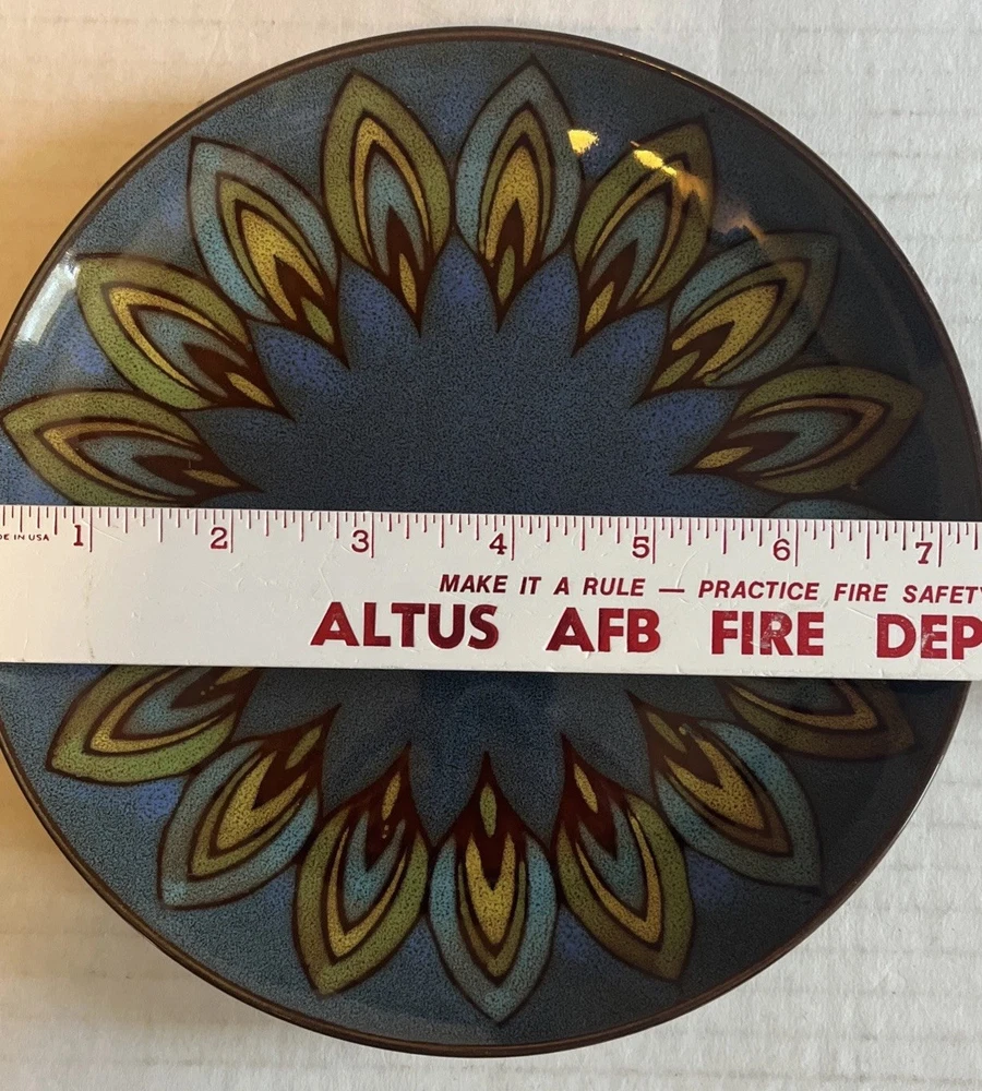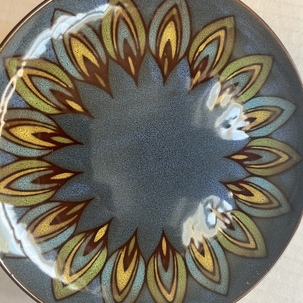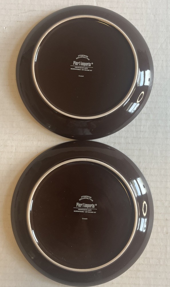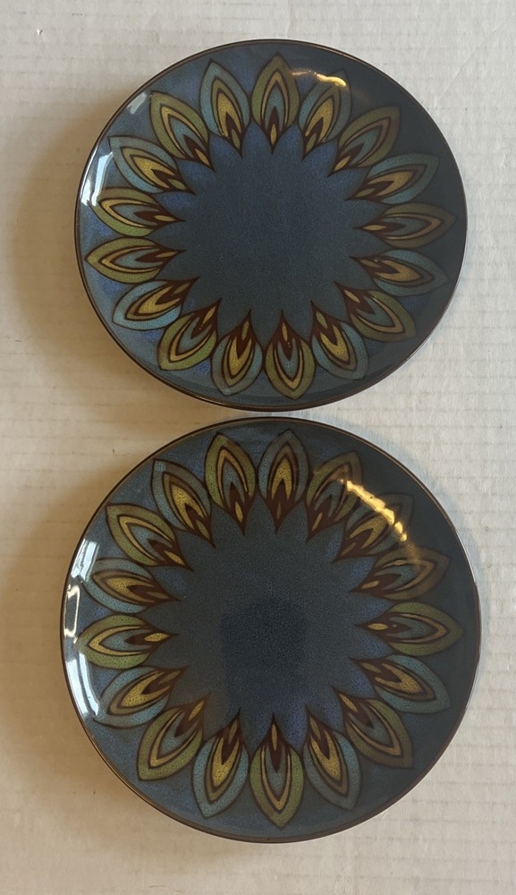 Set if 2 Pier 1 Imports Stoneware 7.5 Inch Blue Feather Design Replacement Salad Plates Excellent condition, no noted flaws.