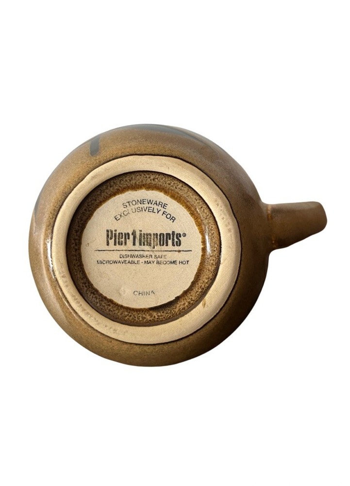 Sip your morning coffee in style with this Pier 1 Imports Stoneware Mug featuring a Leaf & Branch design. The brown stoneware material adds a rustic touch to your kitchen while the dishwasher safe feature makes cleaning a breeze. - Packaged With Care - Prompt Shipping - See Photos For All Details