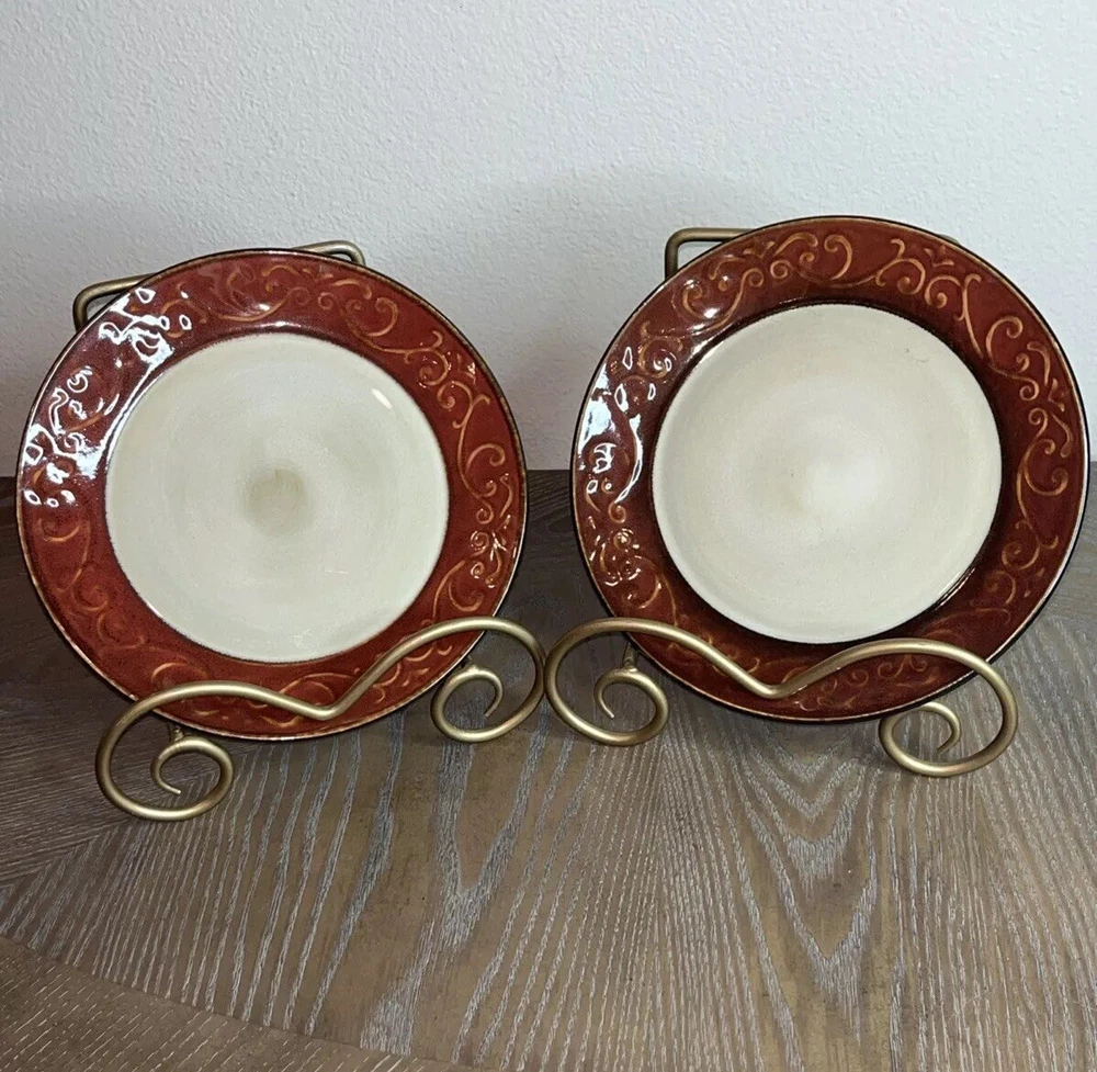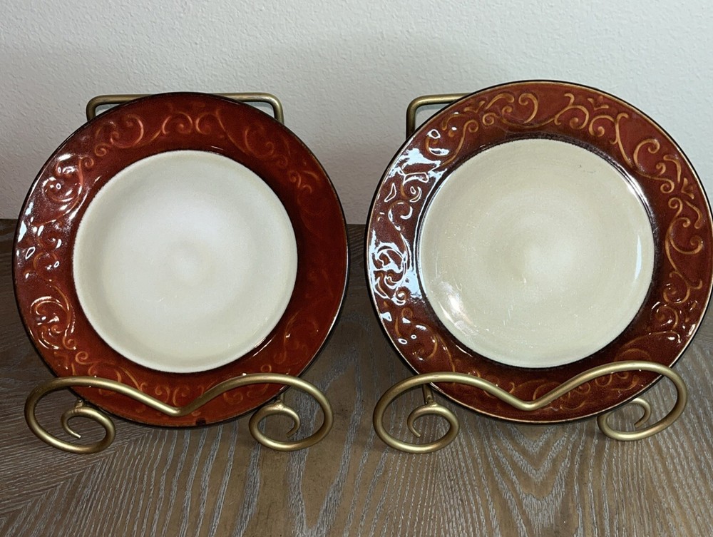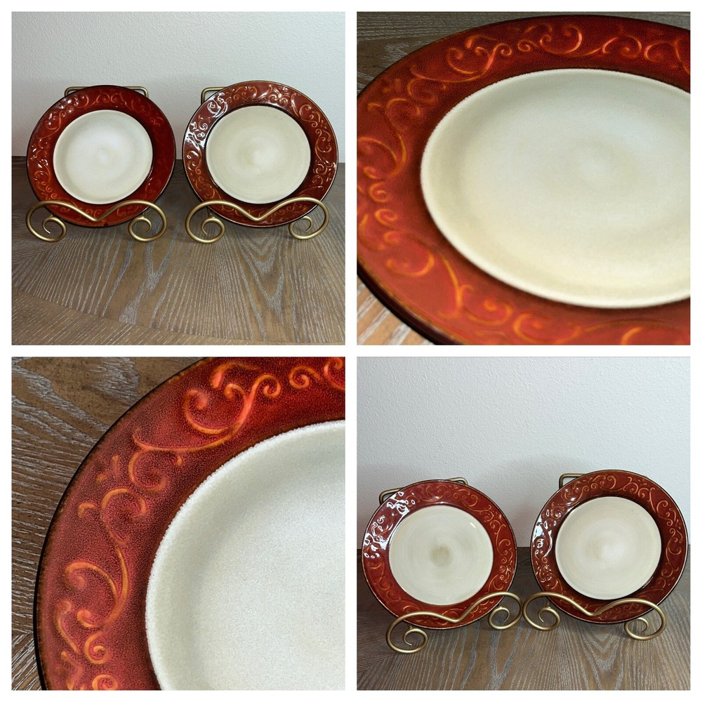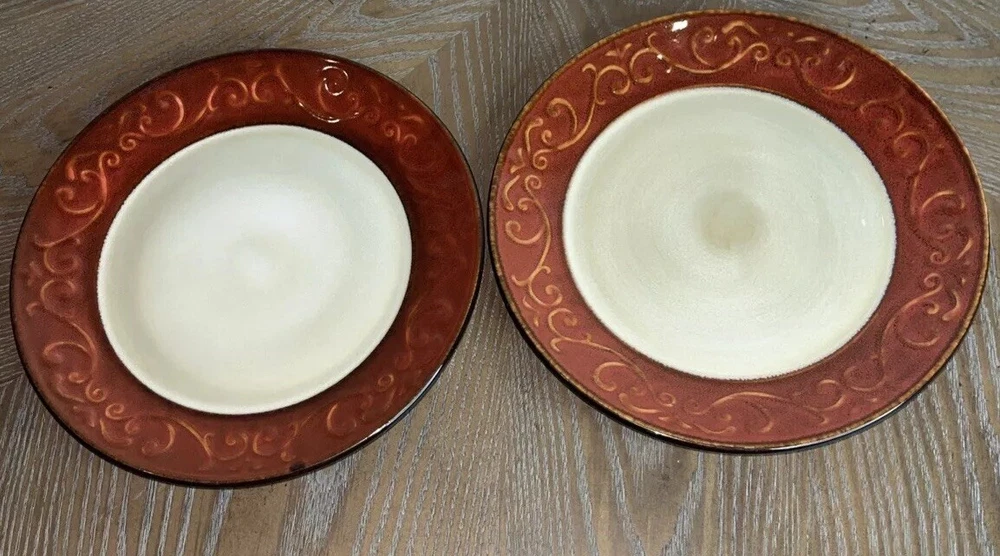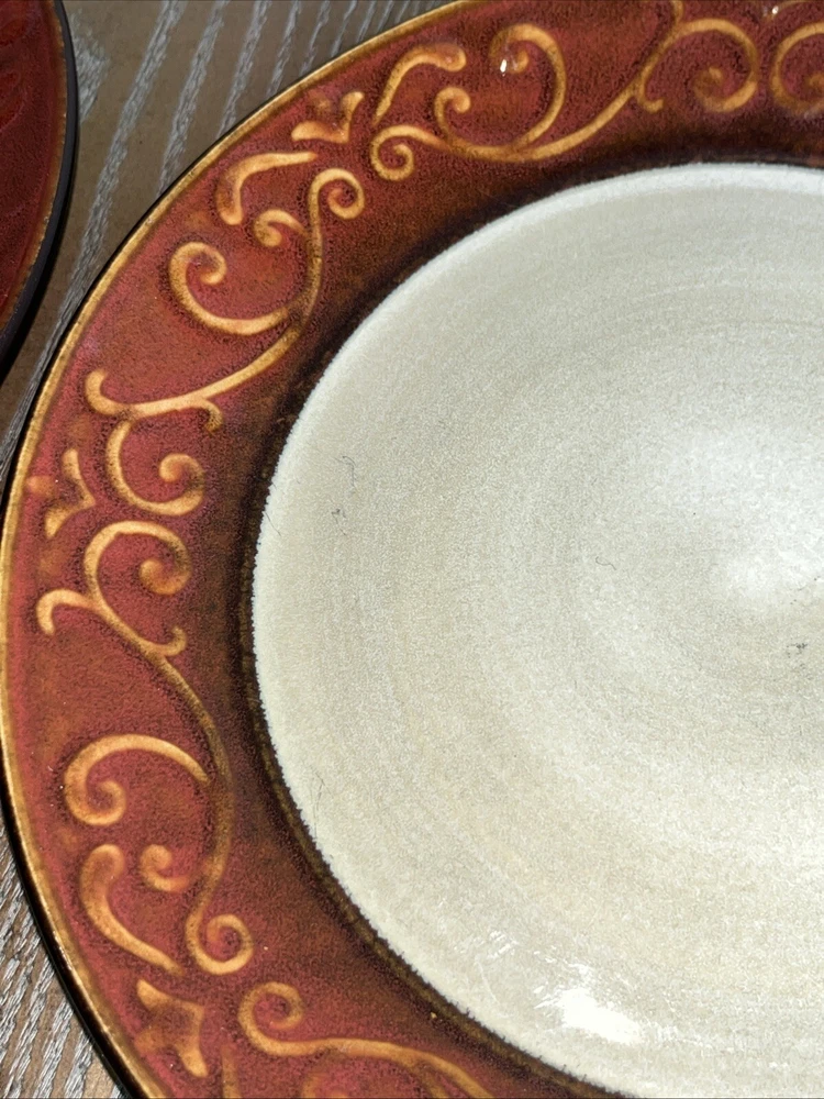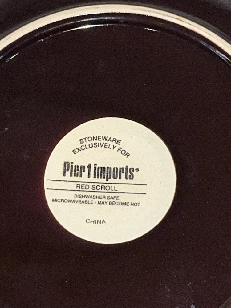 Pier 1 Imports Stoneware Red Scroll Salad Plates - Set of 2 Condition: Pre-Owned, Normal Wear Description: Add a touch of timeless elegance to your table with this set of two Pier 1 Imports Red Scroll Salad Plates. Featuring a beautiful red scrollwork border against a classic cream center, these plates are perfect for everyday use or special occasions. Key Features: • Brand: Pier 1 Imports • Pattern: Red Scroll • Set Includes: 2 Salad Plates • Material: Durable Stoneware • Care Instructions: Dishwasher & Microwave Safe • Condition: Pre-owned, normal wear consistent with use (see photos) I try to be absolutely truthful in my descriptions & disclose any flaws. Every effort is made to describe them accurately with photos provided as part of their description. Many of our items are vintage condition or pre-owned, reflecting their journey through time. If not, we try to sell new in the box. We do have a smoke-free home. Please see photos for all natural wear. If you have any questions, don’t hesitate to contact me. Please note that color may look slightly different on different monitors. All items are packaged & shipped with love & care within 1-3 days of your purchase. Please be aware that once shipped, it is out of our control on time delay. There will be a shipping discount for multiple orders. Thank you for stopping by my store & I hope you will make me a favorite. Happy shopping from the beautiful Emerald Coast, Coastal Haven Treasures