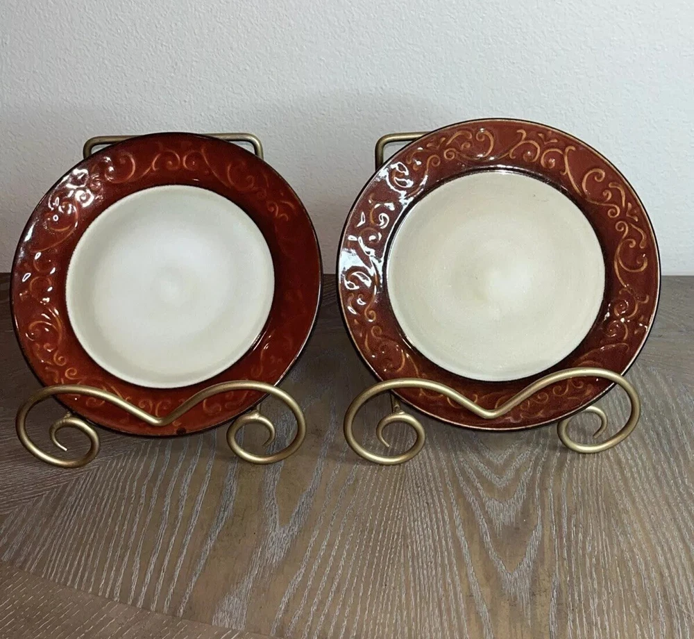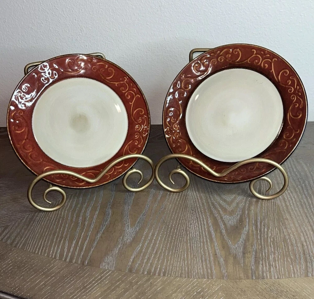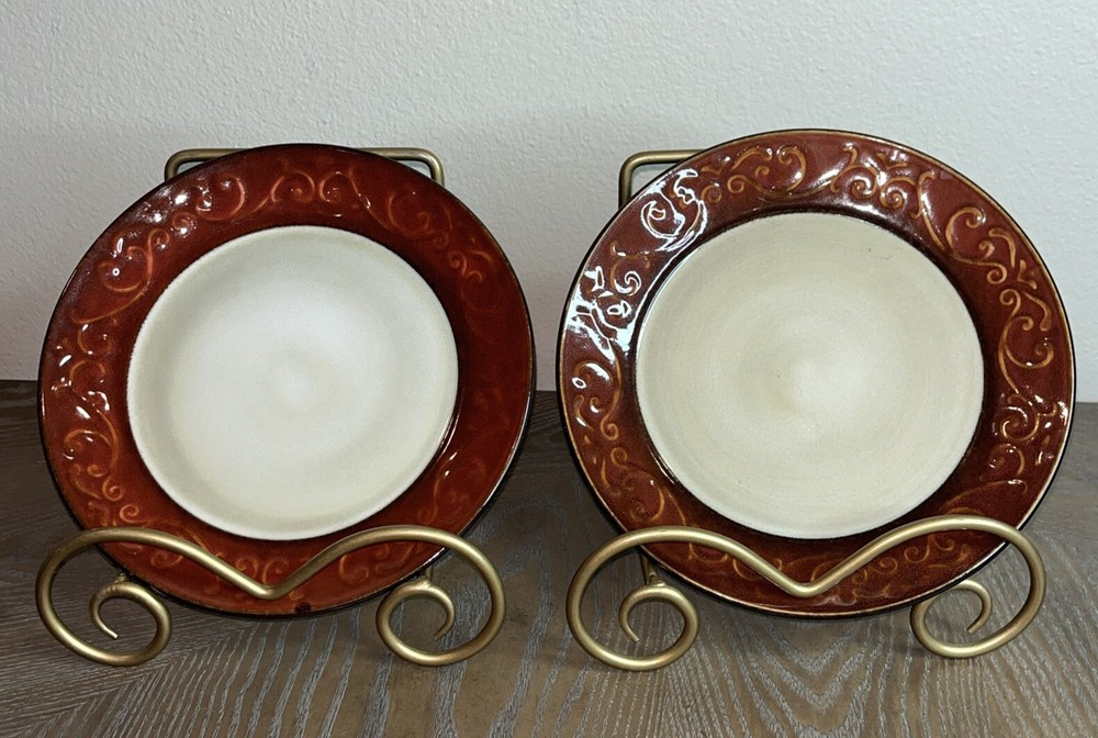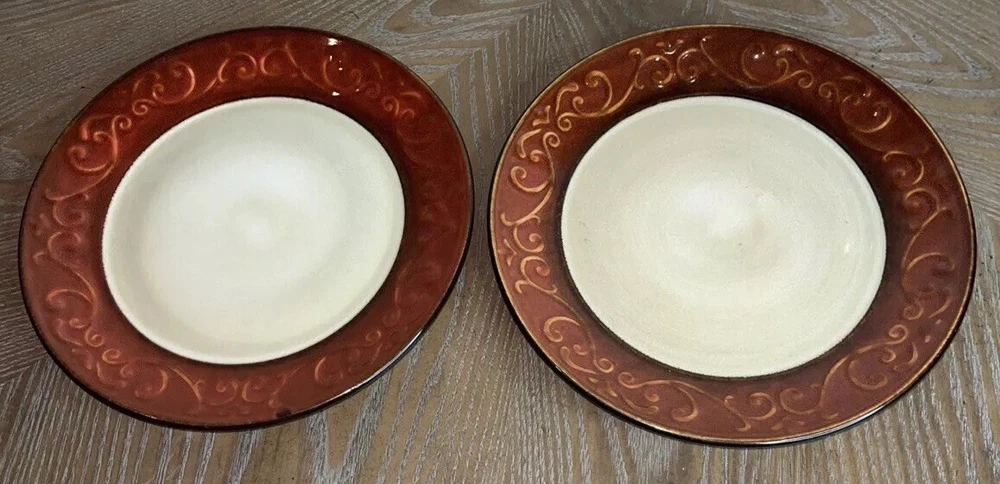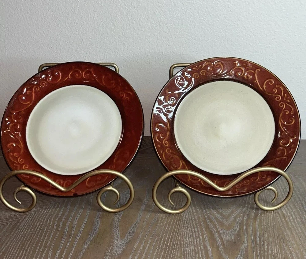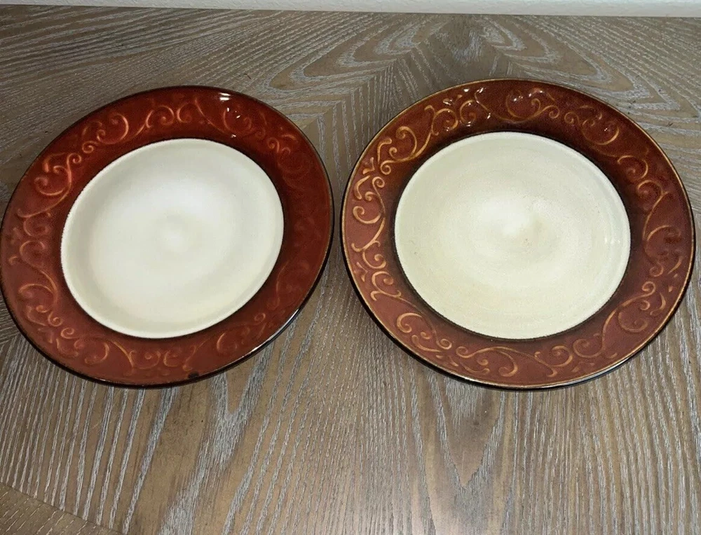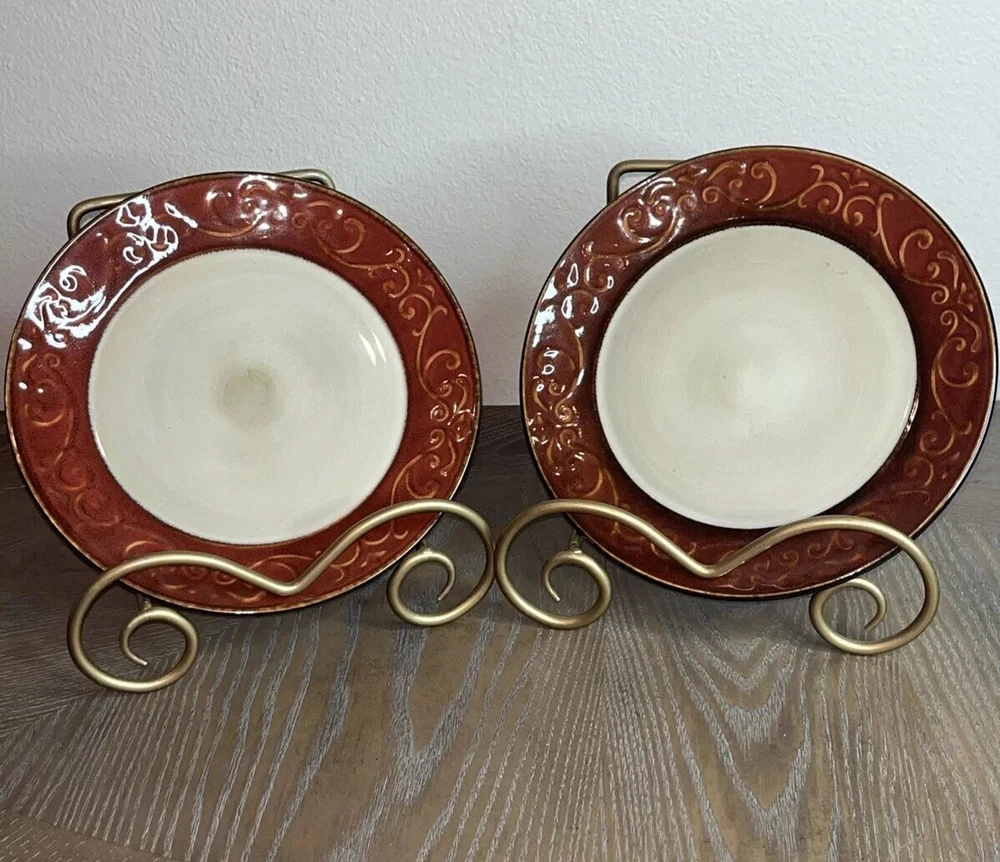 Pier 1 Imports Stoneware Red Scroll Salad Plates - Set of 2 Condition: Pre-Owned, Normal Wear Description: Add a touch of timeless elegance to your table with this set of two Pier 1 Imports Red Scroll Salad Plates. Featuring a beautiful red scrollwork border against a classic cream center, these plates are perfect for everyday use or special occasions. Key Features: • Brand: Pier 1 Imports • Pattern: Red Scroll • Set Includes: 2 Salad Plates • Material: Durable Stoneware • Care Instructions: Dishwasher & Microwave Safe • Condition: Pre-owned, normal wear consistent with use (see photos) I try to be absolutely truthful in my descriptions & disclose any flaws. Every effort is made to describe them accurately with photos provided as part of their description. Many of our items are vintage condition or pre-owned, reflecting their journey through time. If not, we try to sell new in the box. We do have a smoke-free home. Please see photos for all natural wear. If you have any questions, don’t hesitate to contact me. Please note that color may look slightly different on different monitors. All items are packaged & shipped with love & care within 1-3 days of your purchase. Please be aware that once shipped, it is out of our control on time delay. There will be a shipping discount for multiple orders. Thank you for stopping by my store & I hope you will make me a favorite. Happy shopping from the beautiful Emerald Coast, Coastal Haven Treasures